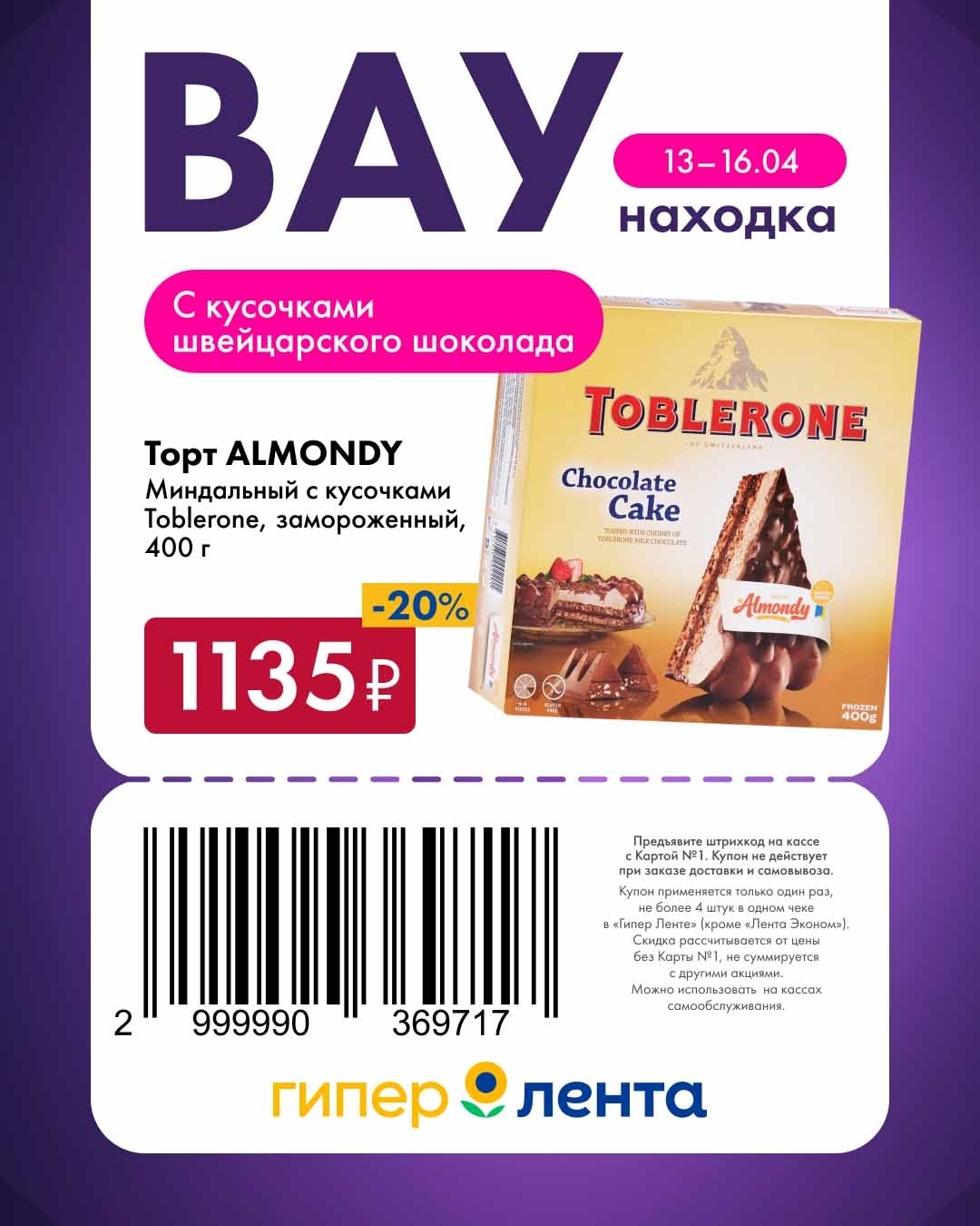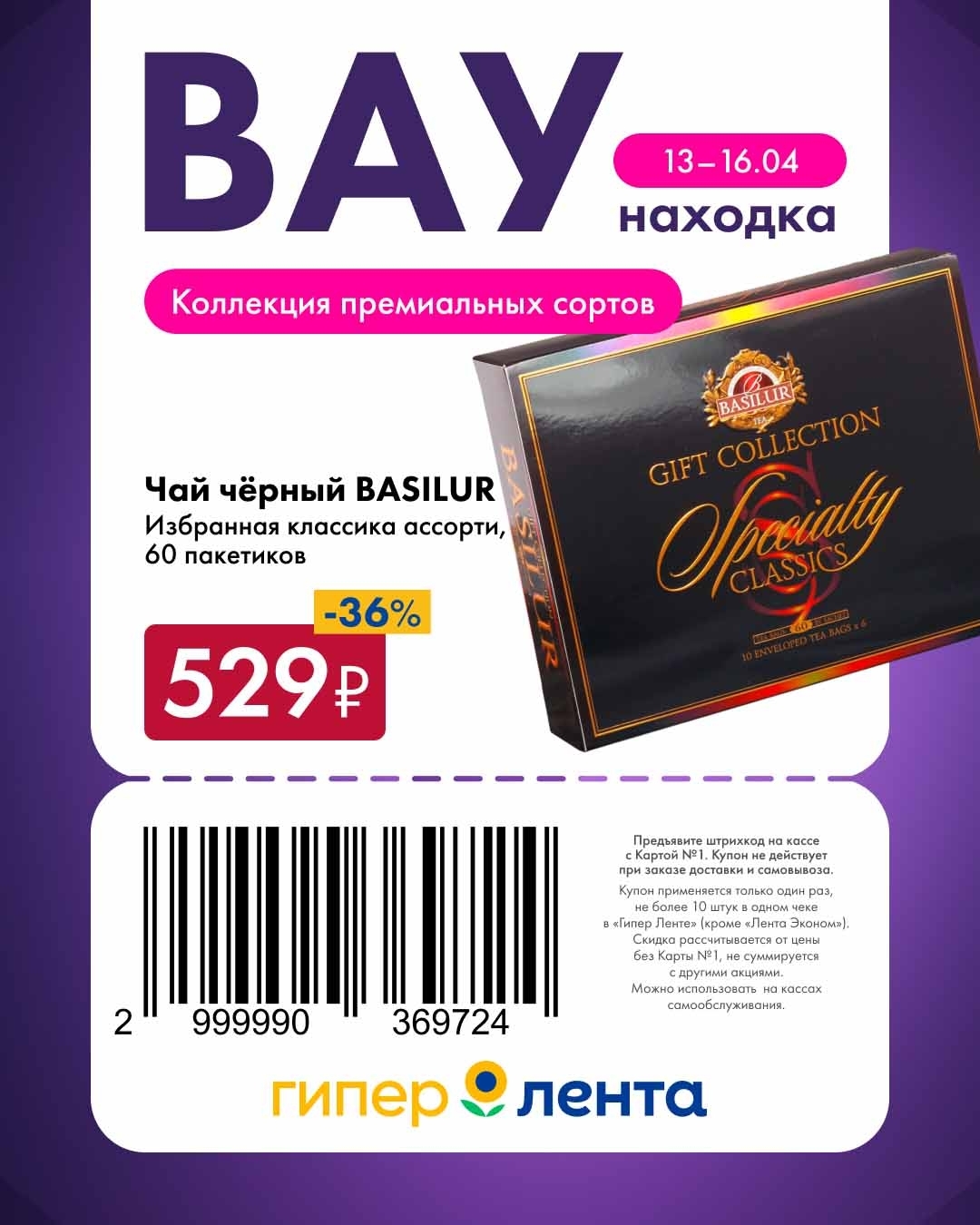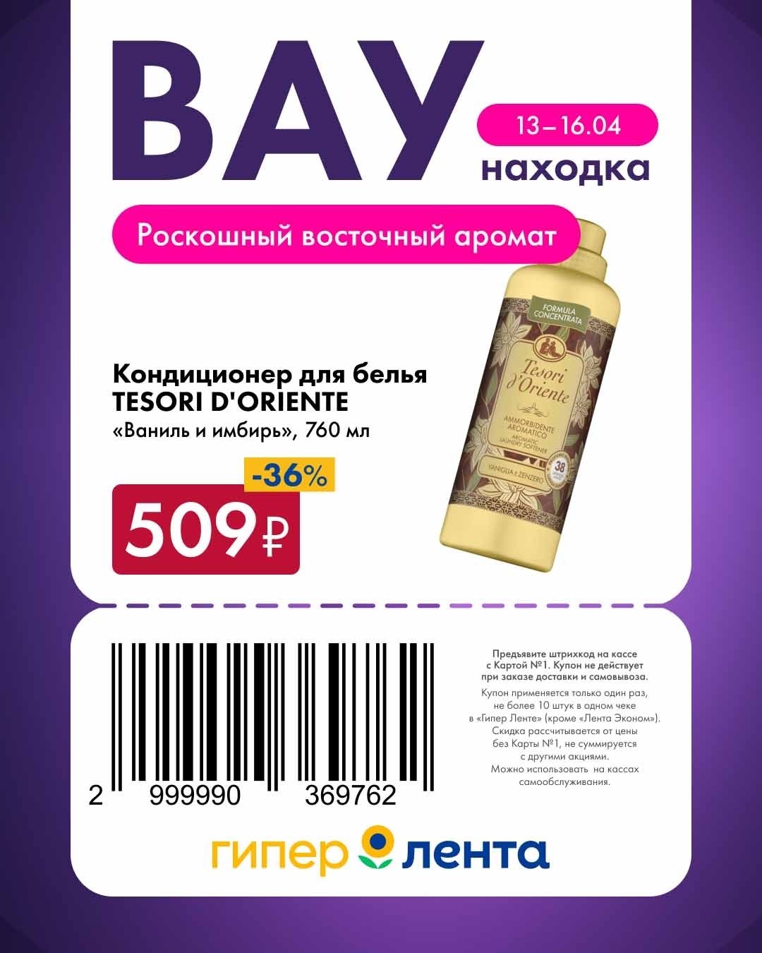 Гипермаркеты «Лента» запускают новую купонную акцию «Находка». Она действует с 13 по 16 апреля 2026 года. В эти дни вы можете купить 6 товаров по специальным ценам.