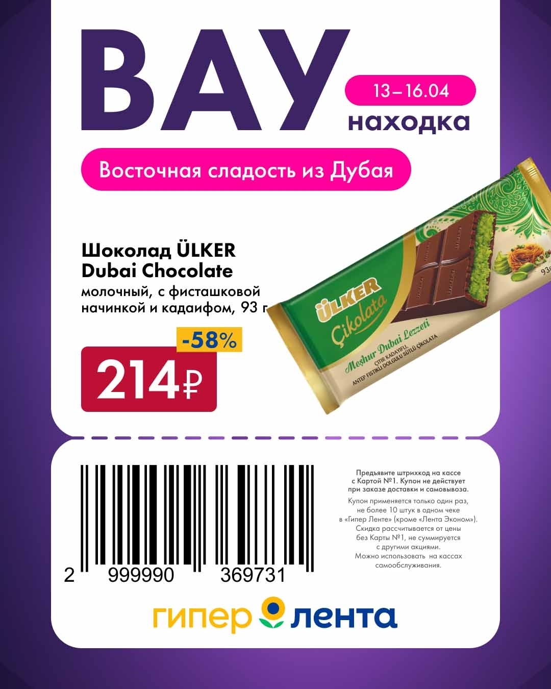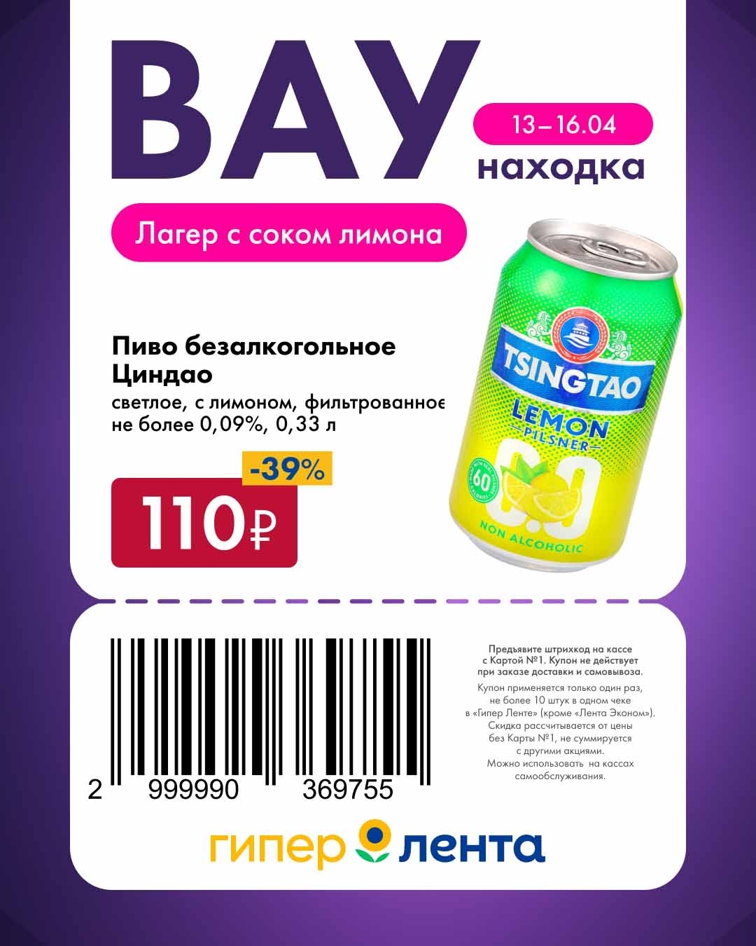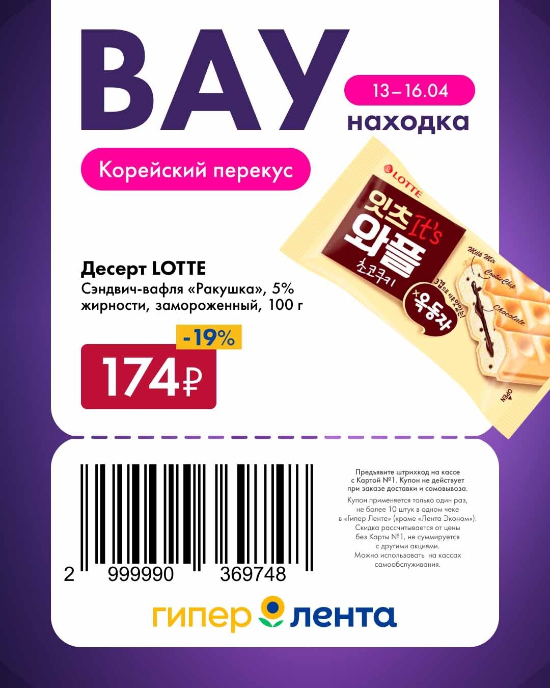 Гипермаркеты «Лента» запускают новую купонную акцию «Находка». Она действует с 13 по 16 апреля 2026 года. В эти дни вы можете купить 6 товаров по специальным ценам.