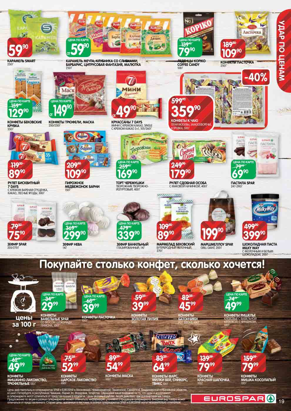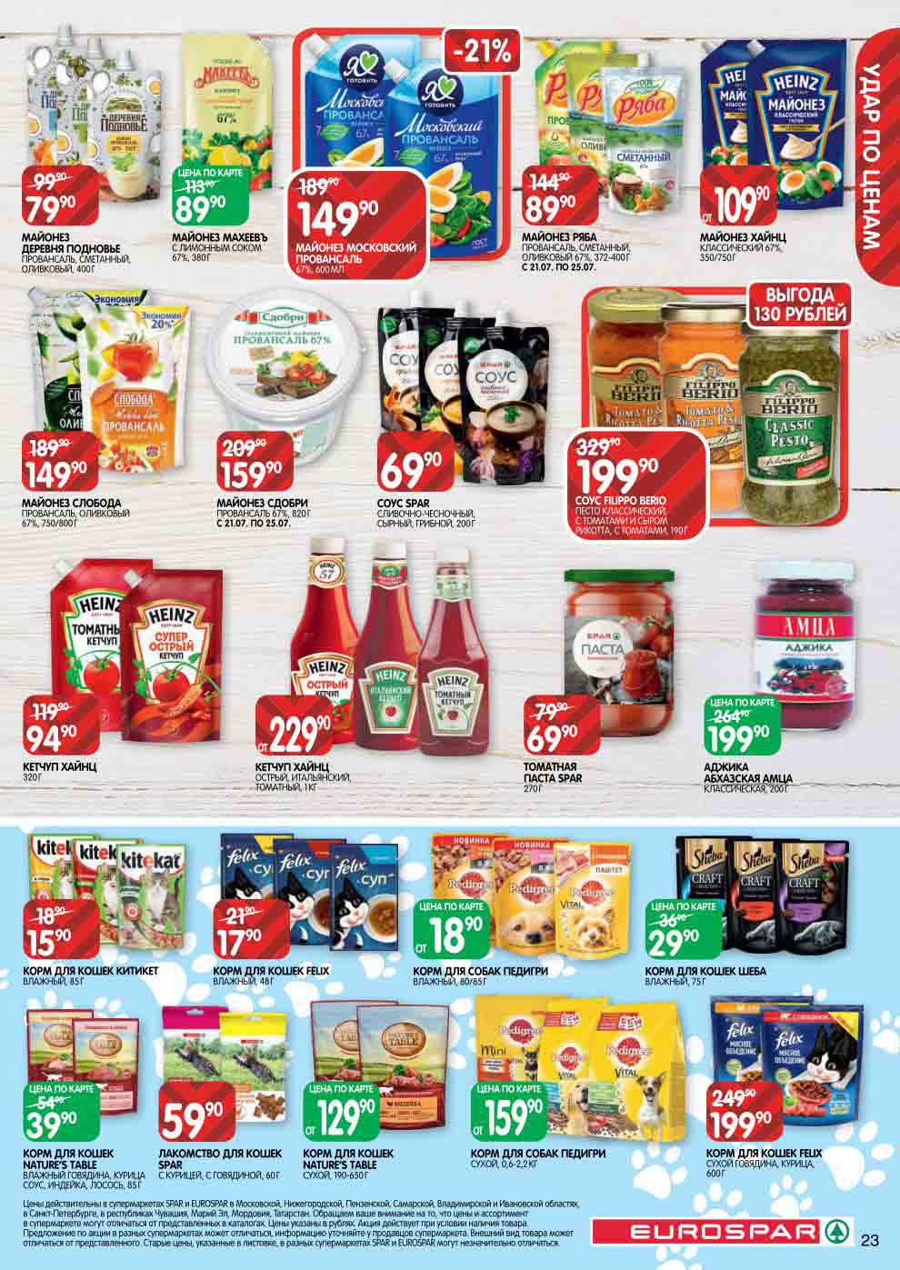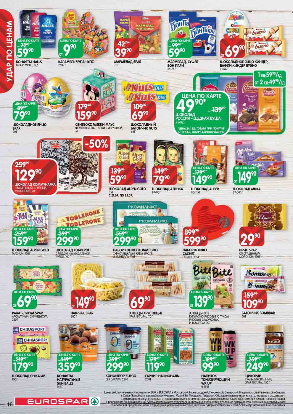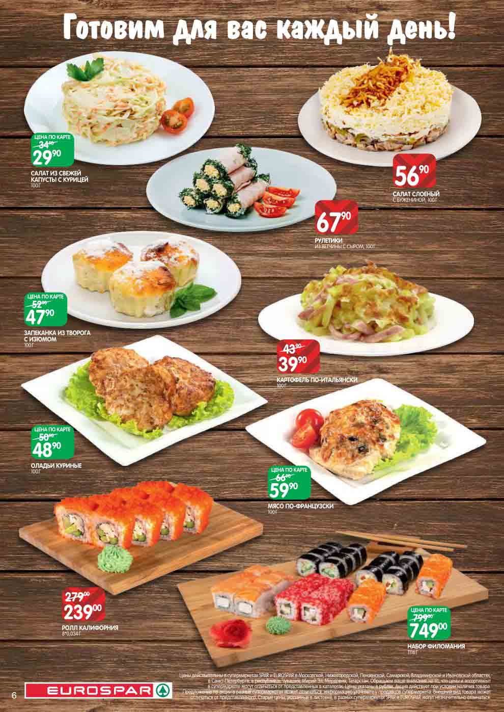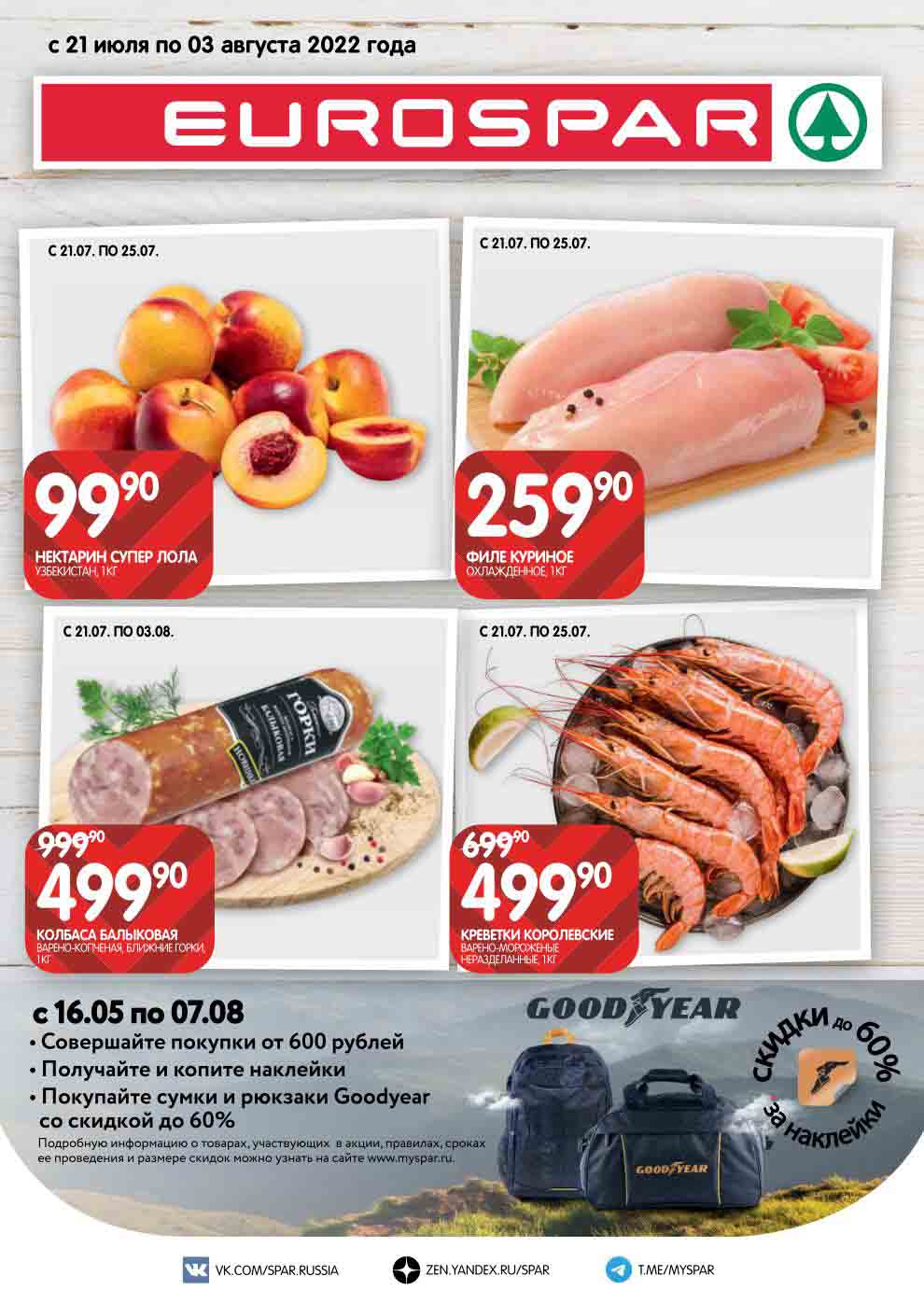 На страницах каталога ЕВРОСПАР вы найдете все свои любимые товары, которые сейчас предлагаются в супермаркете. Не пропустите последние специальные предложения и сэкономьте на покупках. Цены по акции ЕвроСпар действуют в городах: Москва, Химки, Красногорск, Одинцово, Краснознаменск, Кубинка, Климовск, Жуковский, Видное и других населенных пунктах Московского региона.