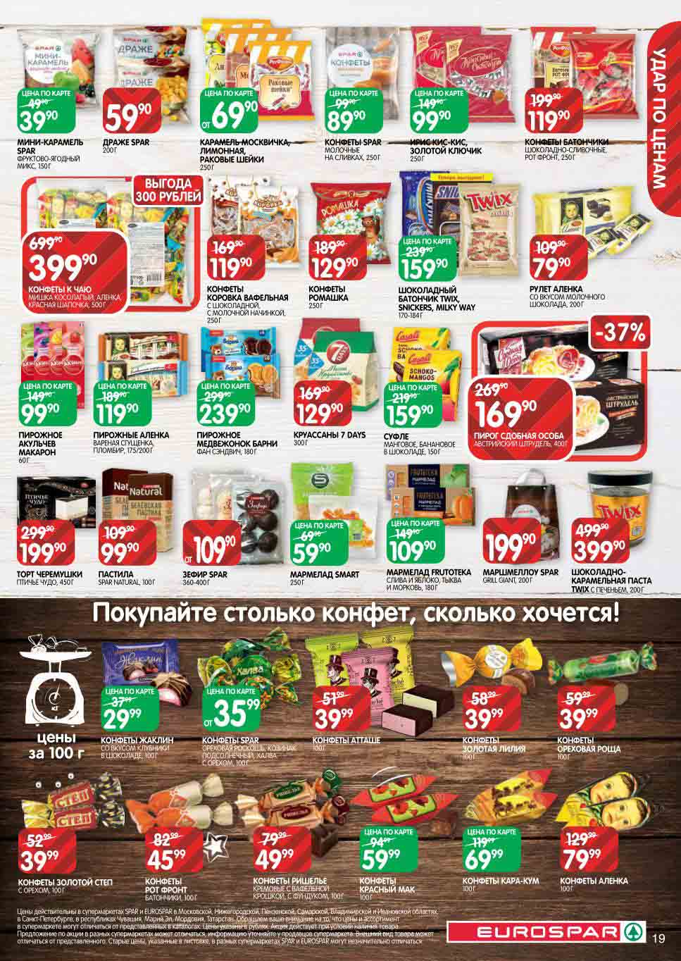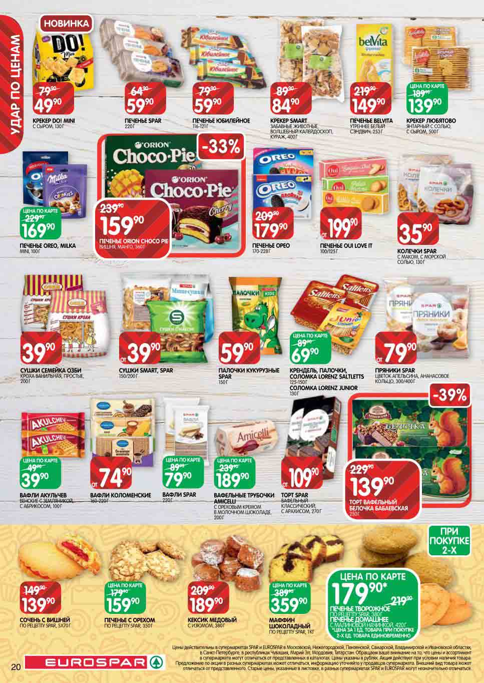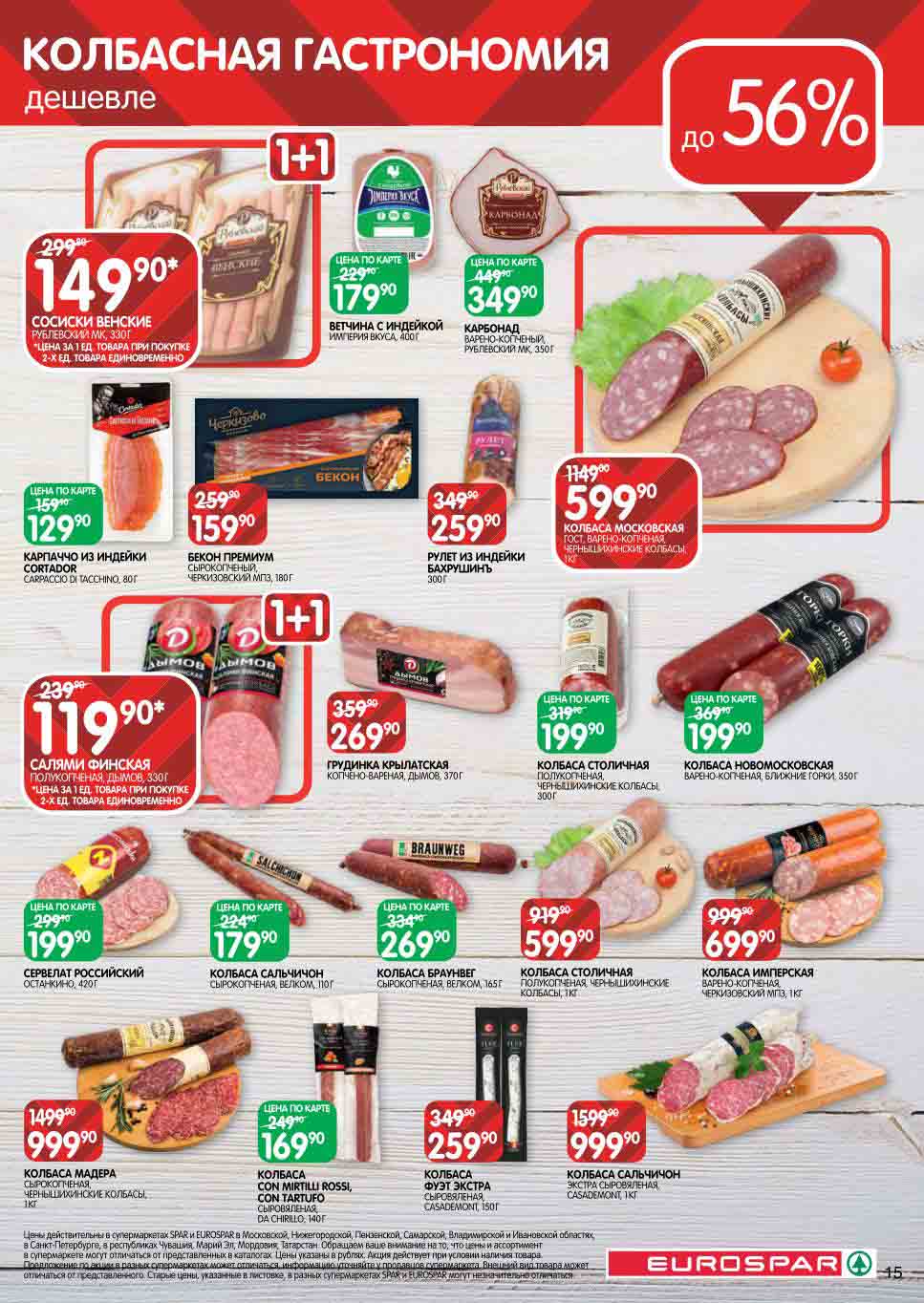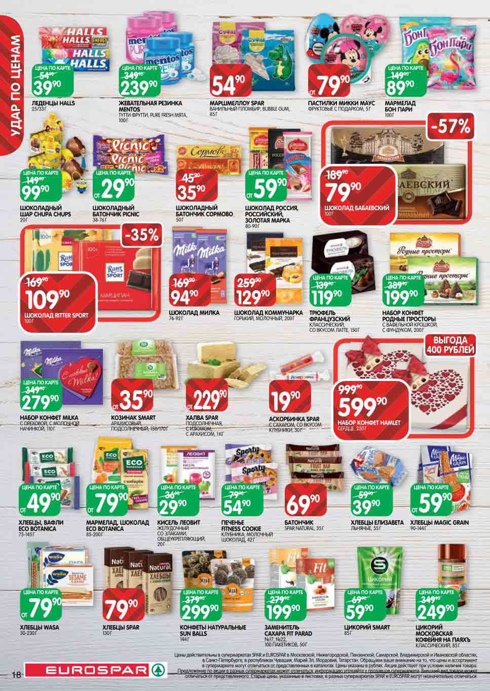 На страницах каталога ЕВРОСПАР вы найдете все свои любимые товары, которые сейчас предлагаются в супермаркете. Не пропустите последние специальные предложения и сэкономьте на покупках. Цены по акции ЕвроСпар действуют в городах: Москва, Химки, Красногорск, Одинцово, Краснознаменск, Кубинка, Климовск, Жуковский, Видное и других населенных пунктах Московского региона.