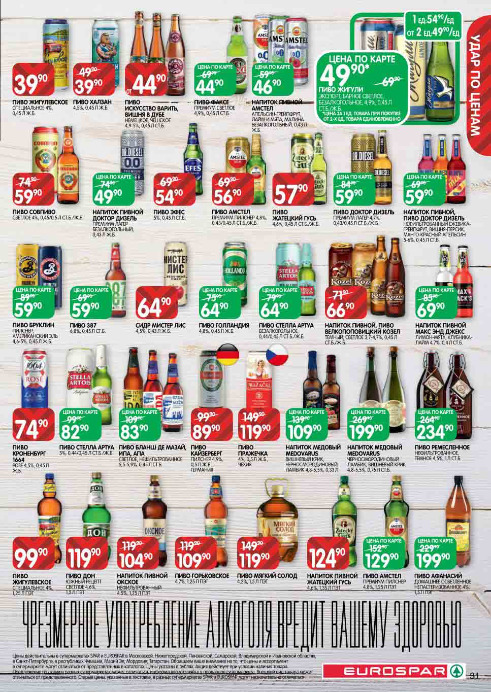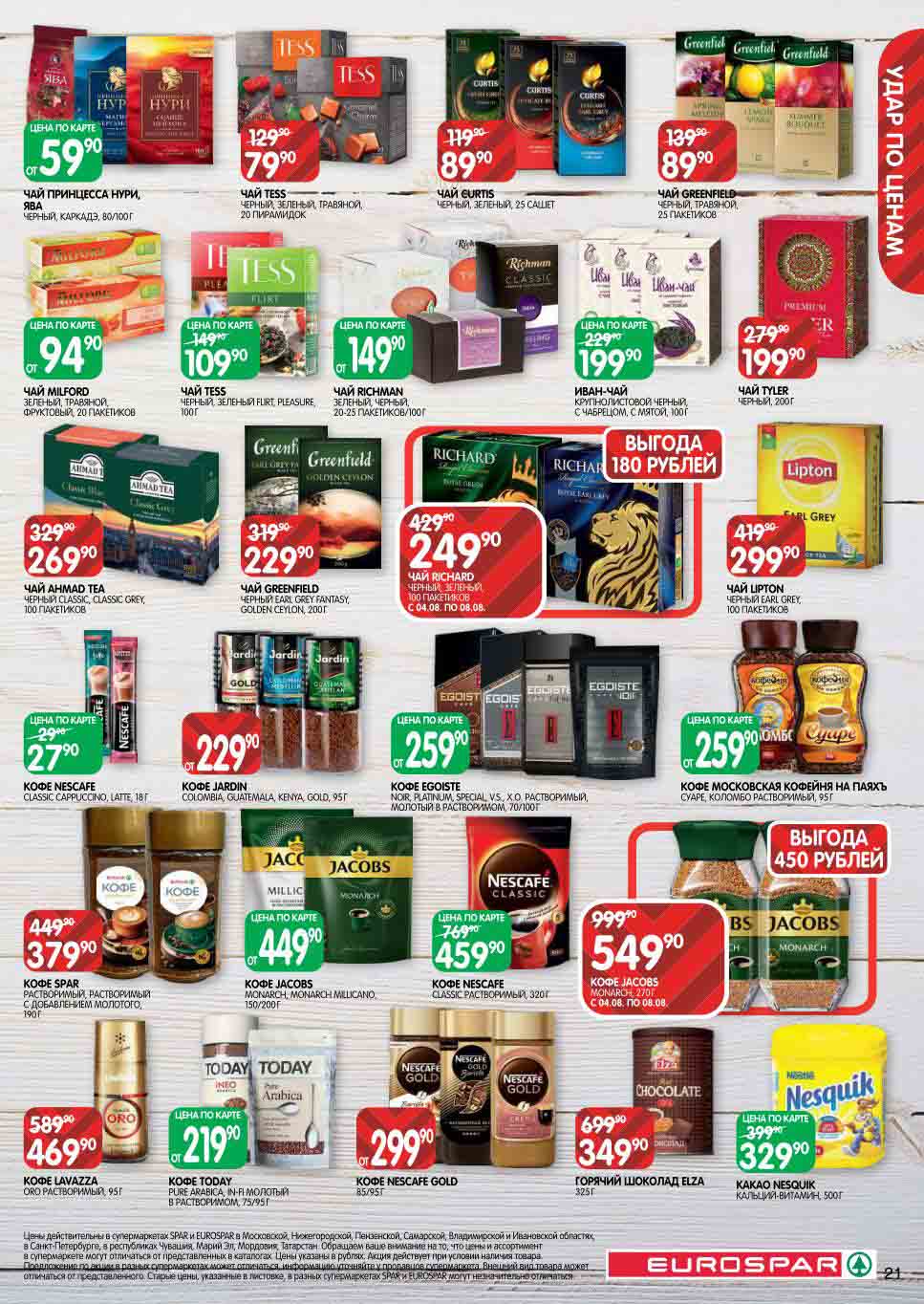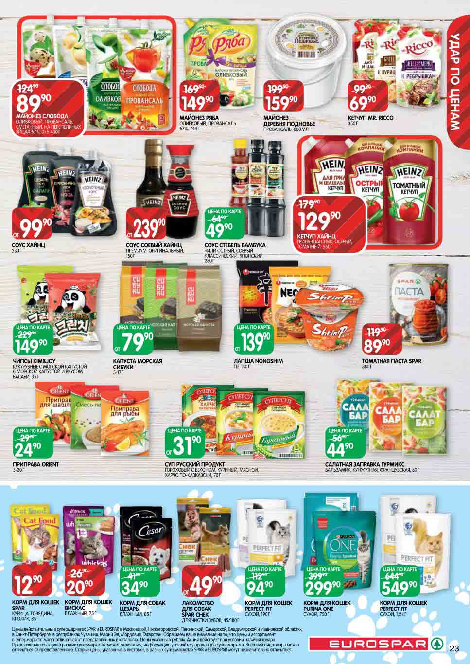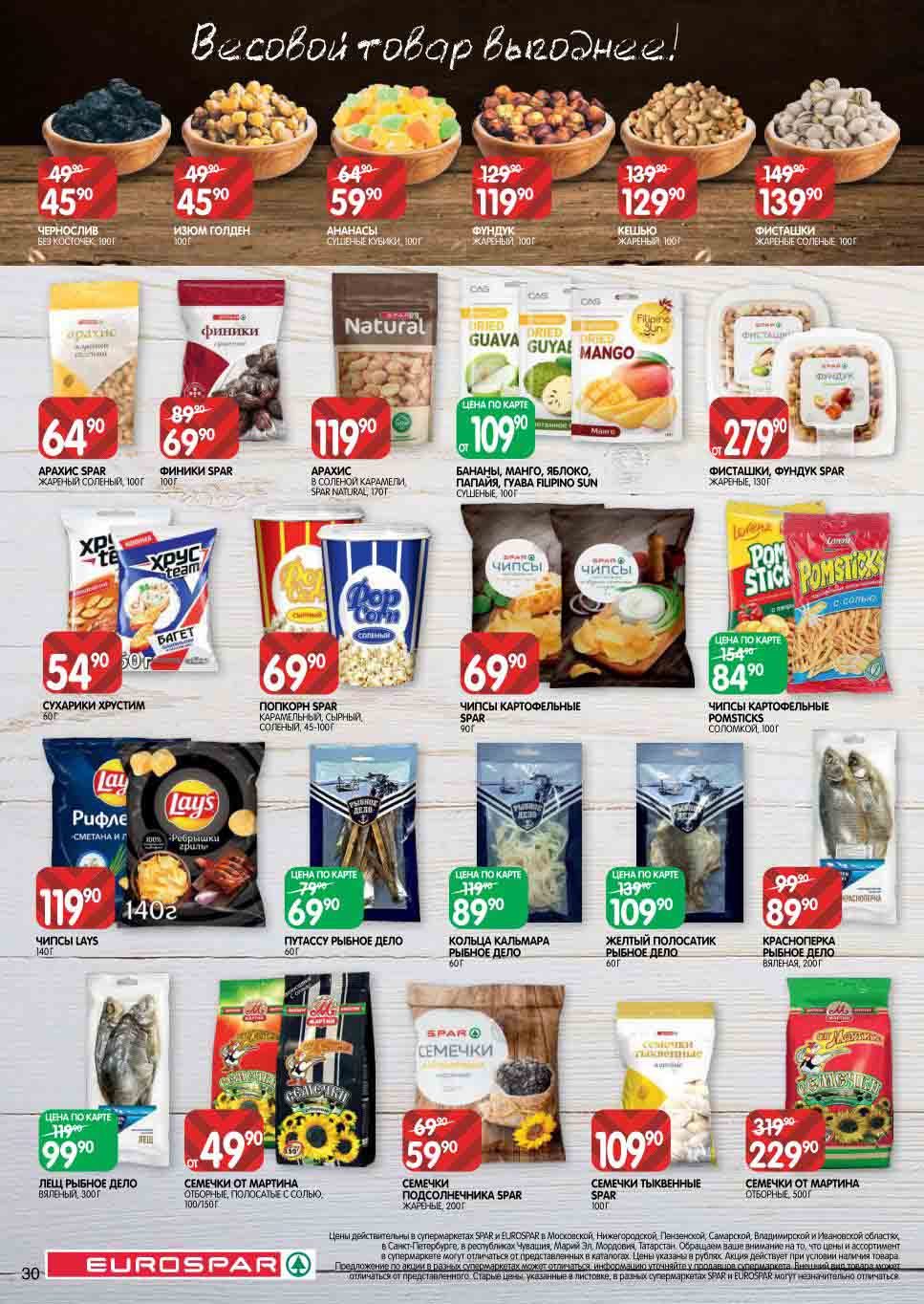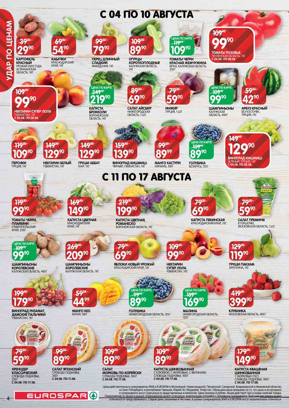 На страницах каталога ЕВРОСПАР вы найдете все свои любимые товары, которые сейчас предлагаются в супермаркете. Не пропустите последние специальные предложения и сэкономьте на покупках. Цены по акции ЕвроСпар действуют в городах: Москва, Химки, Красногорск, Одинцово, Краснознаменск, Кубинка, Климовск, Жуковский, Видное и других населенных пунктах Московского региона.