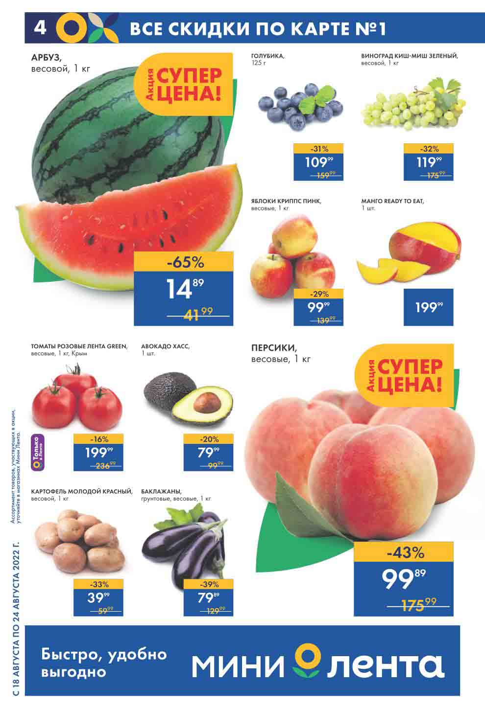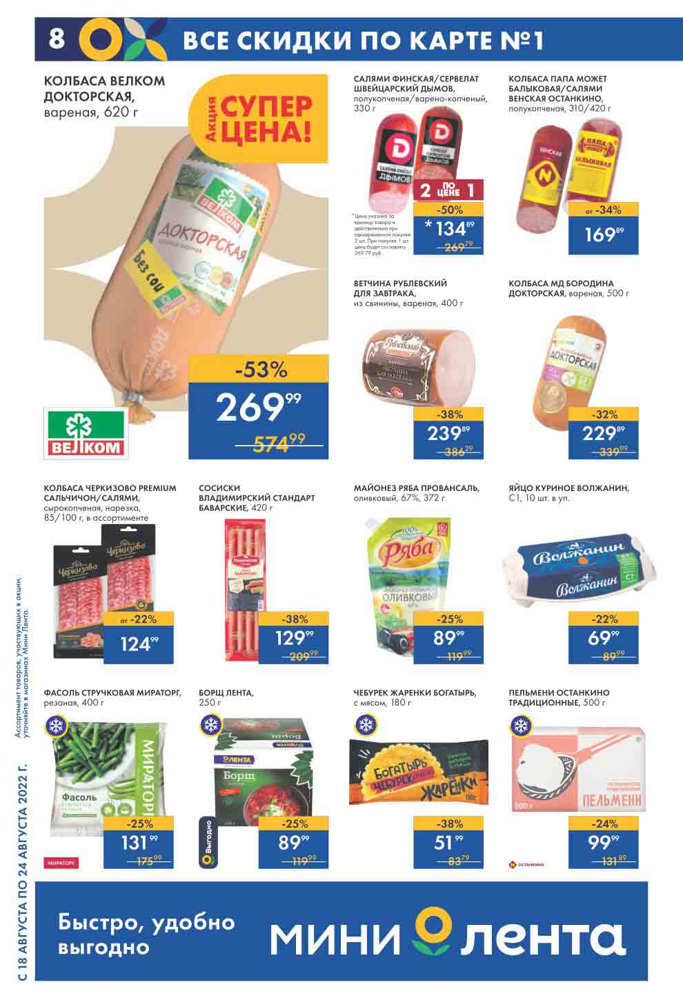 Акции по еженедельному каталогу в Мини Лента с 18 августа — 24 августа 2022