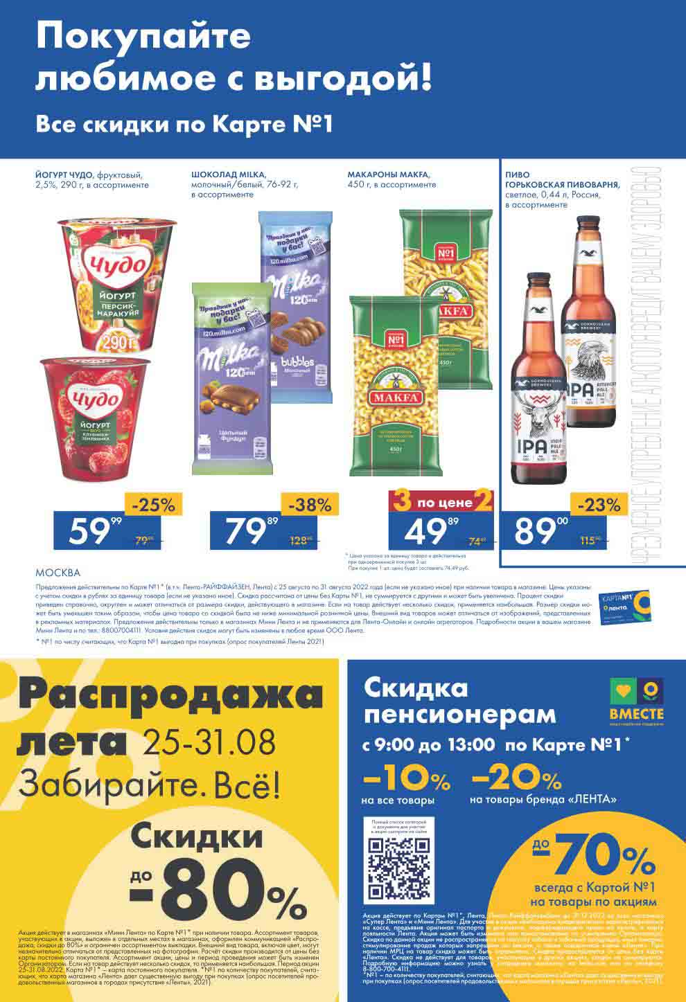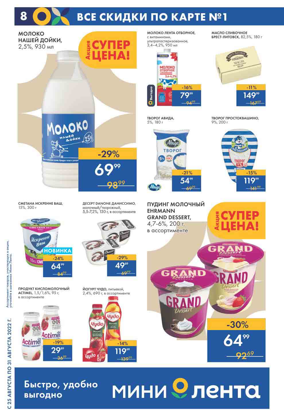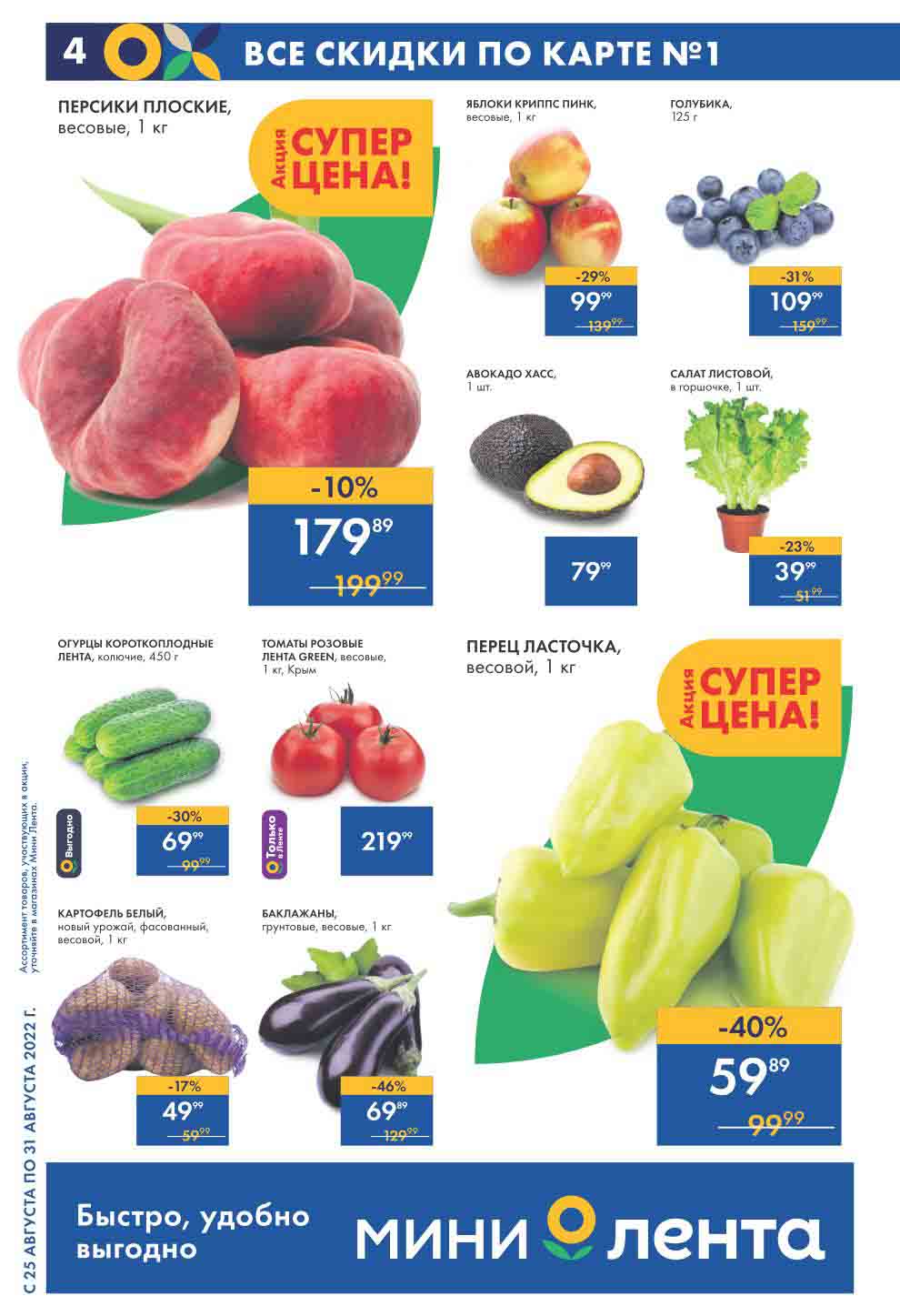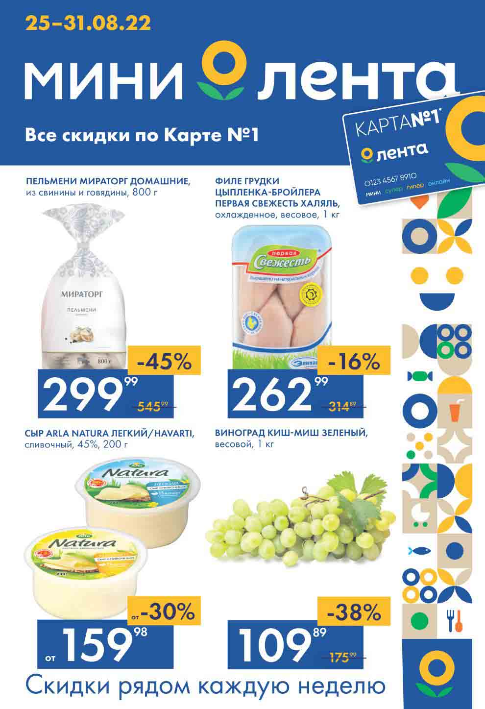 Акции по еженедельному каталогу в Мини Лента с 25 августа — 31 августа 2022