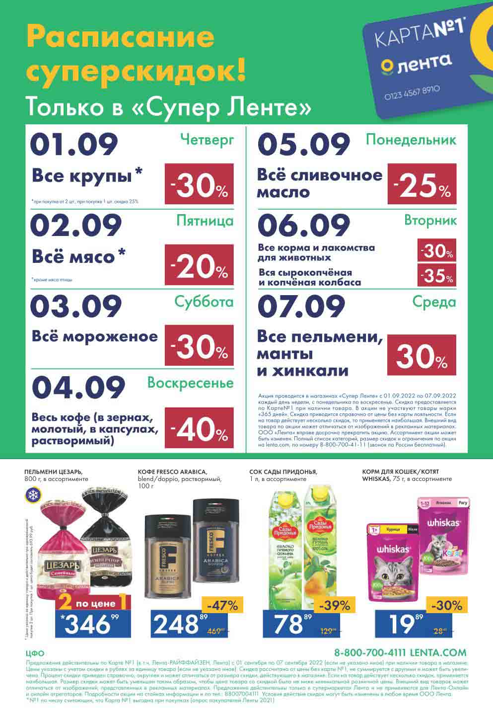 Акции по еженедельному каталогу в Супермаркете Лента с 1 сентября — 7 сентября 2022