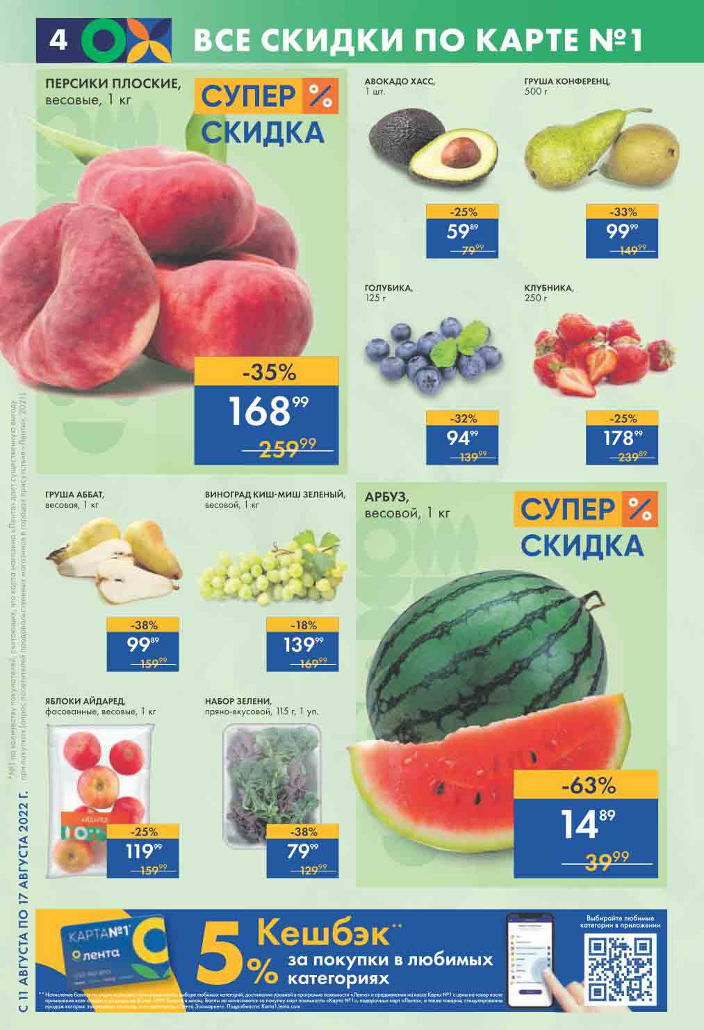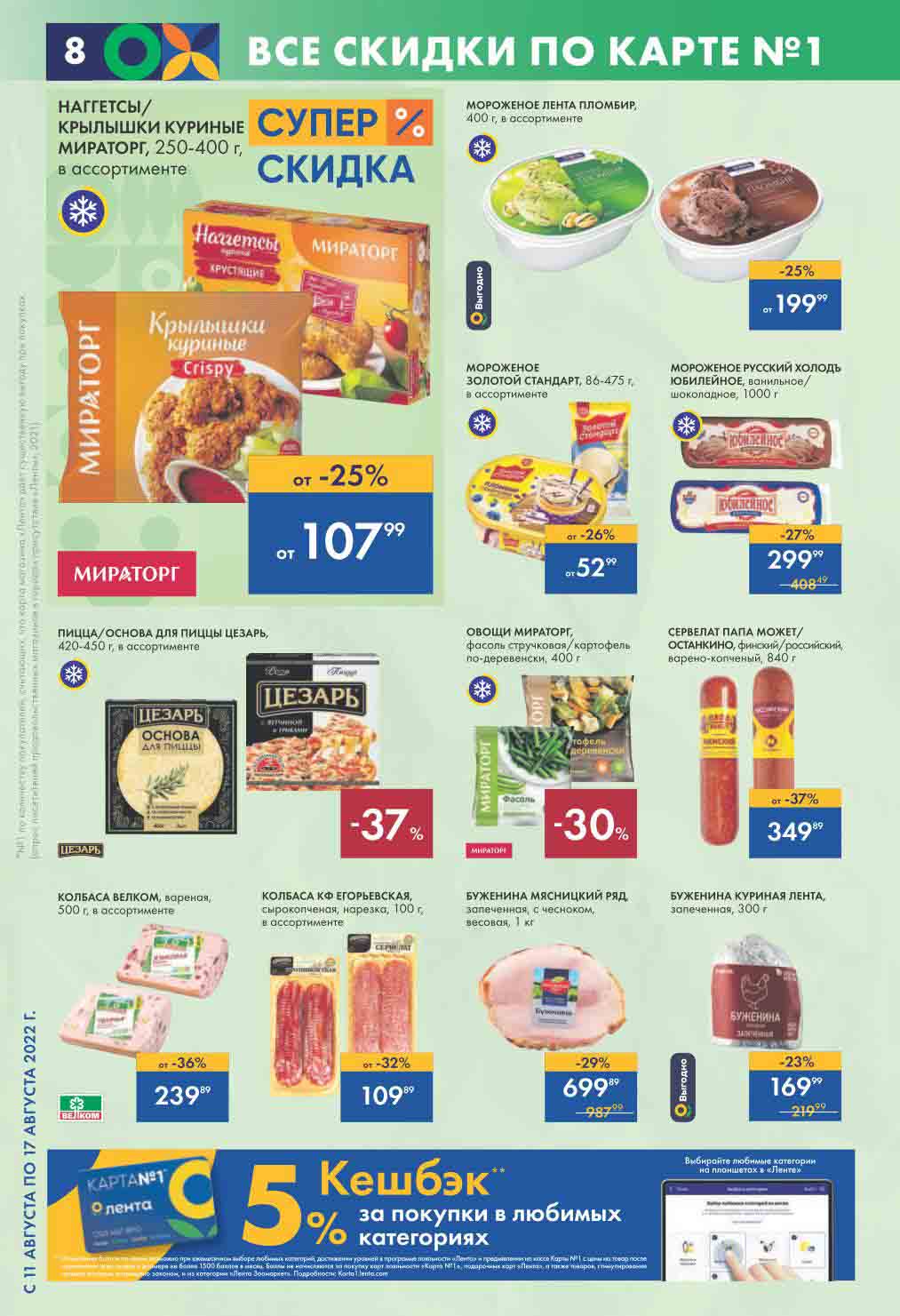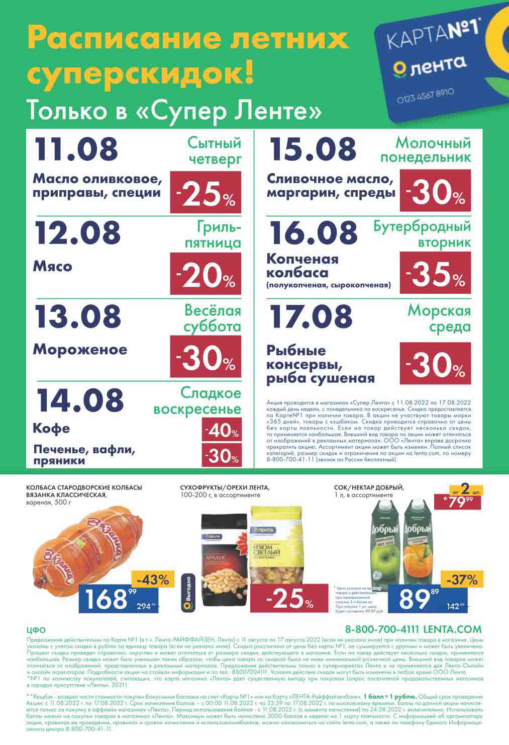Акции по еженедельному каталогу в Супермаркете Лента с 11 августа — 17 августа 2022
