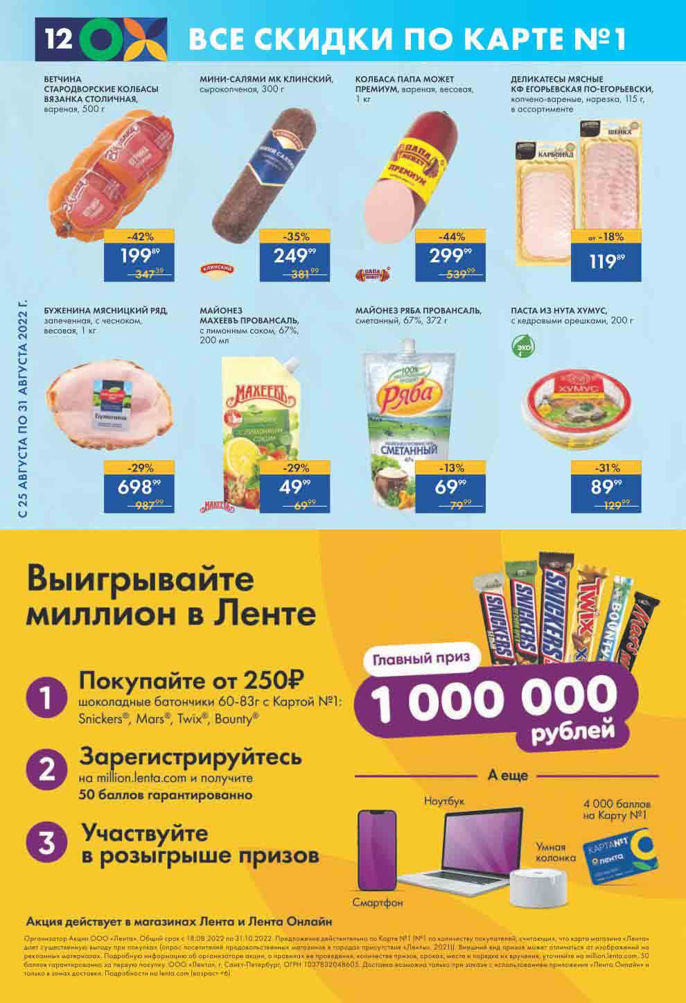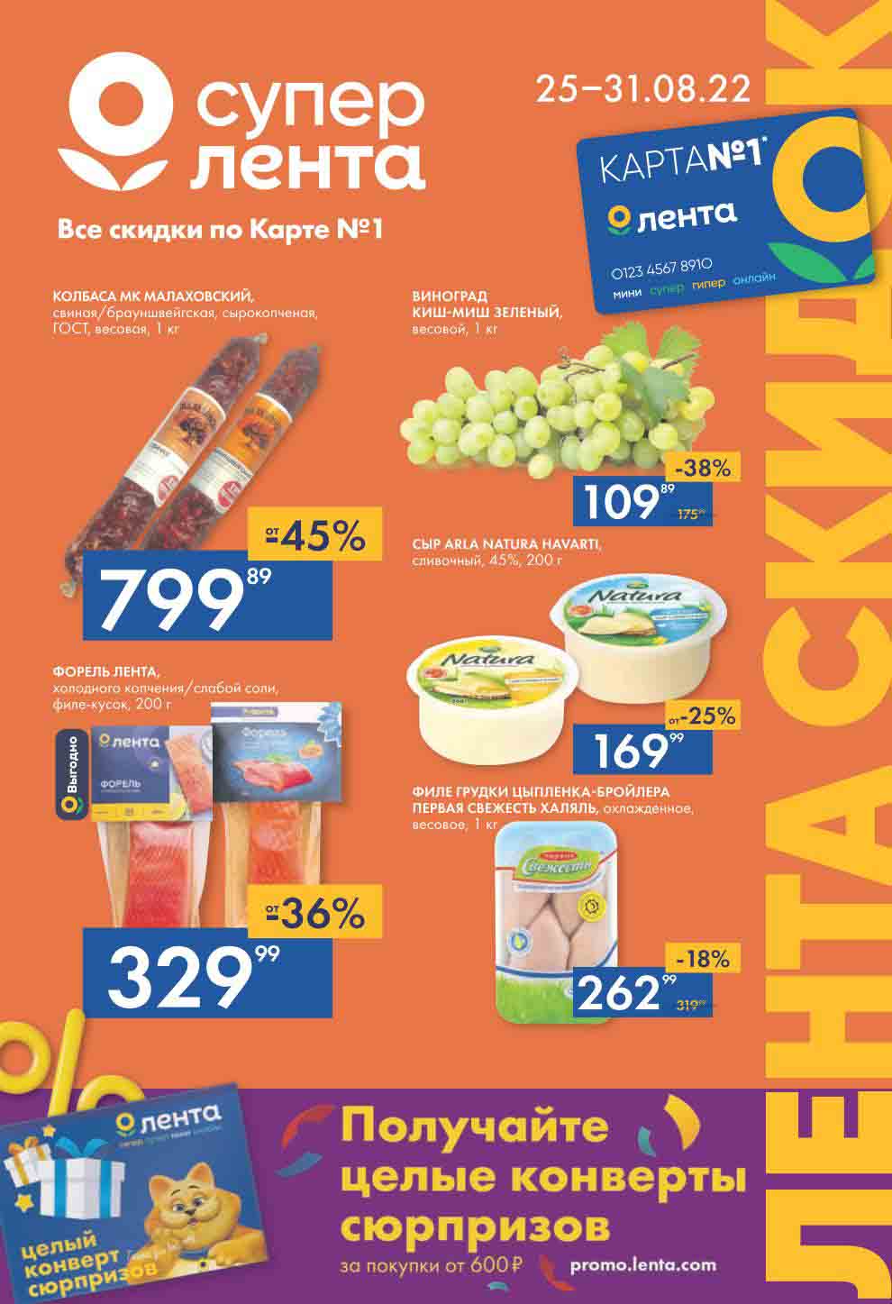 Акции по еженедельному каталогу в Супермаркете Лента с 25 августа — 31 августа 2022