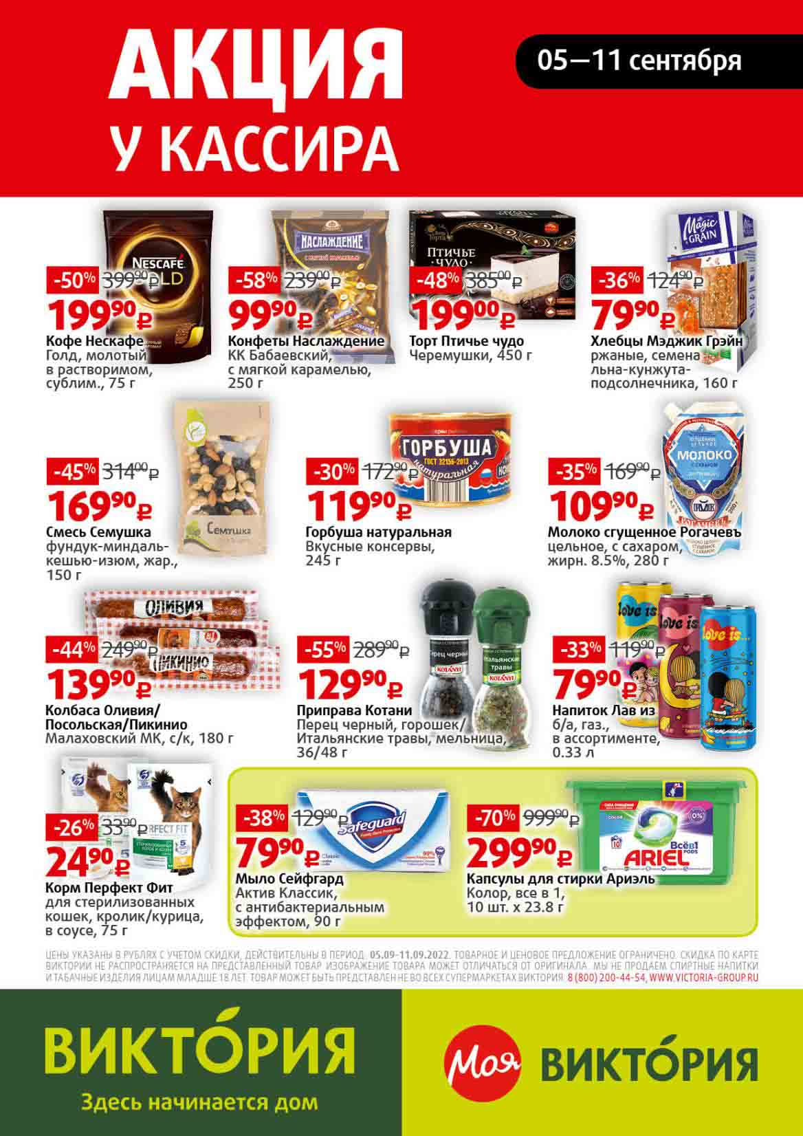 Подробную информацию об правилах, наличии товаров, адресах и скидках узнавайте в магазинахили по тел.: 8-800-200-44-54и на сайте: victoria-group.ru