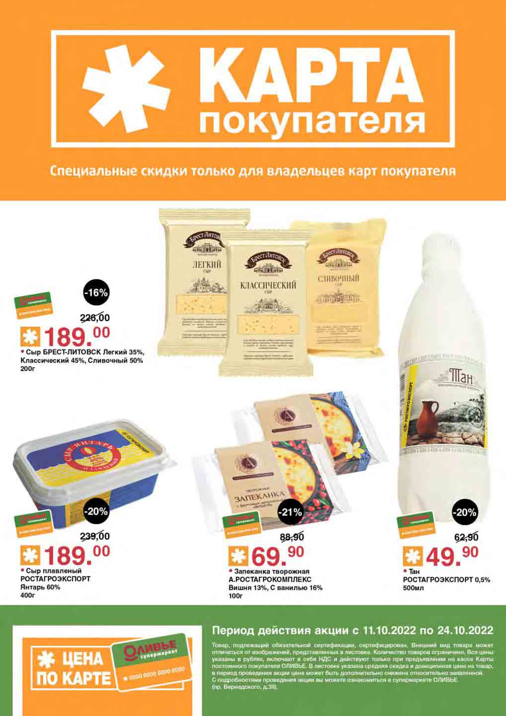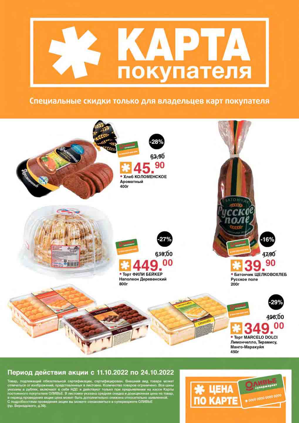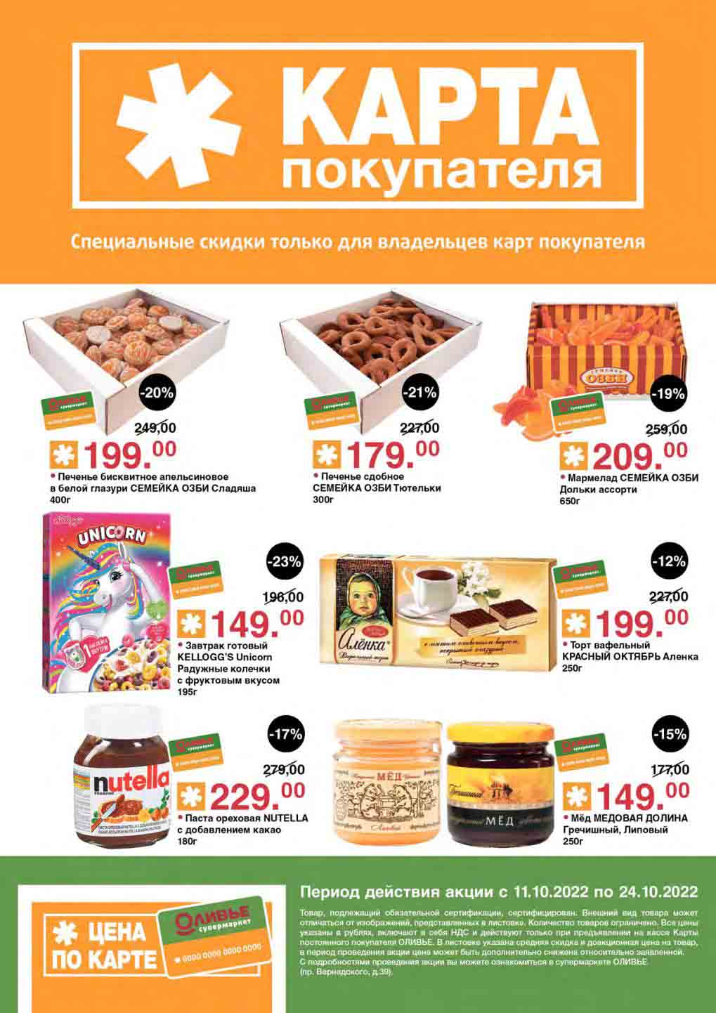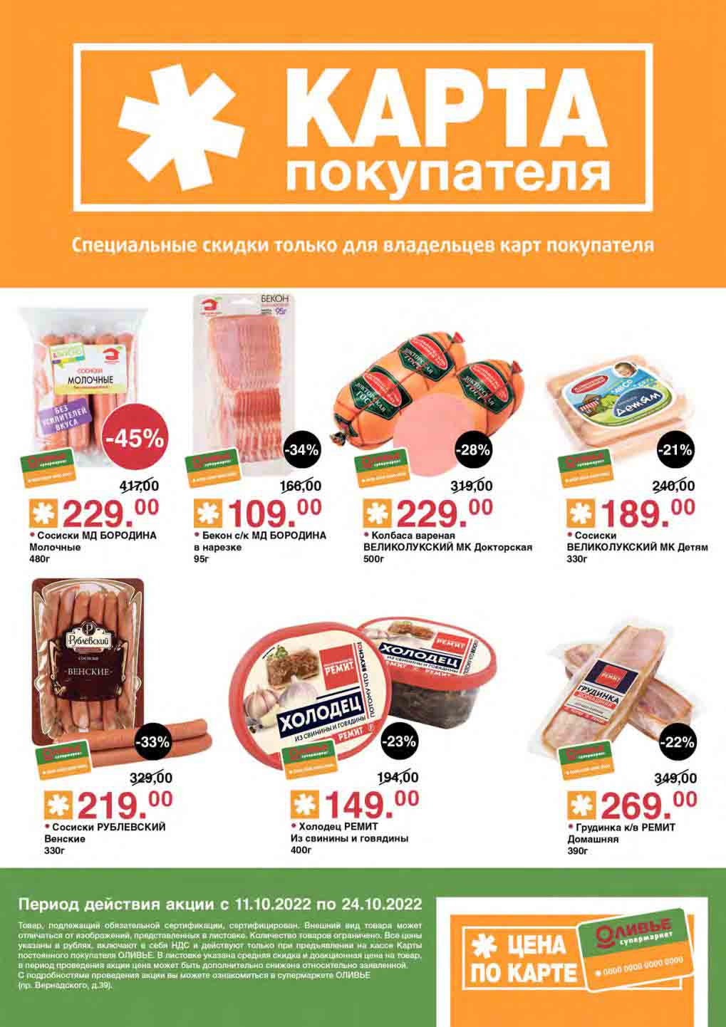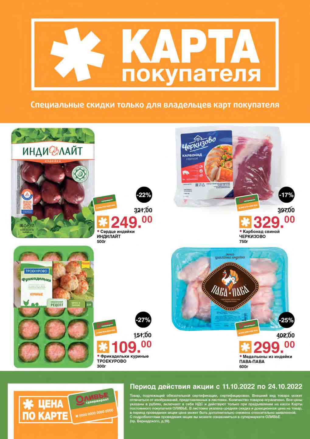 Акции по карте покупателя в супермаркете Оливье с 11 октября — 24 октября 2022