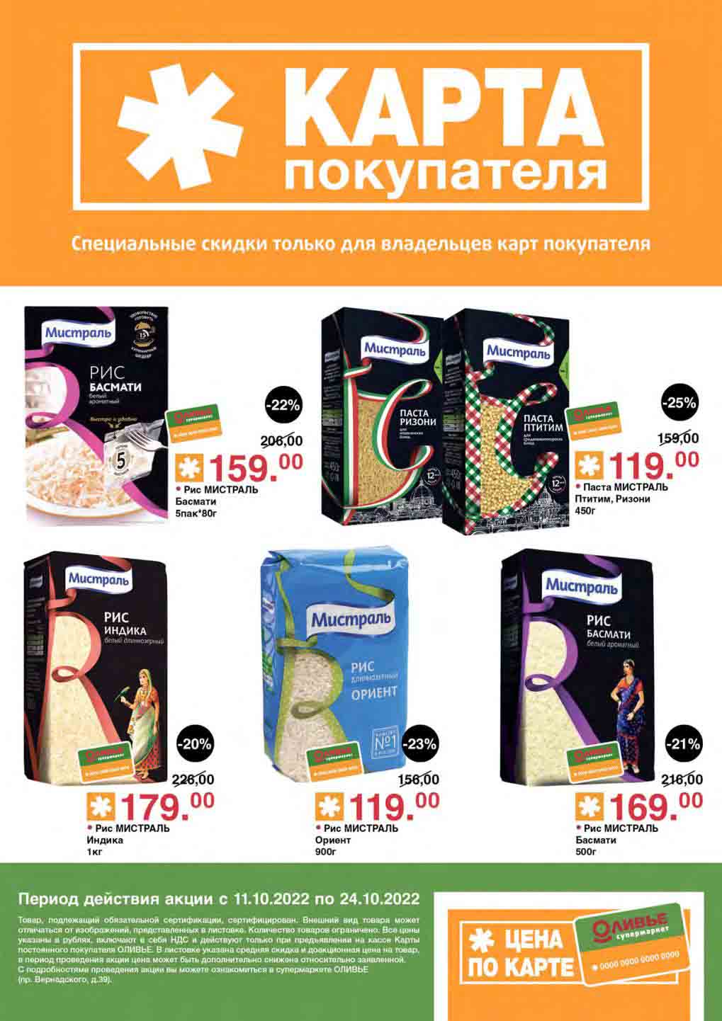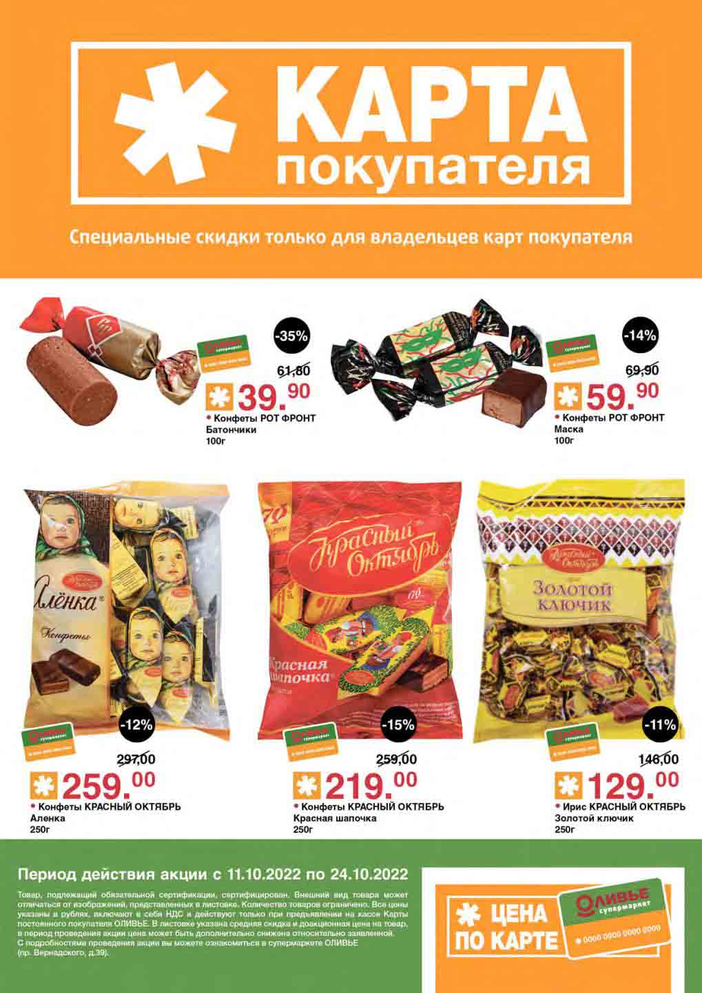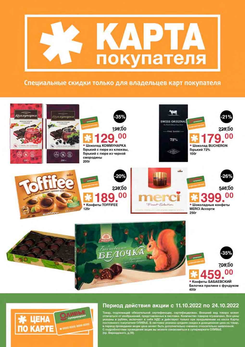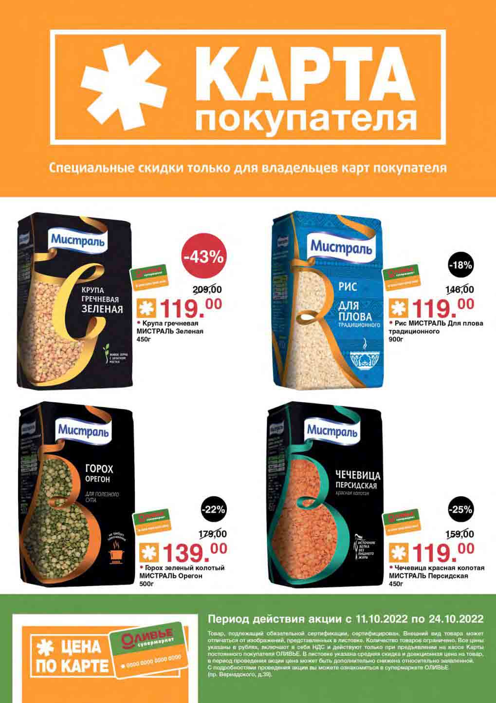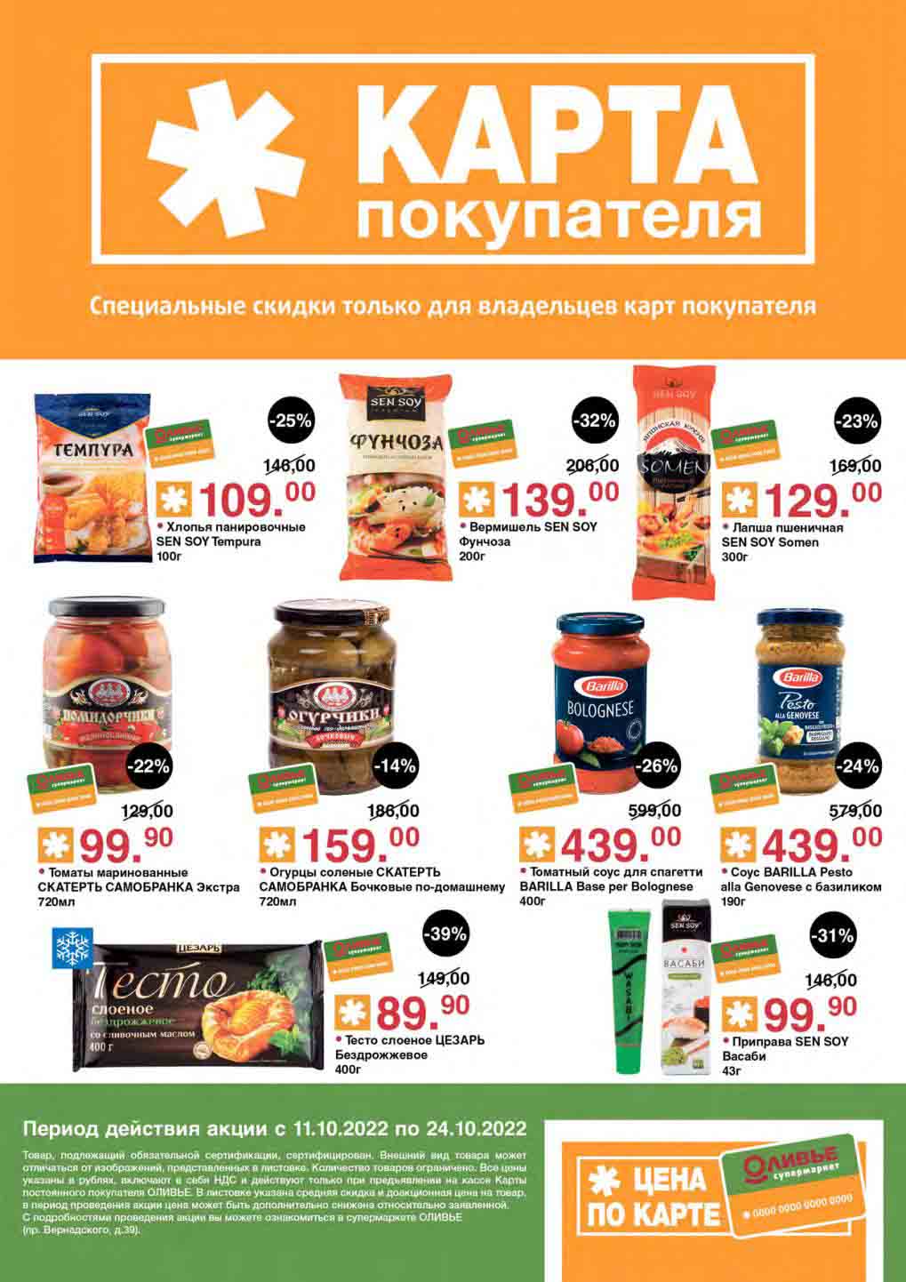 Акции по карте покупателя в супермаркете Оливье с 11 октября — 24 октября 2022