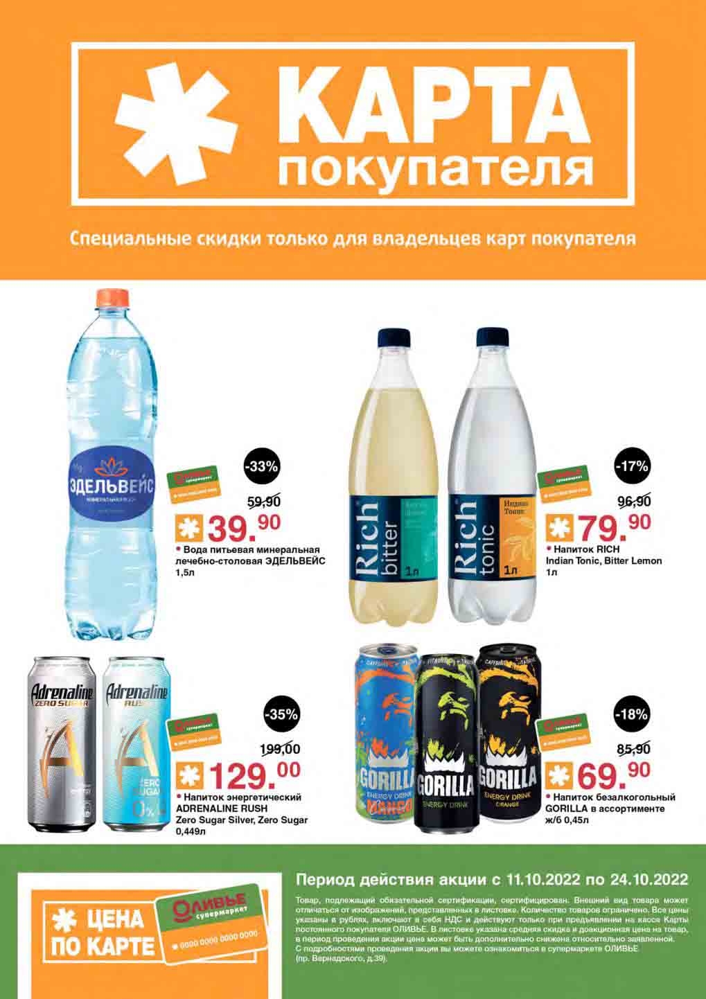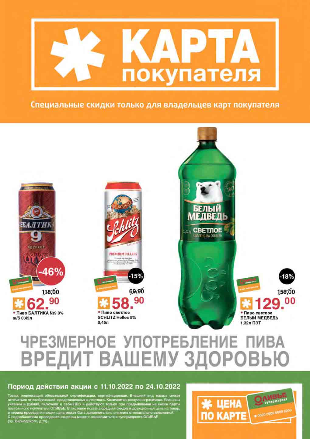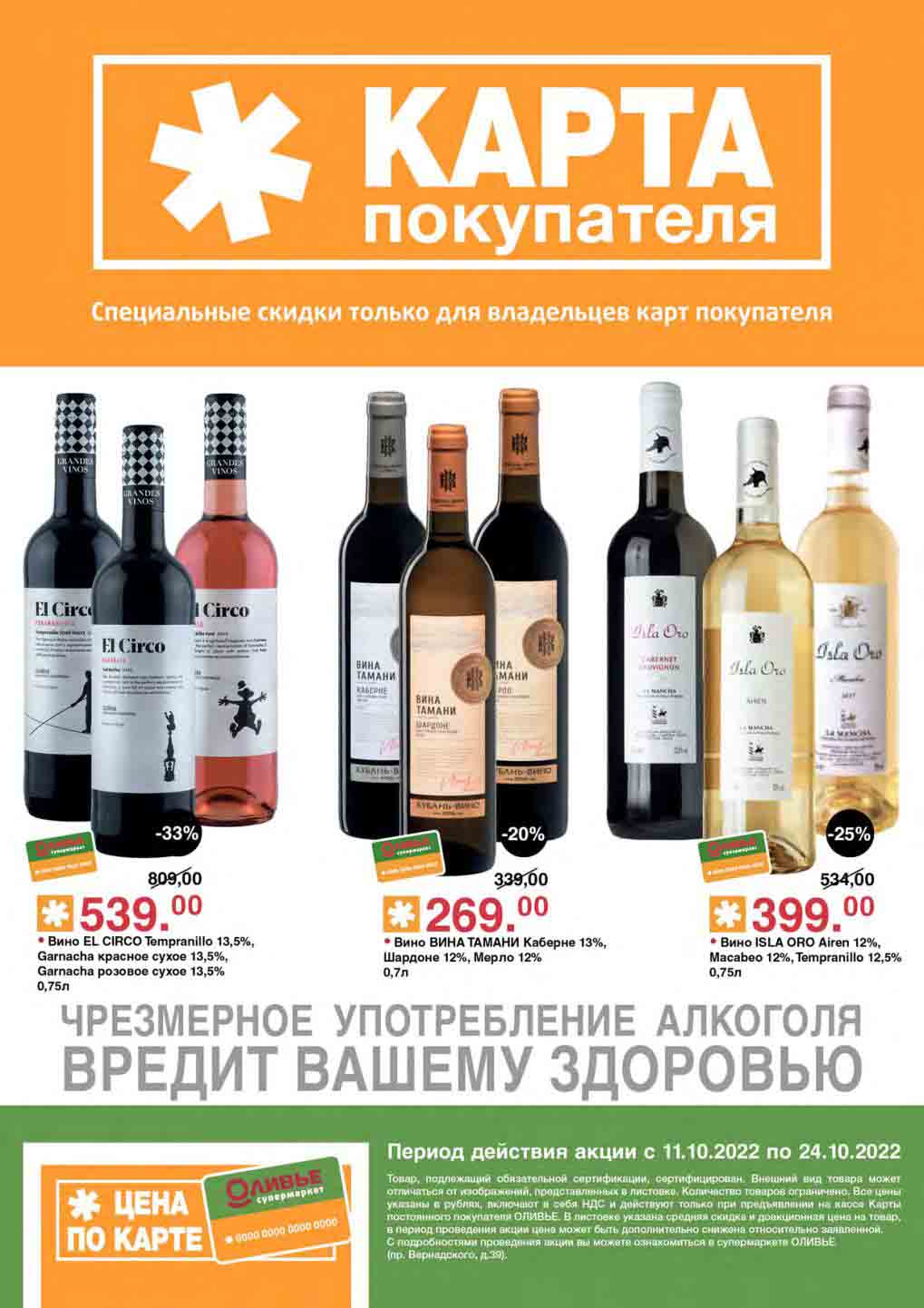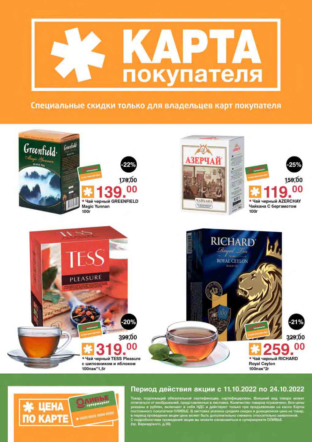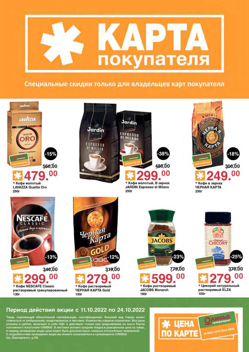 Акции по карте покупателя в супермаркете Оливье с 11 октября — 24 октября 2022