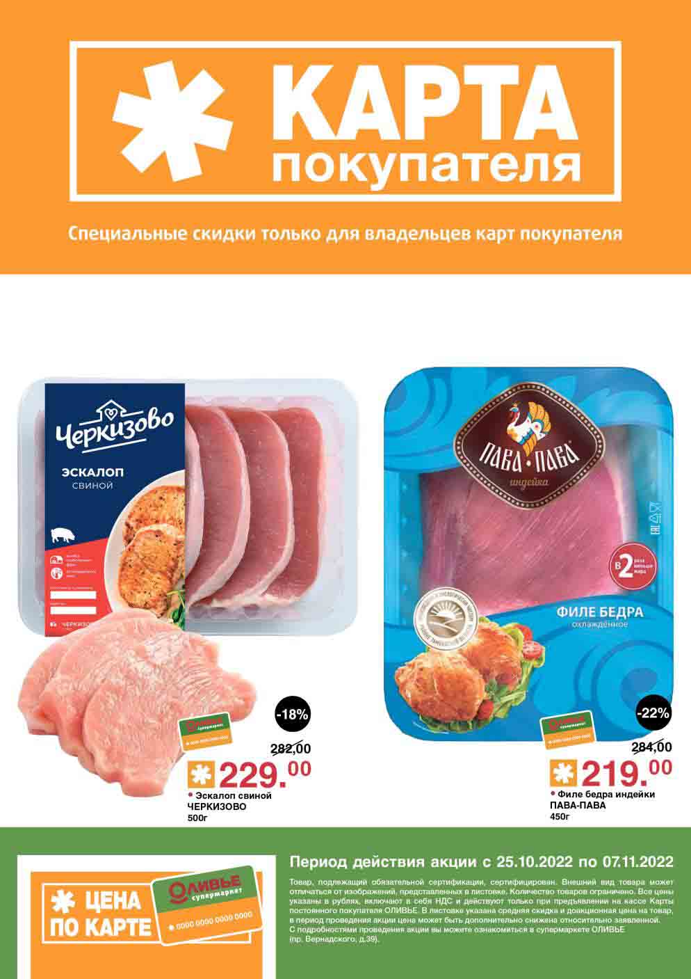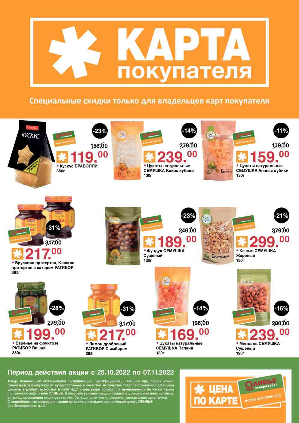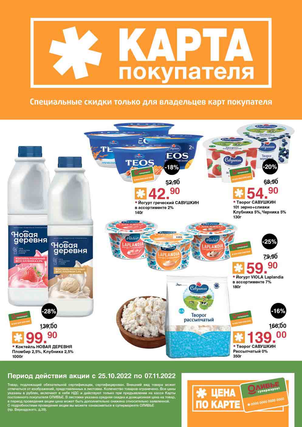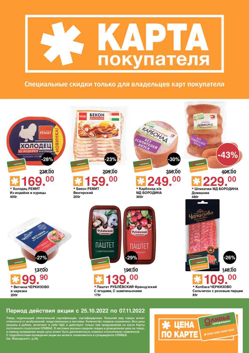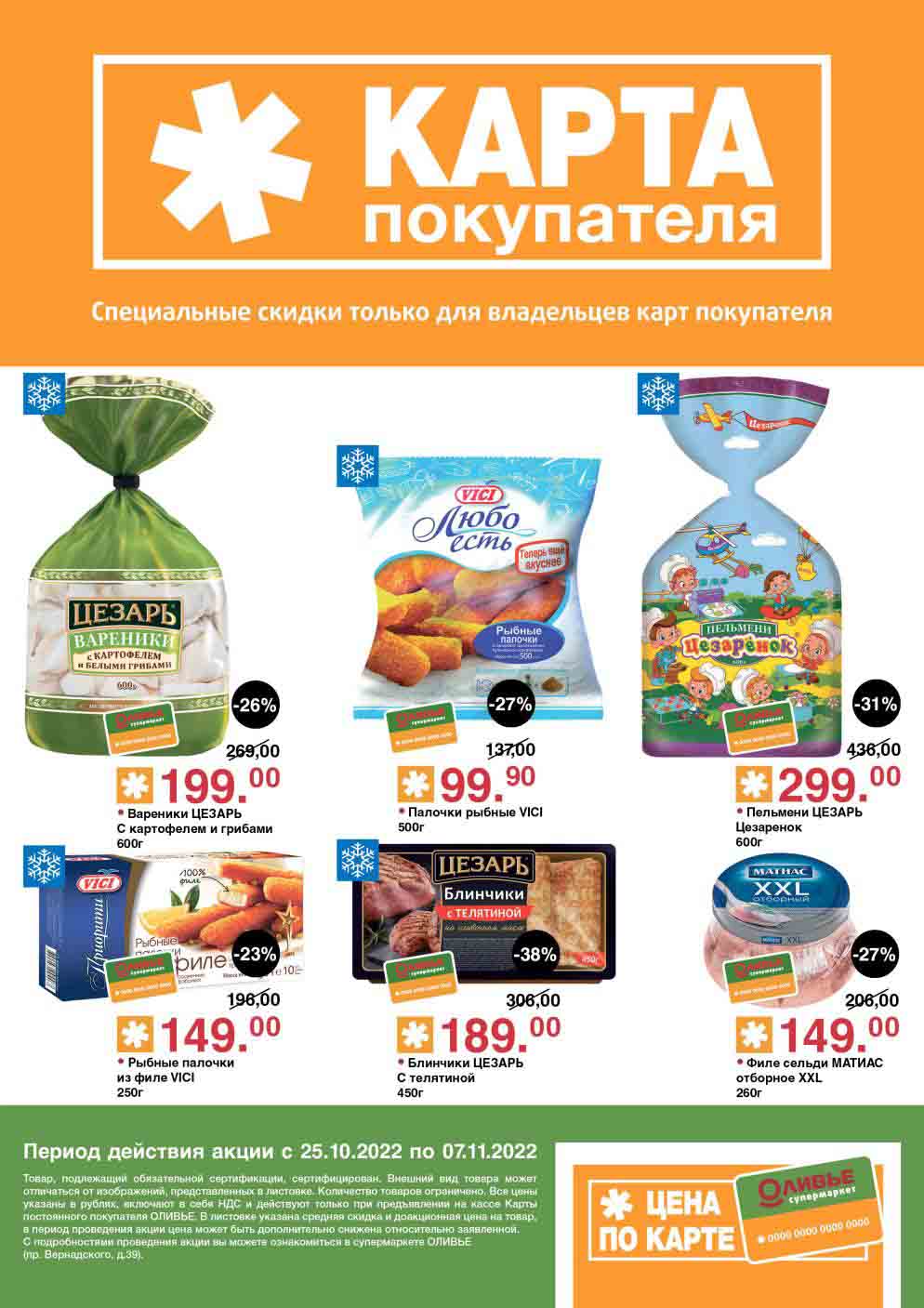 Акции по карте покупателя в супермаркете Оливье с 25 октября — 7 ноября 2022