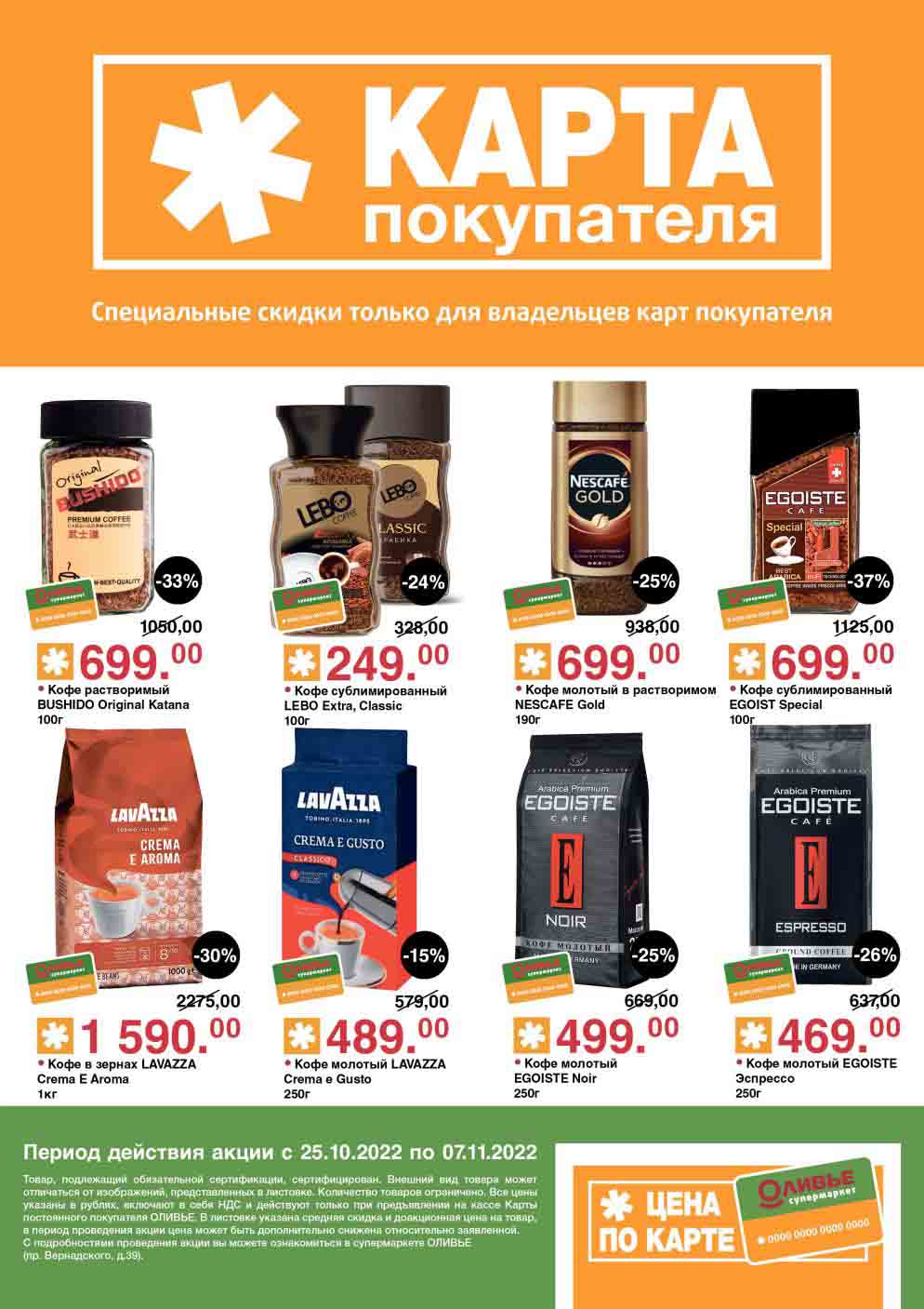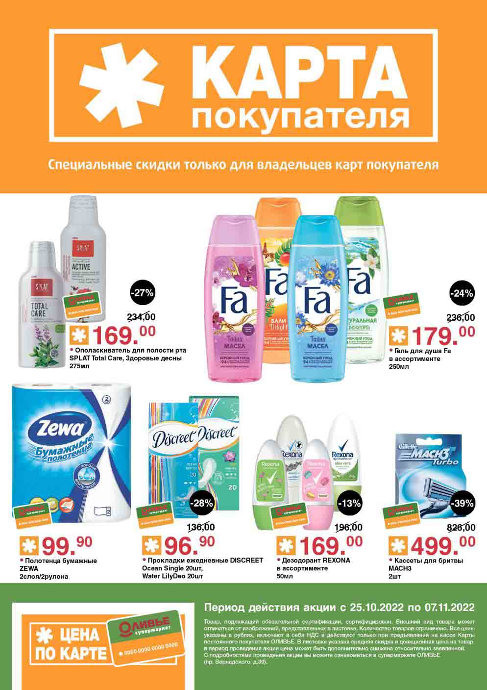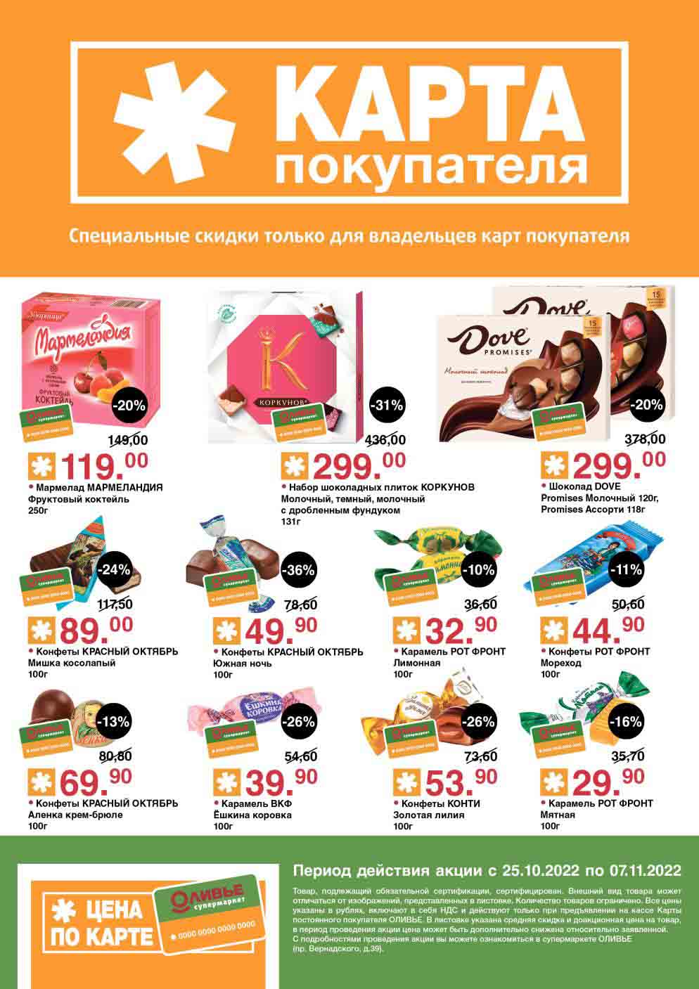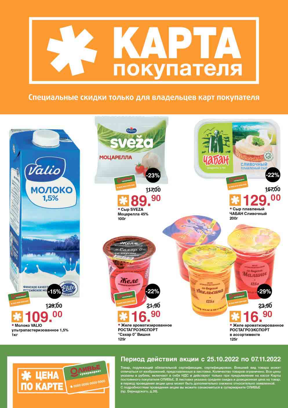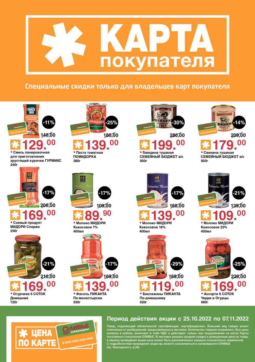 Акции по карте покупателя в супермаркете Оливье с 25 октября — 7 ноября 2022