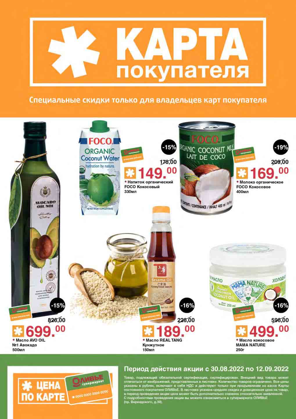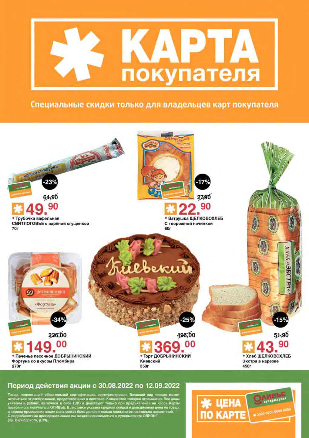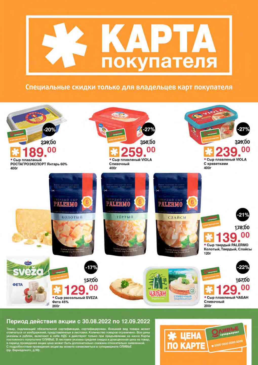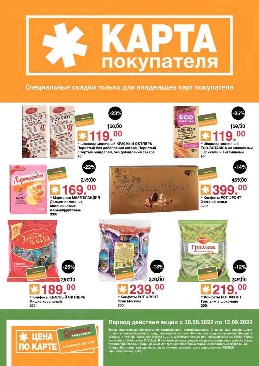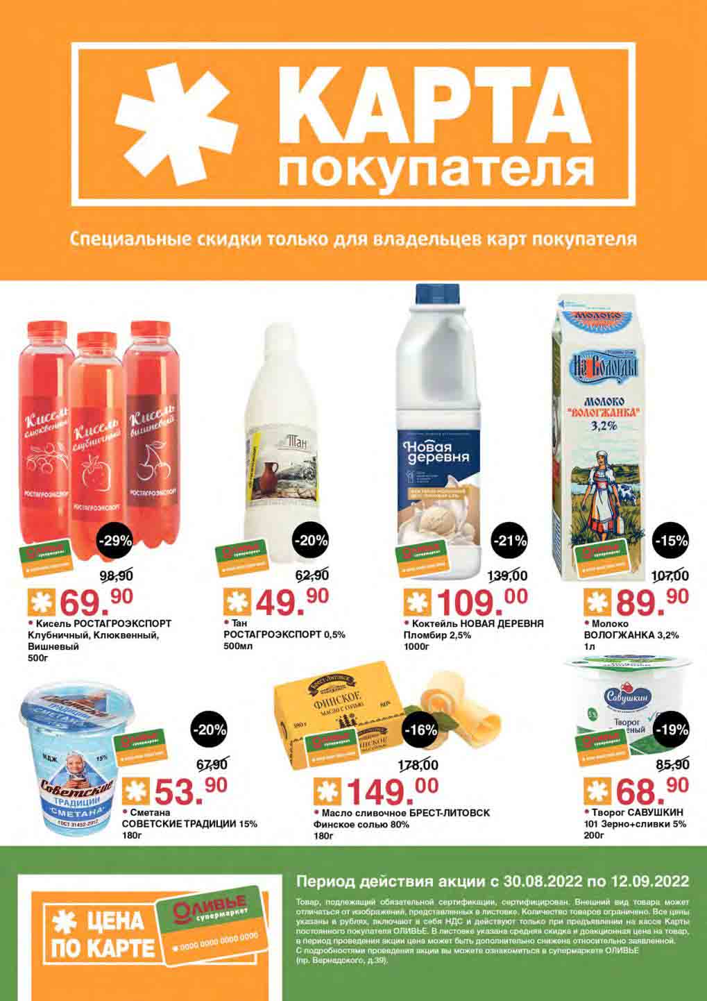 Акции по карте покупателя в супермаркете Оливье с 30 августа — 12 сентября 2022