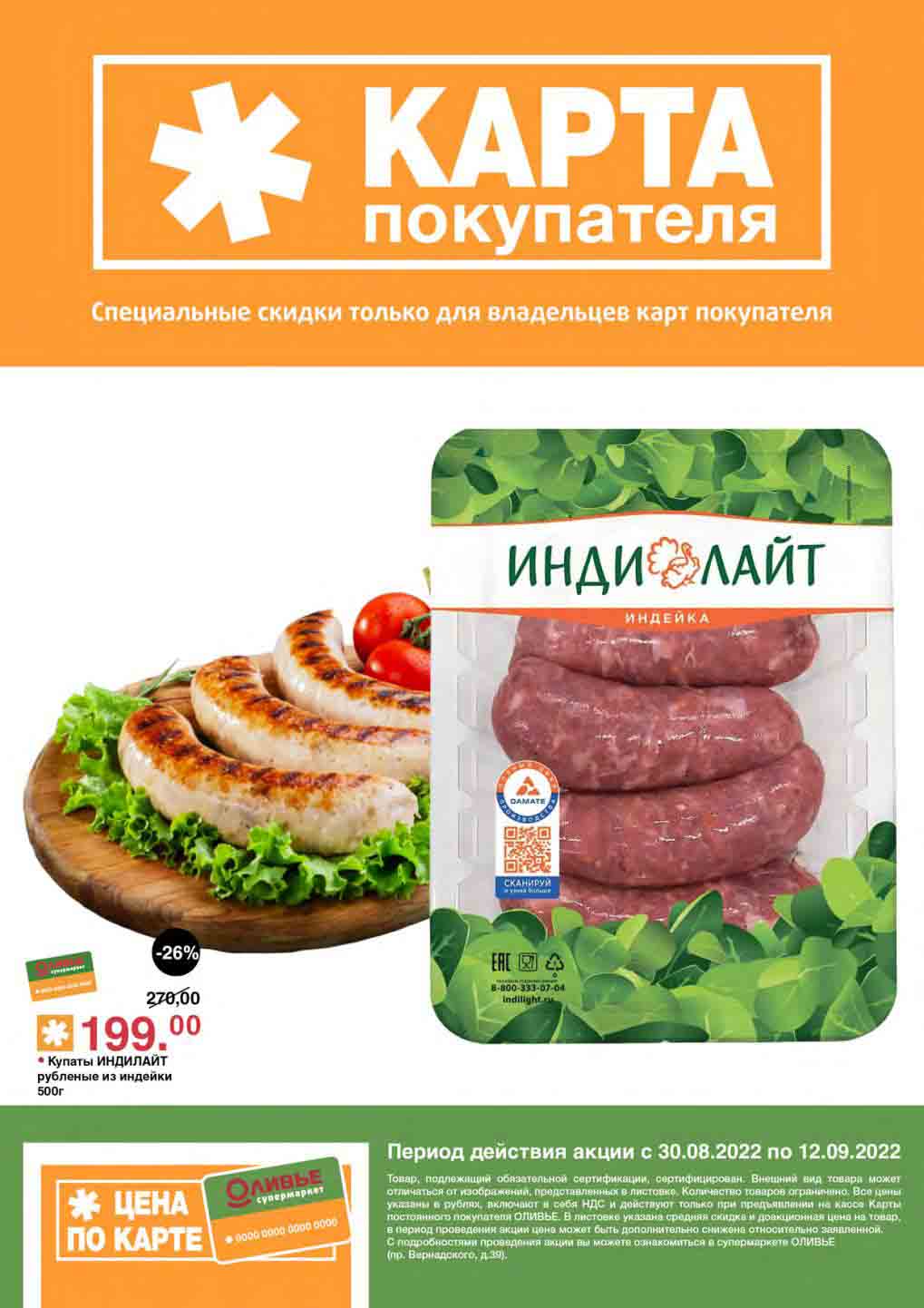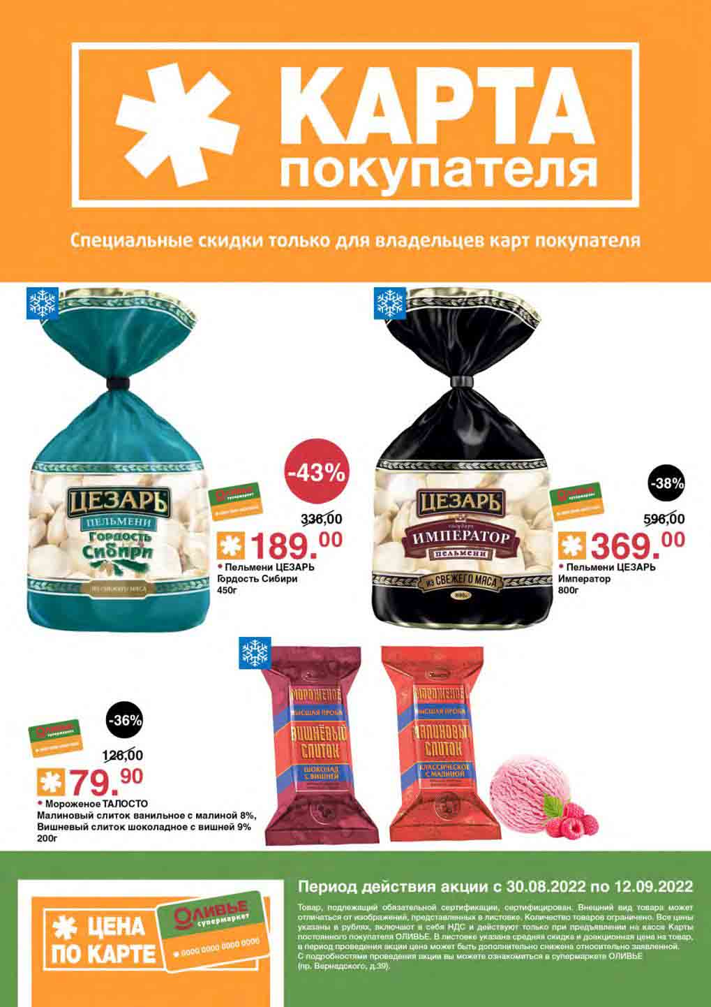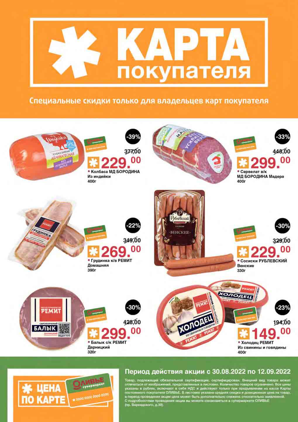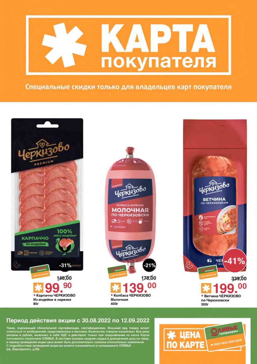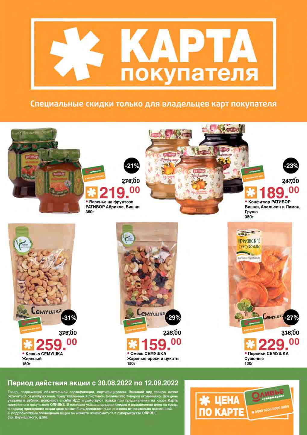 Акции по карте покупателя в супермаркете Оливье с 30 августа — 12 сентября 2022