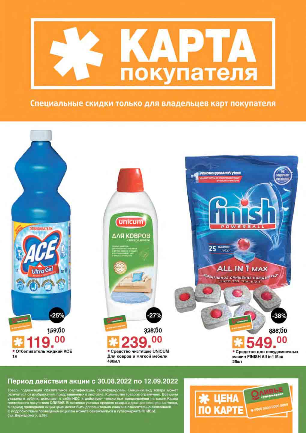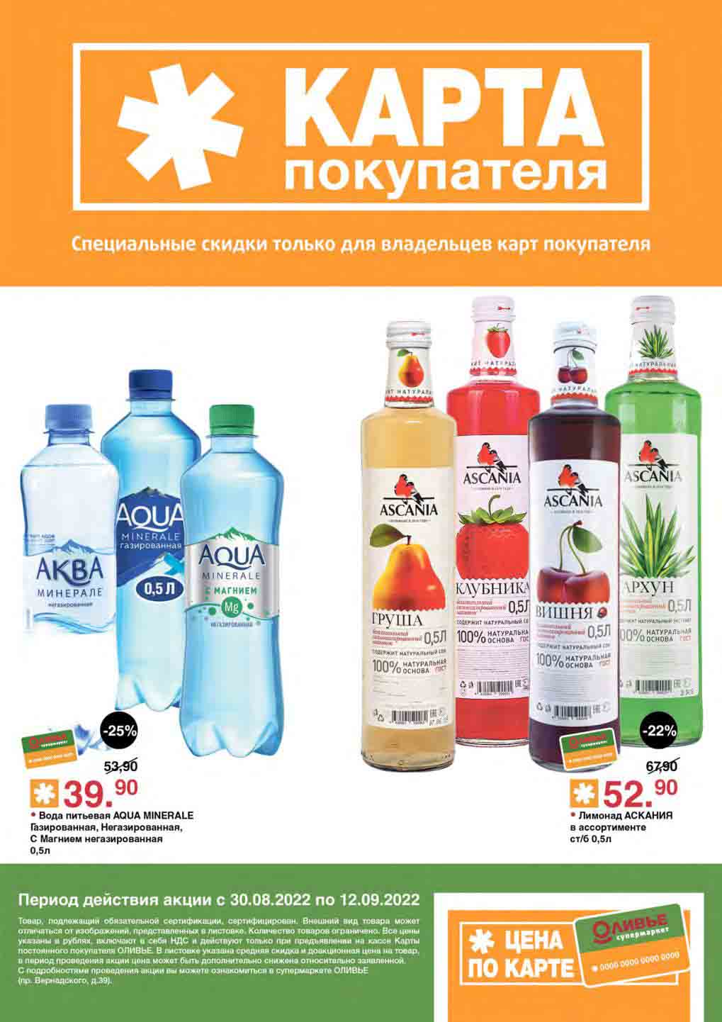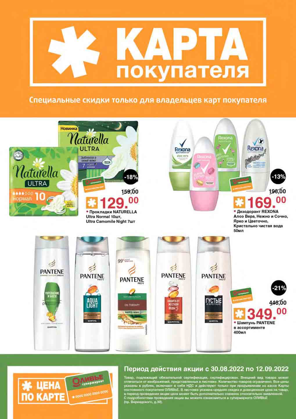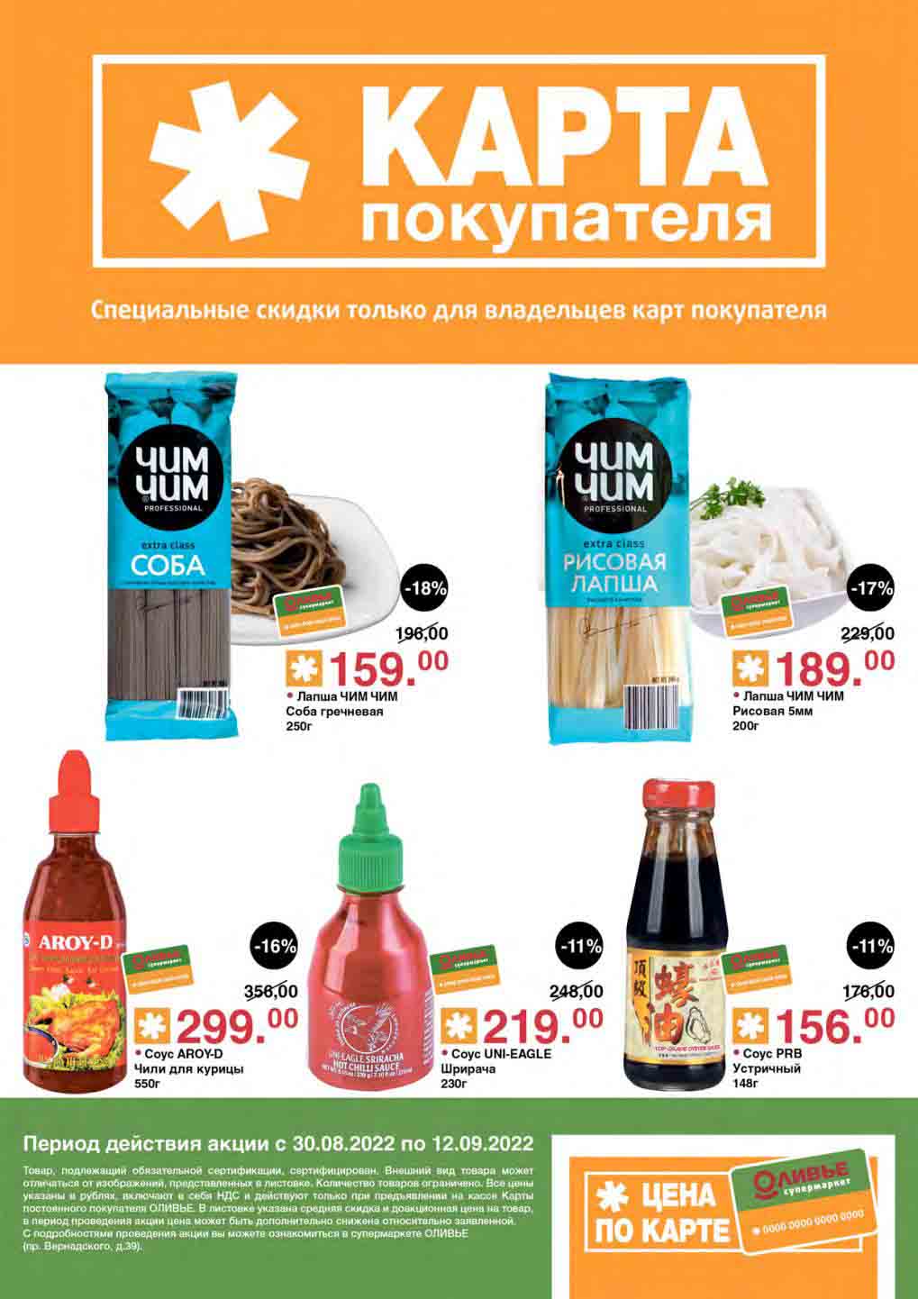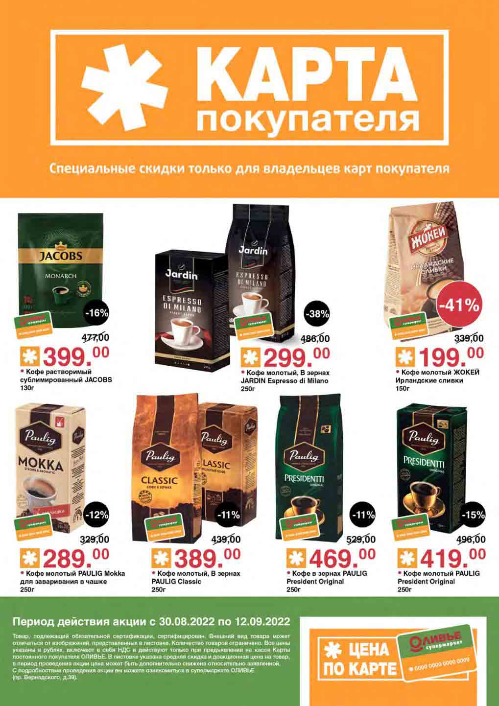 Акции по карте покупателя в супермаркете Оливье с 30 августа — 12 сентября 2022