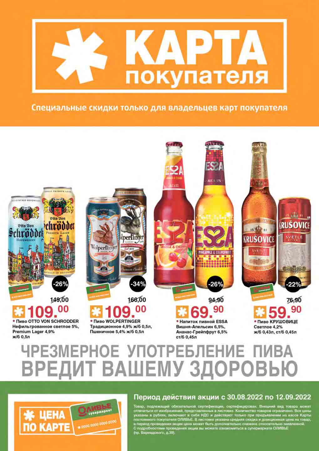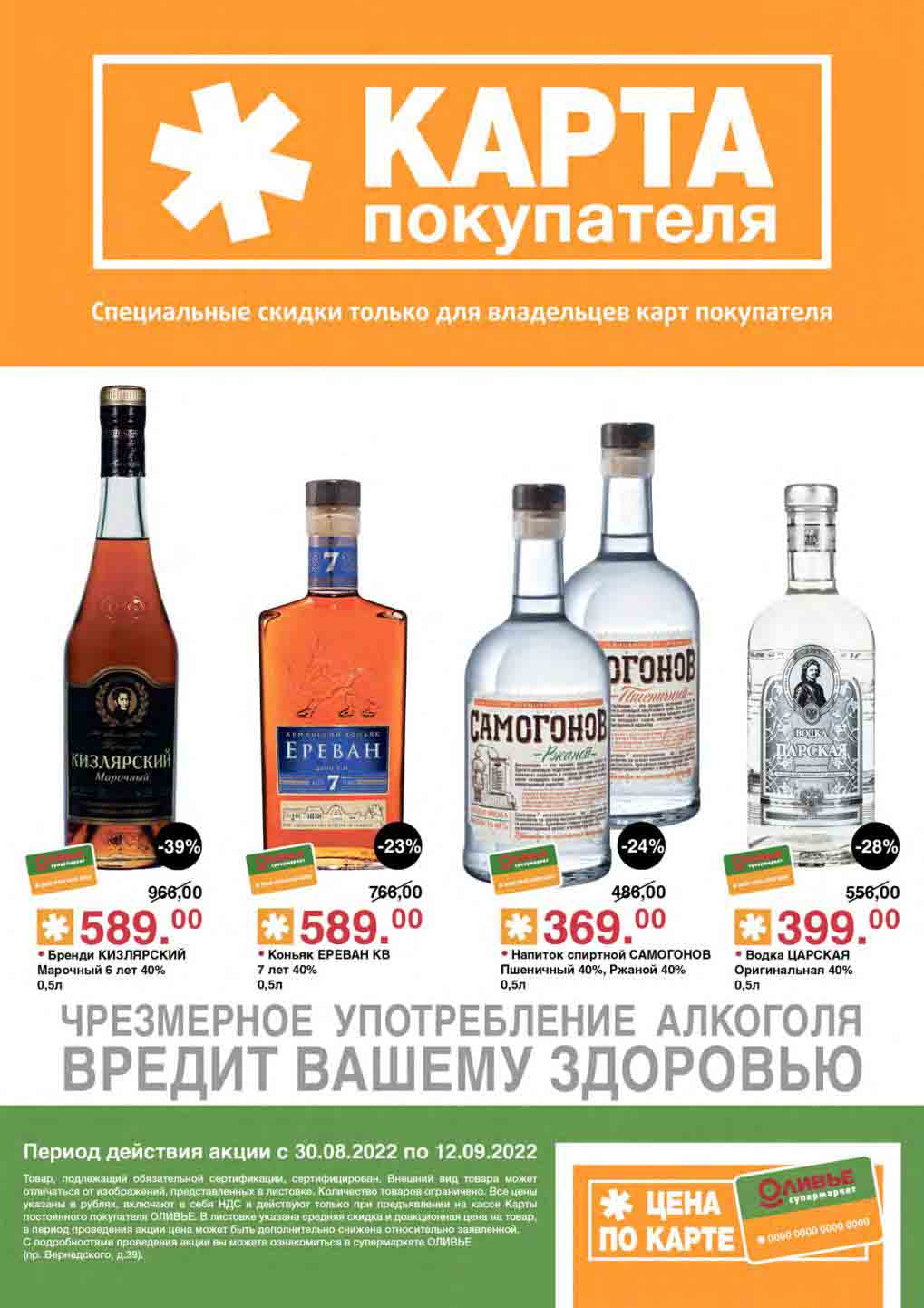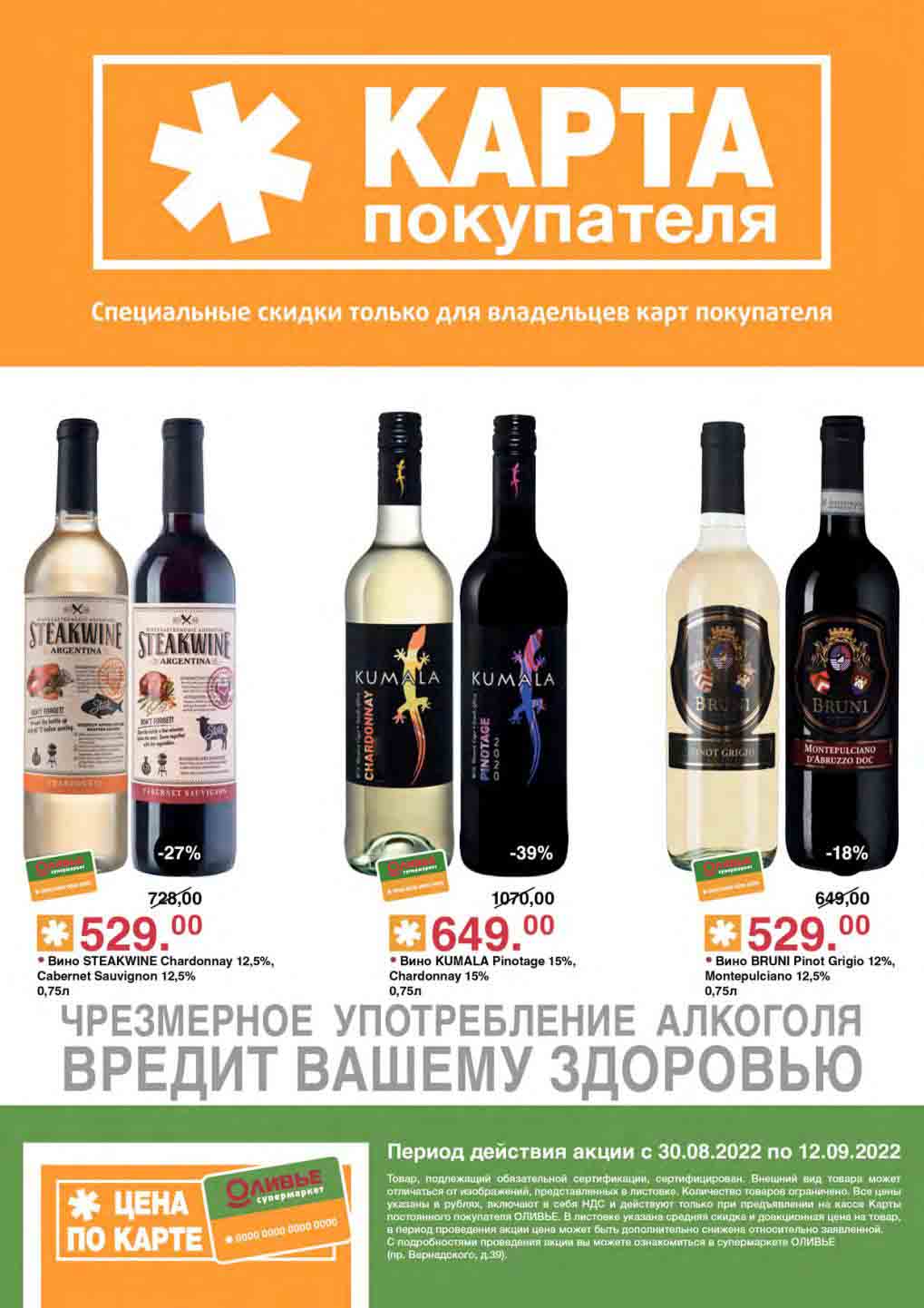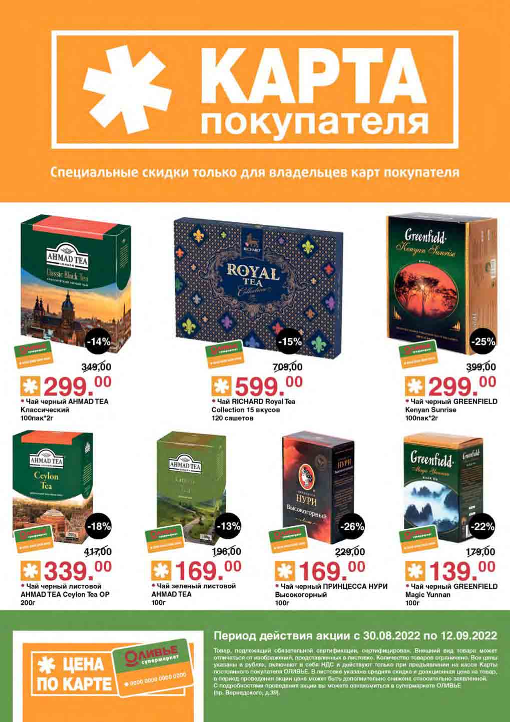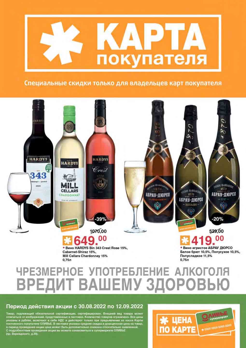 Акции по карте покупателя в супермаркете Оливье с 30 августа — 12 сентября 2022