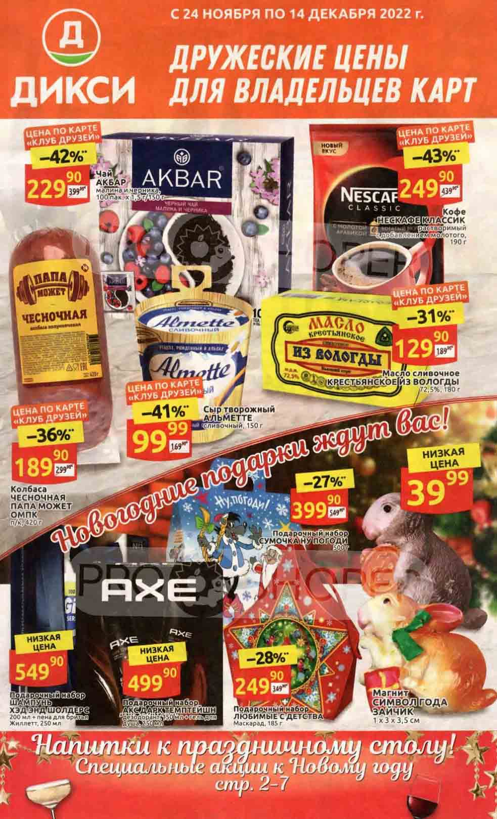 Акции по карте постоянного покупателя в Дикси с 24 ноября — 14 декабря 2022