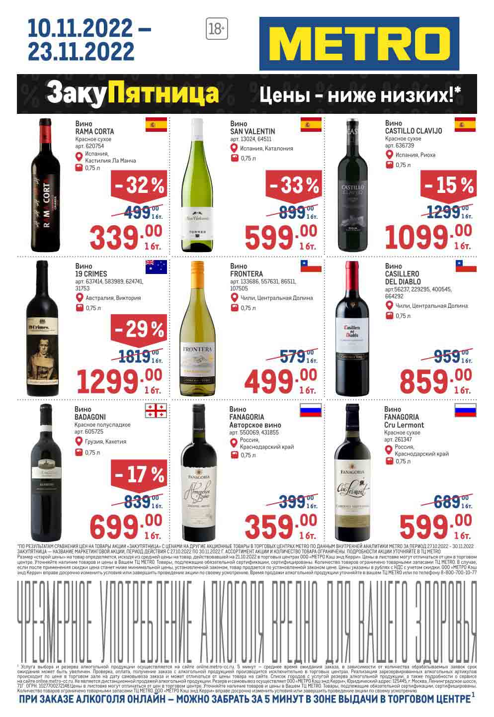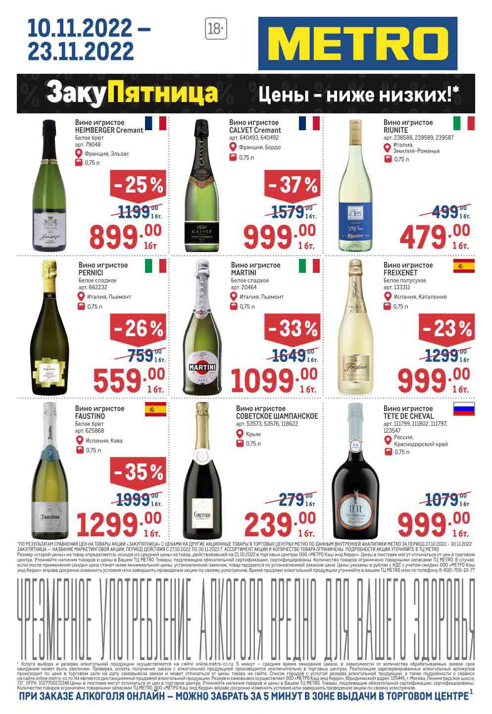 Акции по каталогу Алкоголь в Метро с 10 ноября — 23 ноября 2022