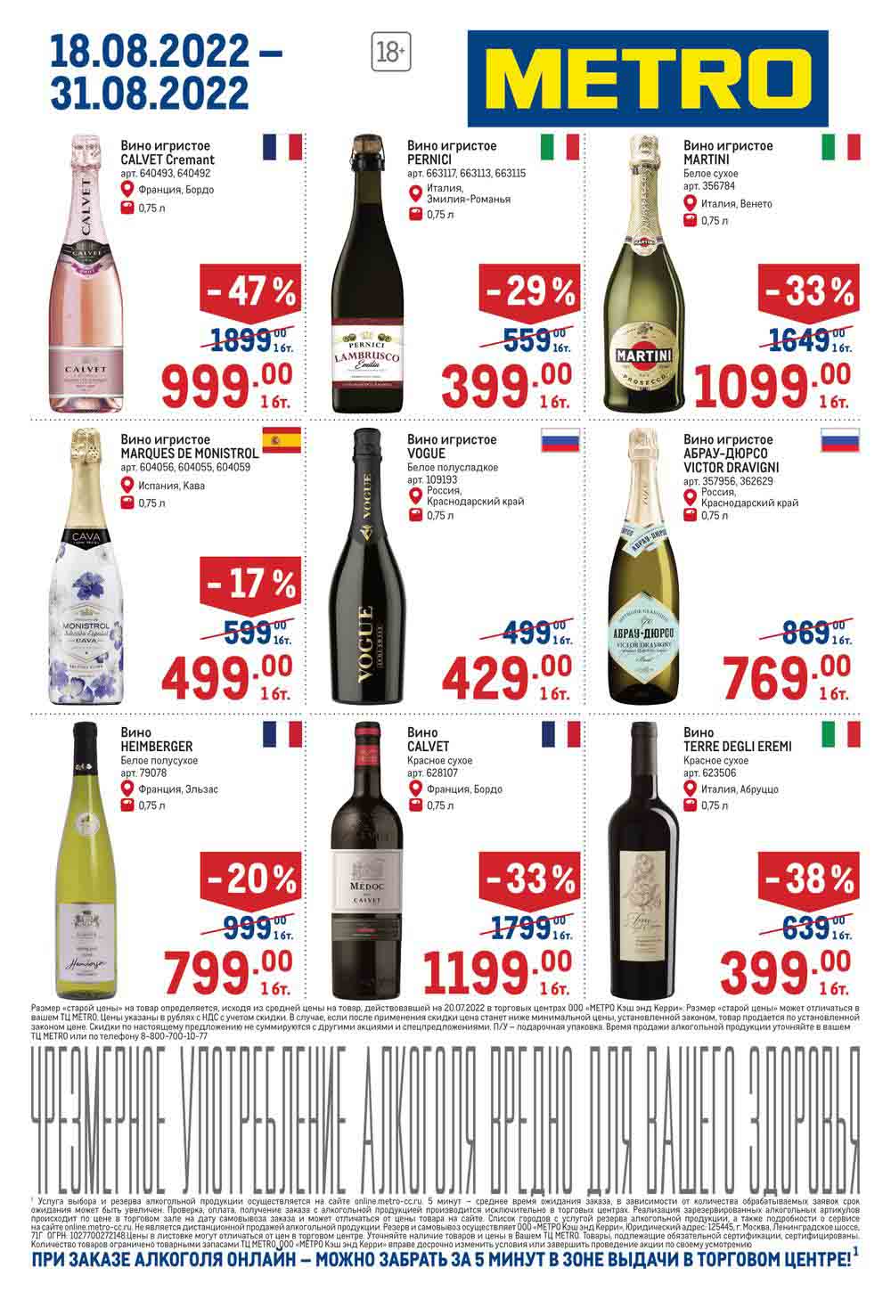 На страницах каталога Метро вы найдете все свои любимые товары, которые сейчас предлагаются в супермаркете. Не пропустите последние специальные предложения и сэкономьте на ваших покупках. В METRO представлен широкий ассортимент товаров, который отличается лучшими скидками и качеством. Цены по акции Метро действуют в городах: Москва, Балашиха, Химки, Подольск, Люберцы, Электросталь, Железнодорожный, Лобня, Ногинск и многих других населенных пунктах Московского региона.