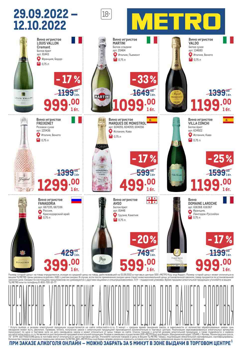 Акции по каталогу Алкоголь в Метро с 29 сентября — 12 октября 2022