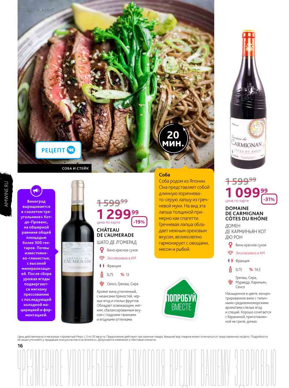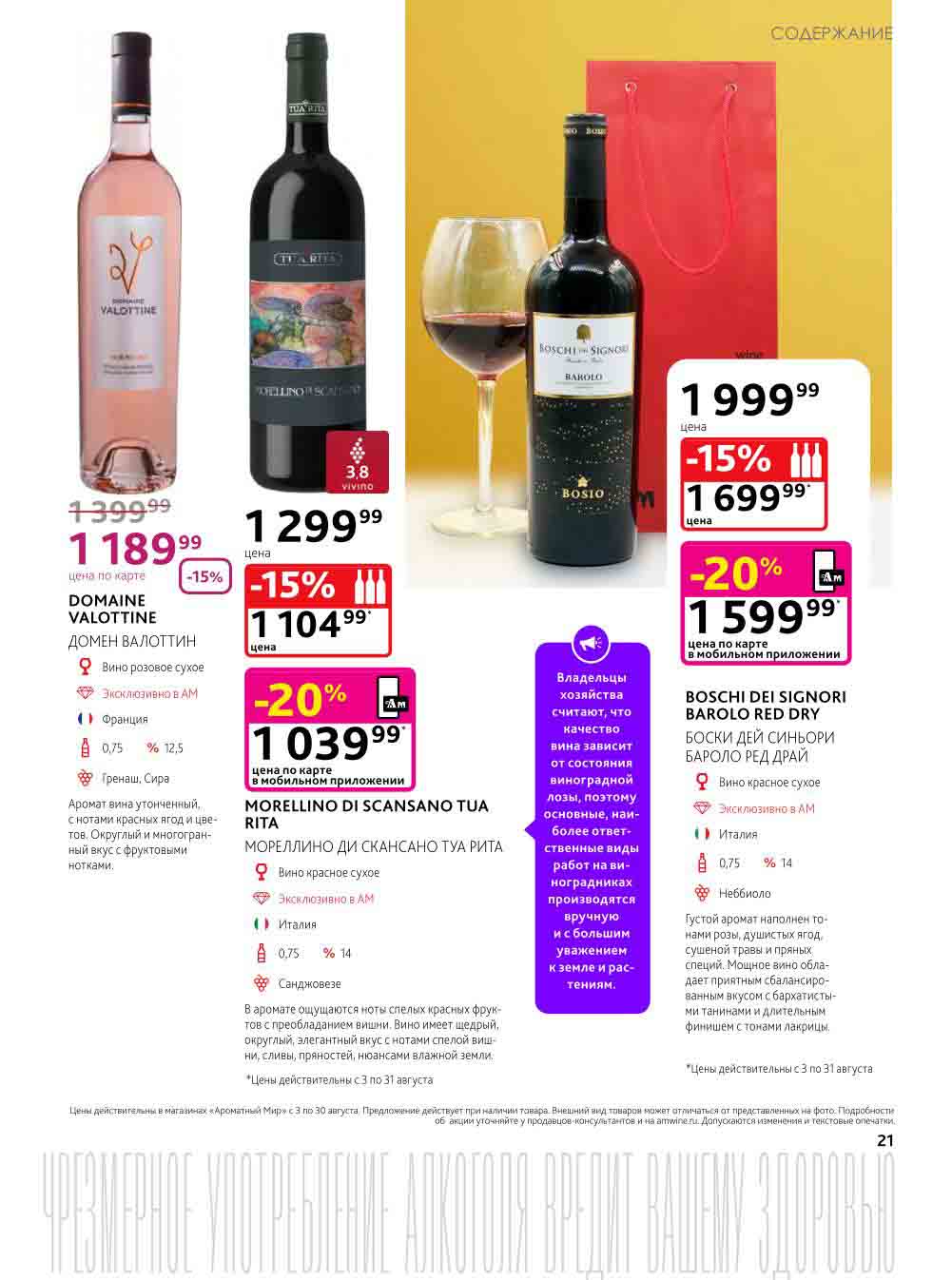 Подробную информацию об правилах, наличии товаров, адресах и скидках узнавайте в магазинахили по тел.: 8 (495) 108-68-68и на сайте: amwine.ru