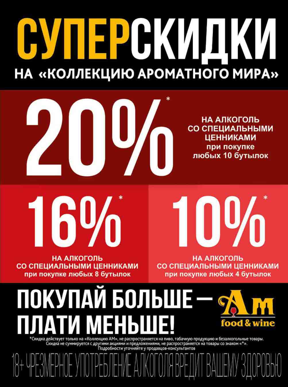 Подробную информацию об правилах, наличии товаров, адресах и скидках узнавайте в магазинахили по тел.: 8 (495) 108-68-68и на сайте: amwine.ru