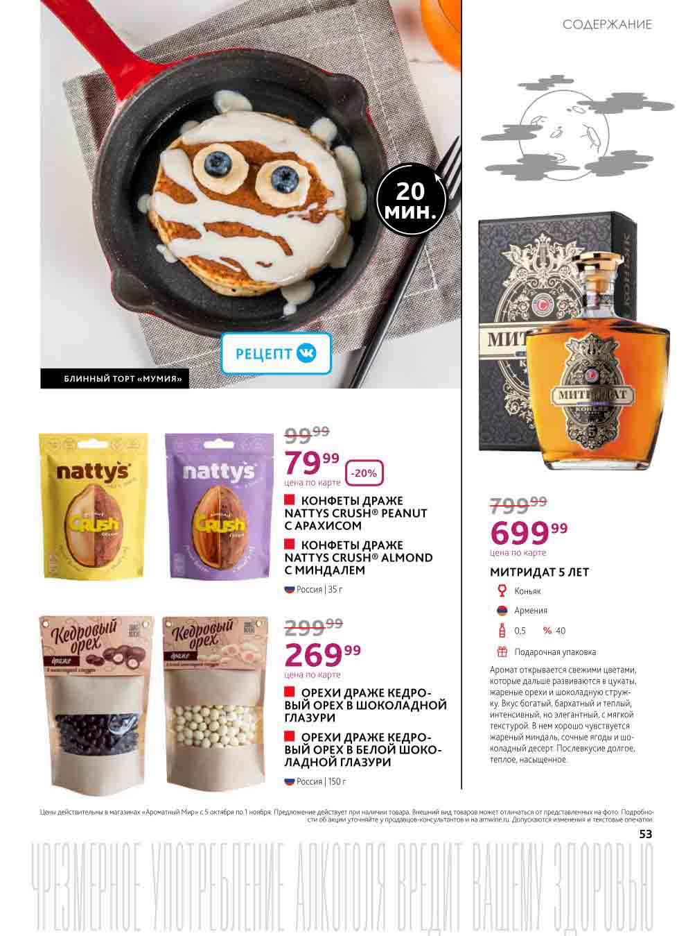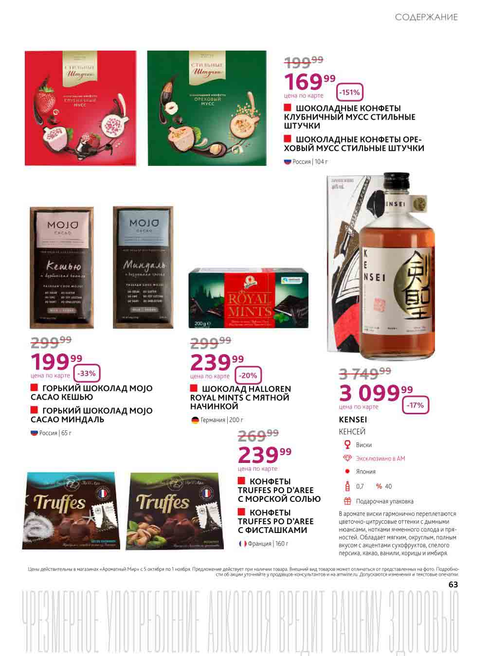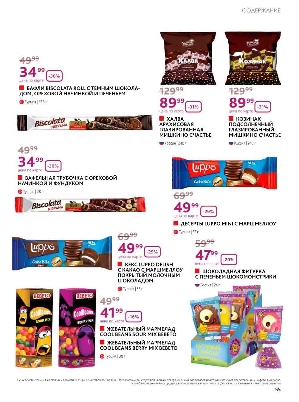 На страницах каталога Ароматный Мир вы найдете все свои любимые товары, которые сейчас предлагаются в супермаркете. Не пропустите последние специальные предложения и сэкономьте на покупках. Цены по акции Ароматный мир действуют в городах: Москва, Зеленоград, Долгопрудный, Люберцы, Химки и многих других населенных пунктах Московского региона.