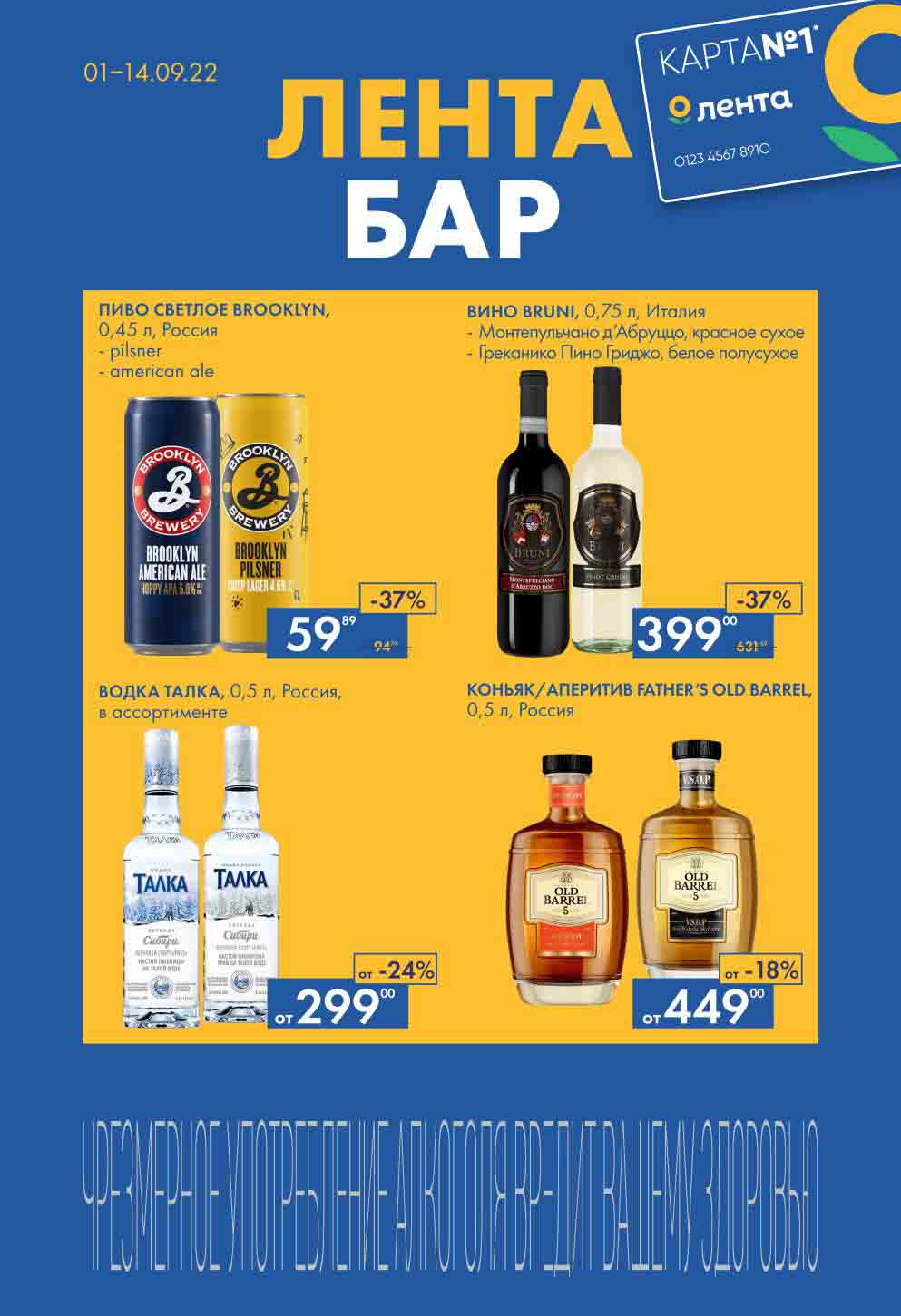 Акции по каталогу Бар гипермаркет Лента с 1 сентября — 14 сентября 2022