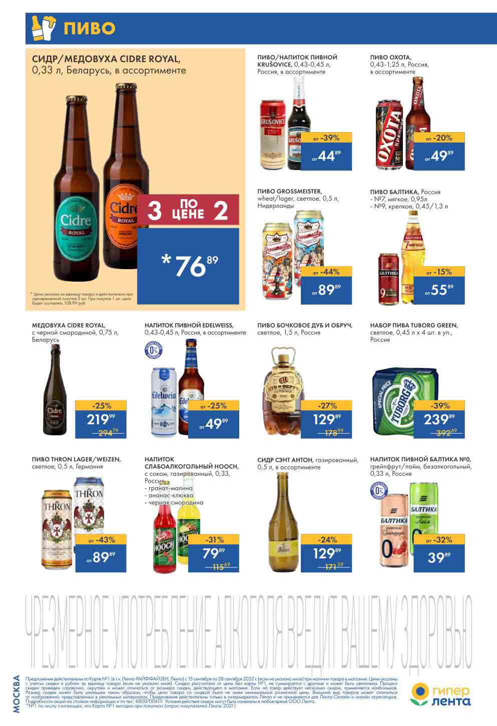 Акции по каталогу Бар гипермаркет Лента с 15 сентября — 28 сентября 2022