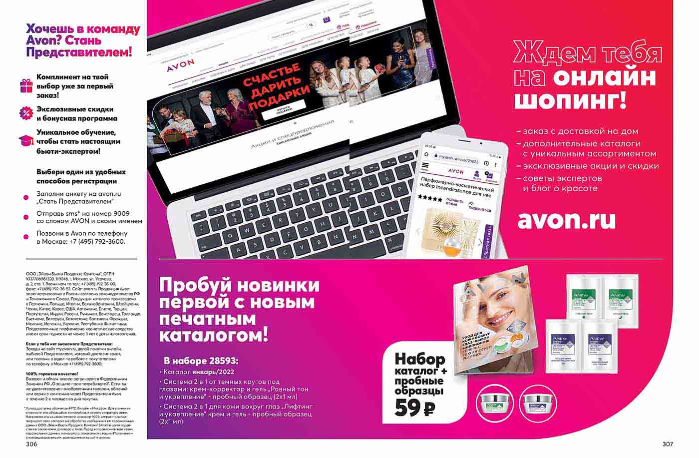 Подробную информацию об правилах, наличии товаров, адресах и скидках узнавайте в магазинахили по тел.:8 (495) 792-36-00и на сайте: my.avon.ru