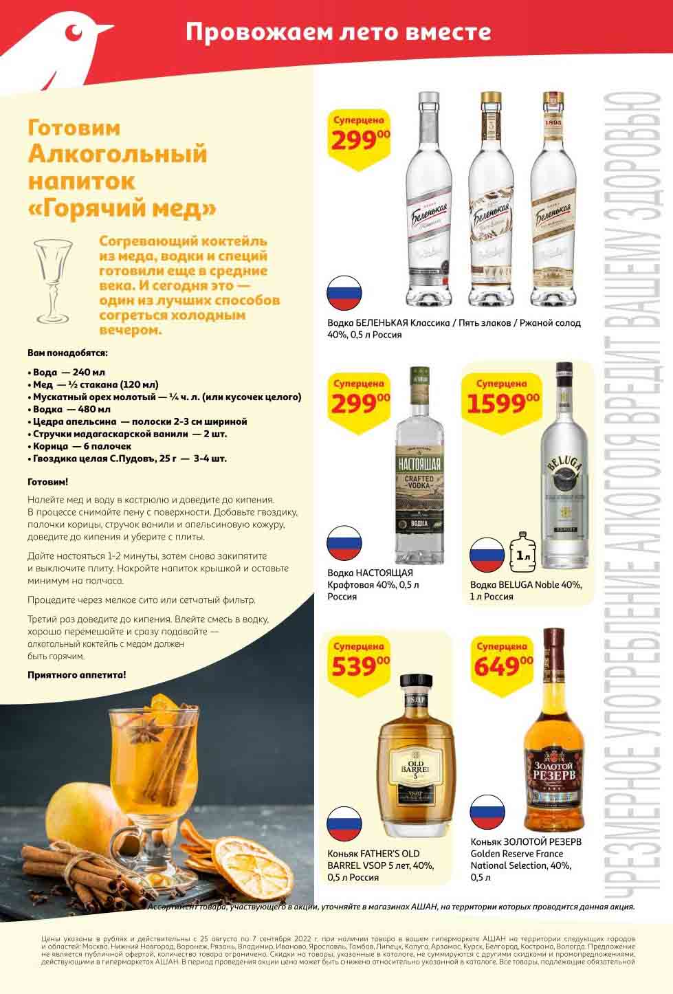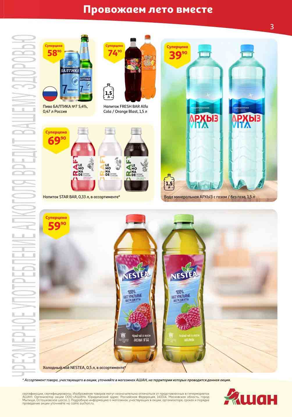 На страницах каталога Ашан вы найдете все свои любимые продукты, которые сейчас предлагаются в супермаркете. Не пропустите последние специальные предложения и сэкономьте на покупках. Предложение действительно при наличии товара на прилавках. Скидки на товары, указанные в каталоге, не суммируются с другими скидками. Изображения товаров могут незначительно отличаться от представленных на полках. Цены по акции Ашан действуют в городах: Москва. Балашиха. Химки. Подольск. Королев. Мытищи. Люберцы. Электросталь. Коломна. Одинцово. Железнодорожный, Серпухов, Орехово-Зуево. Красногорск, Щелково, Сергиев Посад, Пушкино. Жуковский, Ногинск, Раменское и многих других населенных пунктах Московского региона.