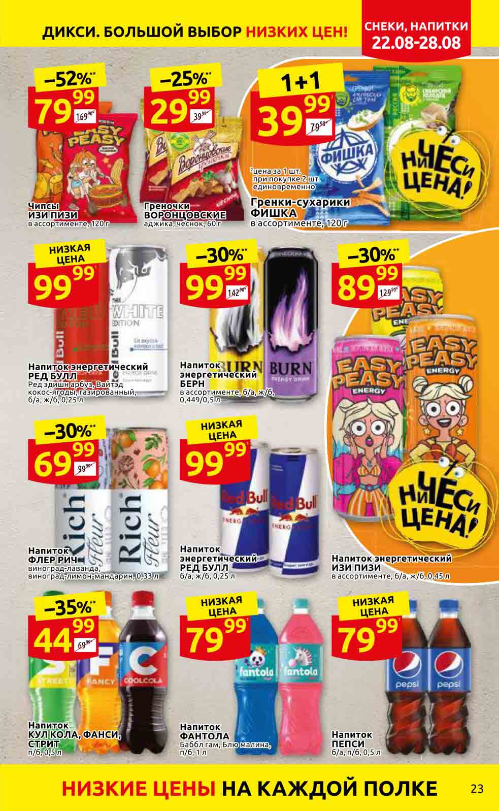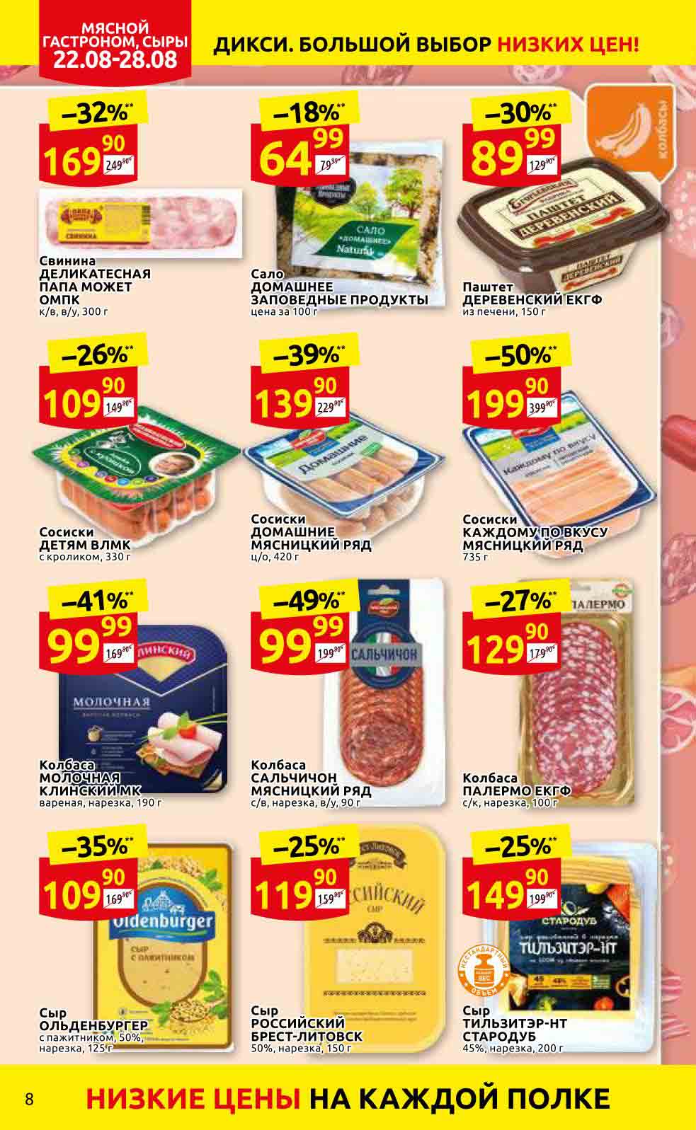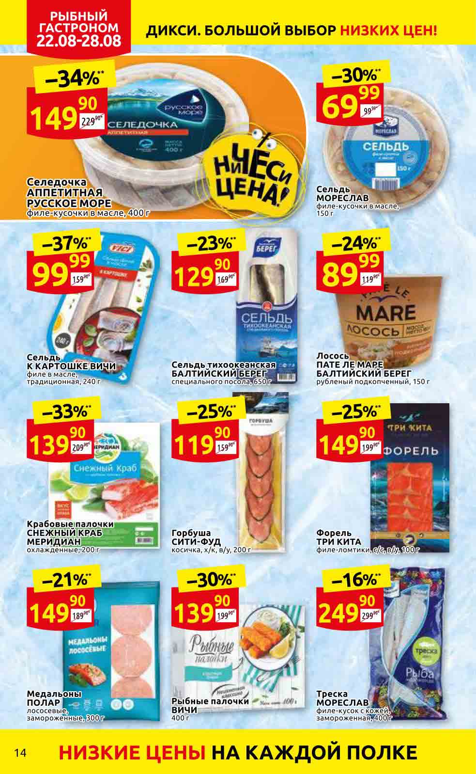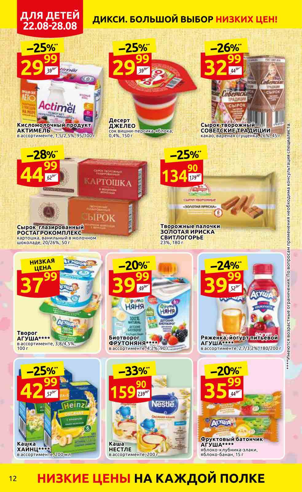 Смотрите еженедельный, новый каталог Дикси и не переплачивайте уже сегодня вас ждут ряд интересных акций и привлекательных скидок. Обо всем этом вы сможете узнать посмотрев новый каталог Дикси на нашем сайте. На страницах каталога Дикси вы найдете все свои любимые продукты, которые сейчас предлагаются в супермаркете. Предложения, представленные в настоящем буклете, действительны в указанный срок проведения. Стоимость указана за единицу товара (за исключением весового, цена которого определена за конкретный вес, указанный в настоящем буклете). В акции участвуют позиции, изображение которых размещено в каталоге. Цены в супермаркетах могут быть дополнительно снижены по решению руководства сети. Цены помеченные «*», обозначают среднюю цену данной позиции по сети. Количество товара ограничено и может не везде присутствовать. Цены по акции Дикси действуют в городах: Москва, Балашиха, Химки, Подольск, Королев, Мытищи, Люберцы, Электросталь, Коломна, Одинцово, Железнодорожный, Серпухов, Орехово-Зуево, Красногорск, Щелково, Сергиев Посад, Пушкино, Жуковский, Ногинск, Раменское, Клин, Воскресенск, Домодедово и многих других населенных пунктах Московского региона.