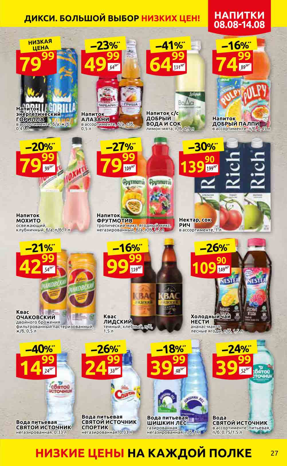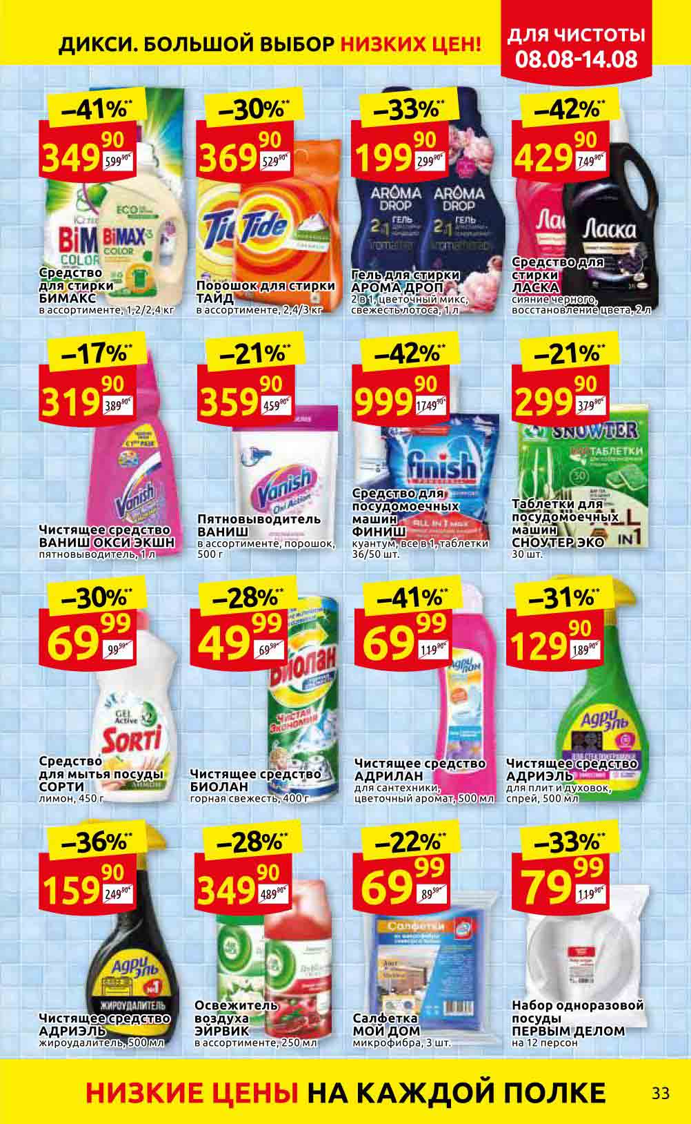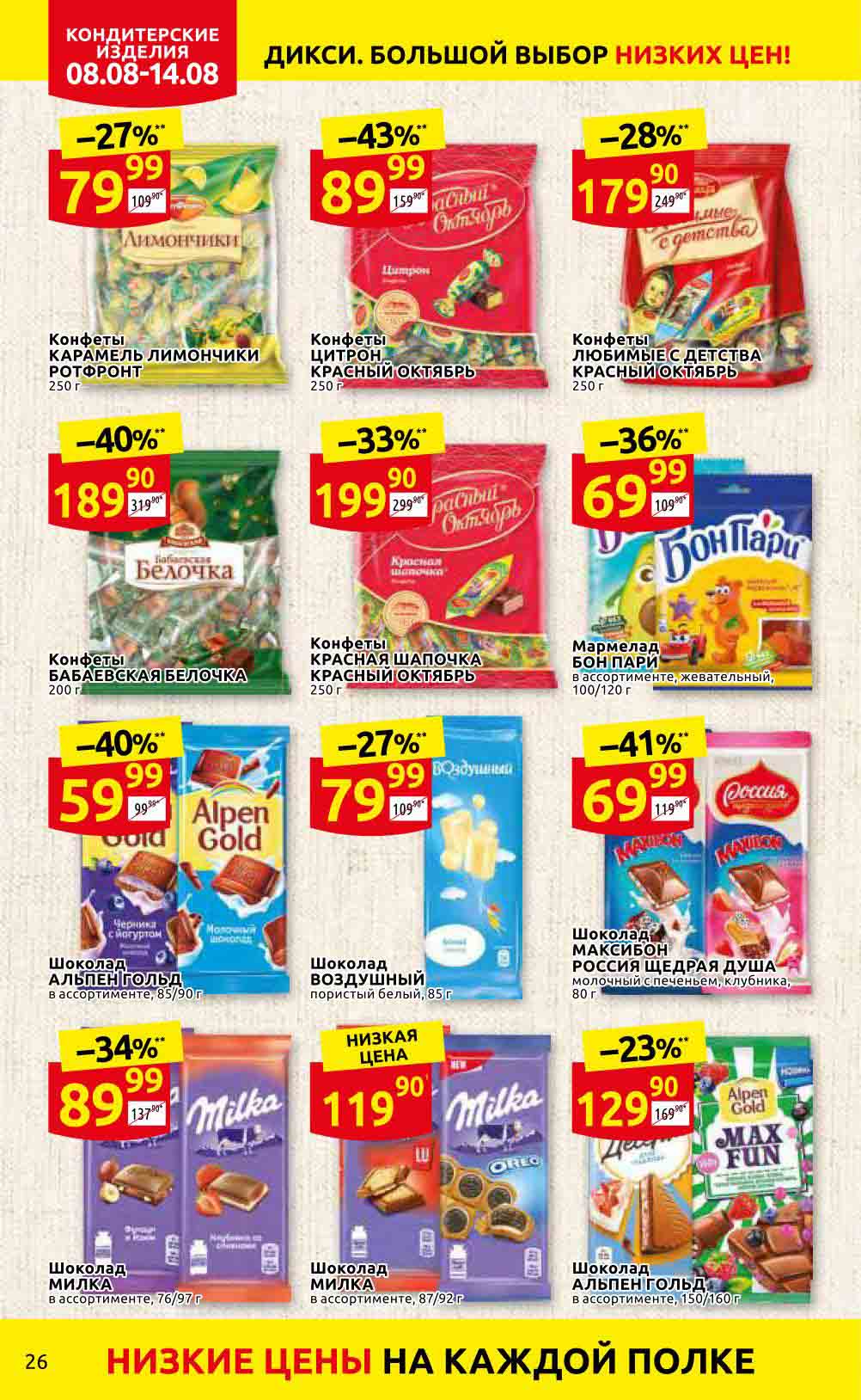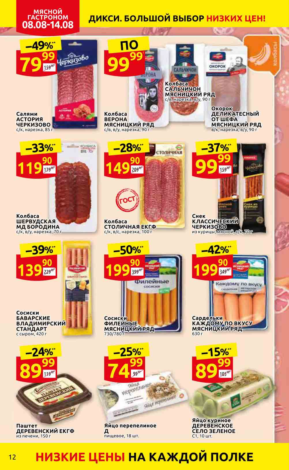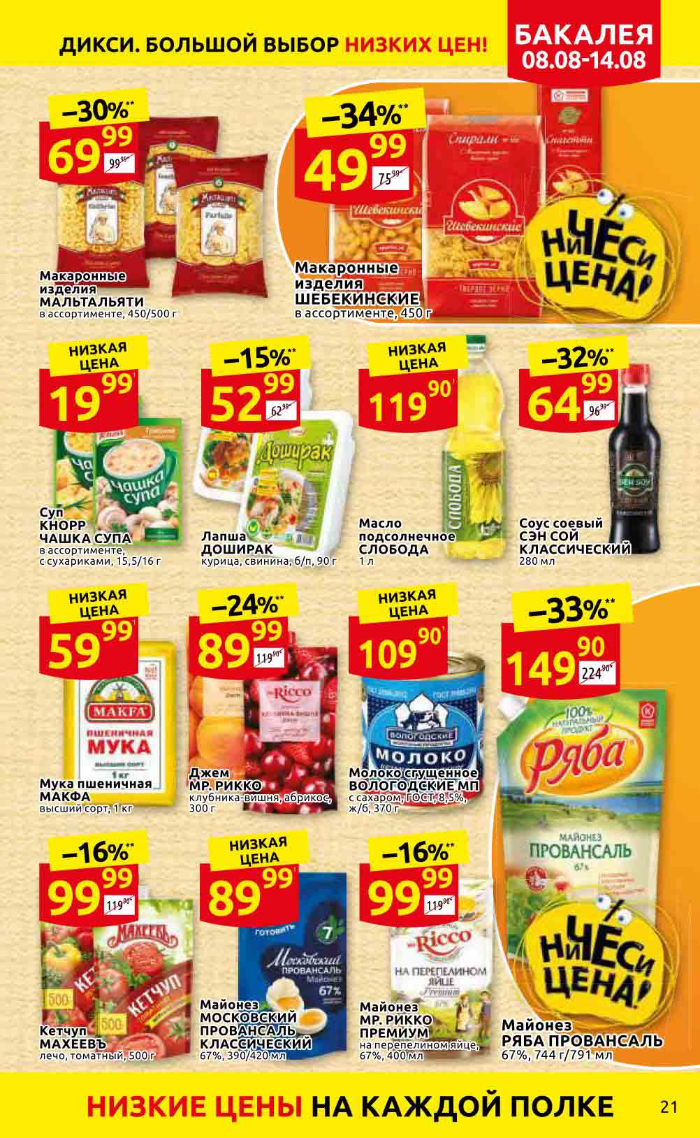 Смотрите еженедельный, новый каталог Дикси и не переплачивайте уже сегодня вас ждут ряд интересных акций и привлекательных скидок. Обо всем этом вы сможете узнать посмотрев новый каталог Дикси на нашем сайте. На страницах каталога Дикси вы найдете все свои любимые продукты, которые сейчас предлагаются в супермаркете. Предложения, представленные в настоящем буклете, действительны в указанный срок проведения. Стоимость указана за единицу товара (за исключением весового, цена которого определена за конкретный вес, указанный в настоящем буклете). В акции участвуют позиции, изображение которых размещено в каталоге. Цены в супермаркетах могут быть дополнительно снижены по решению руководства сети. Цены помеченные «*», обозначают среднюю цену данной позиции по сети. Количество товара ограничено и может не везде присутствовать. Цены по акции Дикси действуют в городах: Москва, Балашиха, Химки, Подольск, Королев, Мытищи, Люберцы, Электросталь, Коломна, Одинцово, Железнодорожный, Серпухов, Орехово-Зуево, Красногорск, Щелково, Сергиев Посад, Пушкино, Жуковский, Ногинск, Раменское, Клин, Воскресенск, Домодедово и многих других населенных пунктах Московского региона.