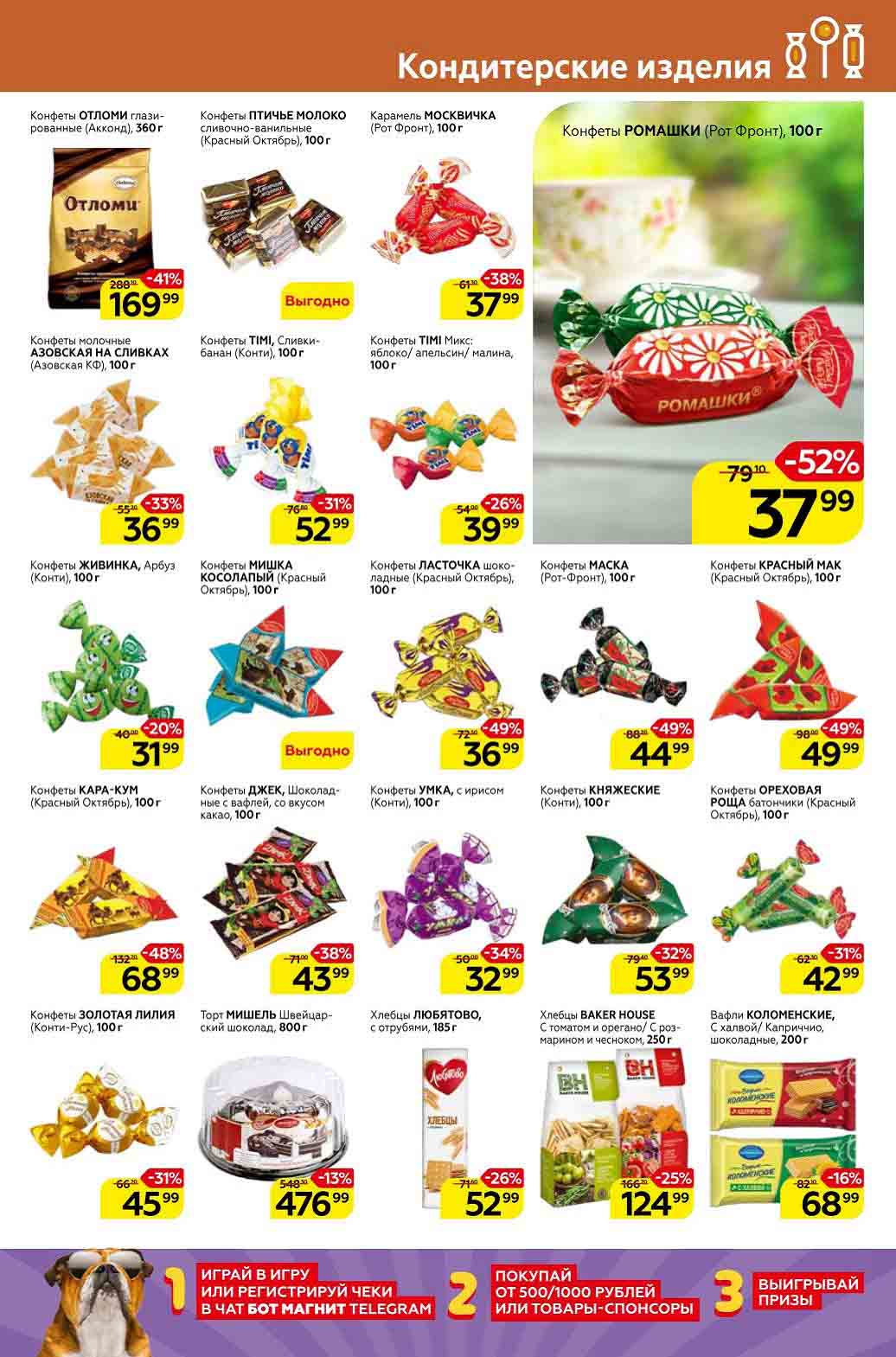 Смотрите еженедельный, новый каталог Магнит и не переплачивайте. Сегодня вас ждут ряд интересных предложений, привлекательных цен, акций и скидок. На страницах каталога Магнит вы найдете все свои любимые товары, которые сейчас предлагаются в супермаркете. Количество товара ограничено и действительно при наличии. Предложение «Цена по карте» действует при предъявлении на кассе "карты лояльности", до оплаты. До-акционные цены и размер скидки в каталоге указаны средние по сети. Цены по акции Магнит действуют в городах: Москва, Балашиха, Химки, Подольск, Королев, Мытищи, Люберцы, Электросталь, Коломна, Одинцово, Железнодорожный, Серпухов, Орехово-Зуево, Красногорск, Щелково, Сергиев Посад, Пушкино, Жуковский, Ногинск, Раменское и многих других населенных пунктах Московского региона.