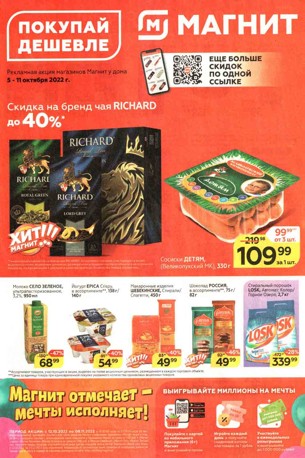 Акции по каталогу в супермаркете Магнит (РЦ Коломна) с 5 октября — 11 октября 2022