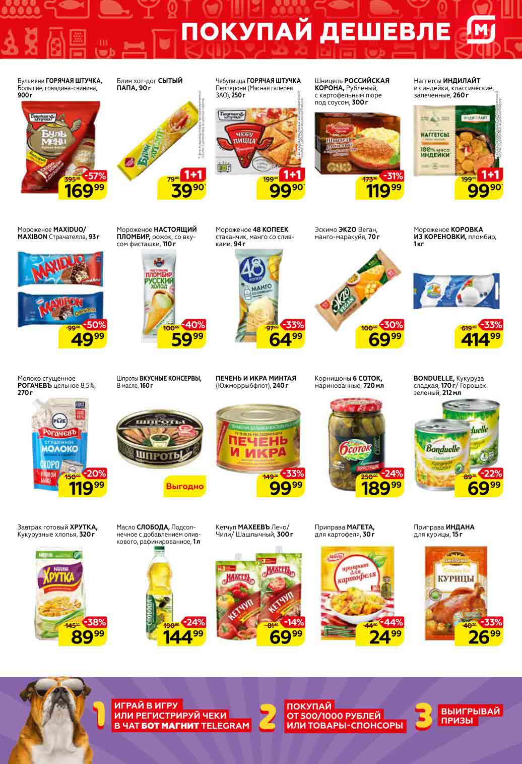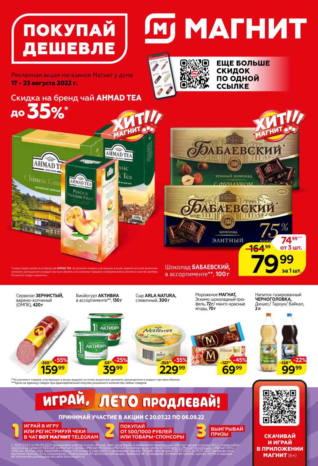 Смотрите еженедельный, новый каталог Магнит и не переплачивайте. Сегодня вас ждут ряд интересных предложений, привлекательных цен, акций и скидок. На страницах каталога Магнит вы найдете все свои любимые товары, которые сейчас предлагаются в супермаркете. Количество товара ограничено и действительно при наличии. Предложение «Цена по карте» действует при предъявлении на кассе "карты лояльности", до оплаты. До-акционные цены и размер скидки в каталоге указаны средние по сети. Цены по акции Магнит действуют в городах: Москва, Балашиха, Химки, Подольск, Королев, Мытищи, Люберцы, Электросталь, Коломна, Одинцово, Железнодорожный, Серпухов, Орехово-Зуево, Красногорск, Щелково, Сергиев Посад, Пушкино, Жуковский, Ногинск, Раменское и многих других населенных пунктах Московского региона.
