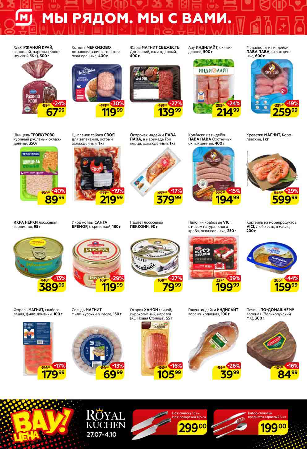 Смотрите еженедельный, новый каталог Магнит и не переплачивайте. Сегодня вас ждут ряд интересных предложений, привлекательных цен, акций и скидок. На страницах каталога Магнит вы найдете все свои любимые товары, которые сейчас предлагаются в супермаркете. Количество товара ограничено и действительно при наличии. Предложение «Цена по карте» действует при предъявлении на кассе "карты лояльности", до оплаты. До-акционные цены и размер скидки в каталоге указаны средние по сети. Цены по акции Магнит действуют в городах: Москва, Балашиха, Химки, Подольск, Королев, Мытищи, Люберцы, Электросталь, Коломна, Одинцово, Железнодорожный, Серпухов, Орехово-Зуево, Красногорск, Щелково, Сергиев Посад, Пушкино, Жуковский, Ногинск, Раменское и многих других населенных пунктах Московского региона.