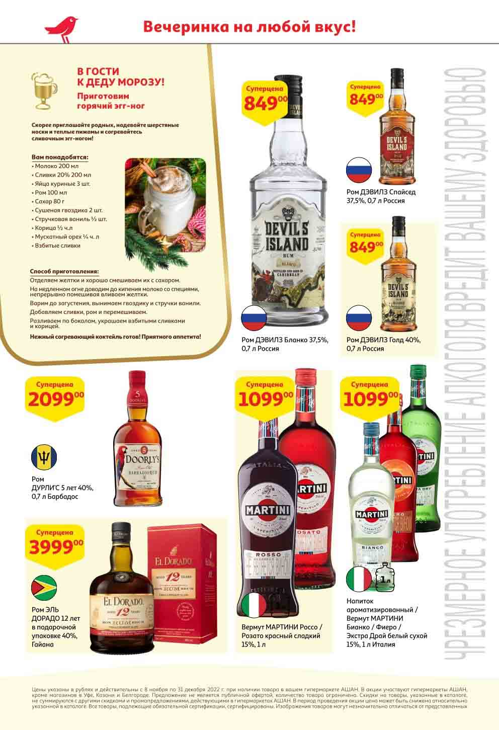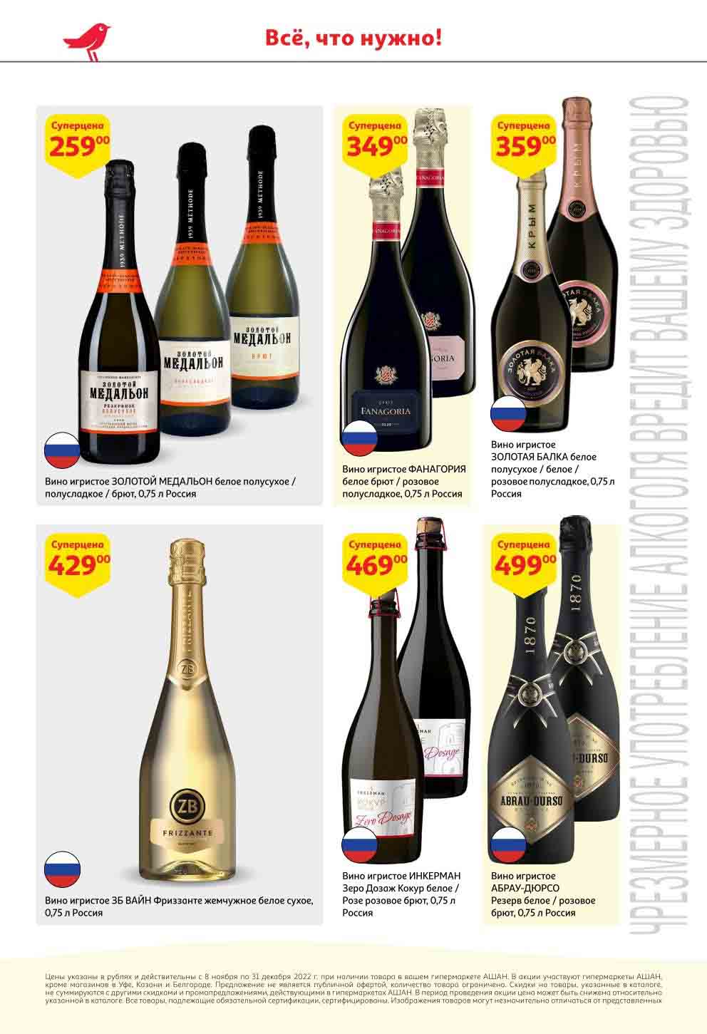 Цены указаны в рублях и действительны с 8 ноября по 31 декабря 2022 г. при наличии товара в вашем гипермаркете АШАН. Количество товара ограничено. Скидки на товары, указанные в каталоге, не суммируются с другими скидками и промопредложениями, действующими в гипермаркетах АШАН. В период проведения акции цена может быть снижена относительно указанной в каталоге. Все товары, подлежащие обязательной сертификации, сертифицированы. Изображения товаров могут незначительно отличаться от представленных в гипермаркетах. Подробную информацию о магазинах, участвующих в акции, организаторе, сроках и порядке проведения акции уточняйте на сайте auchan.ru.