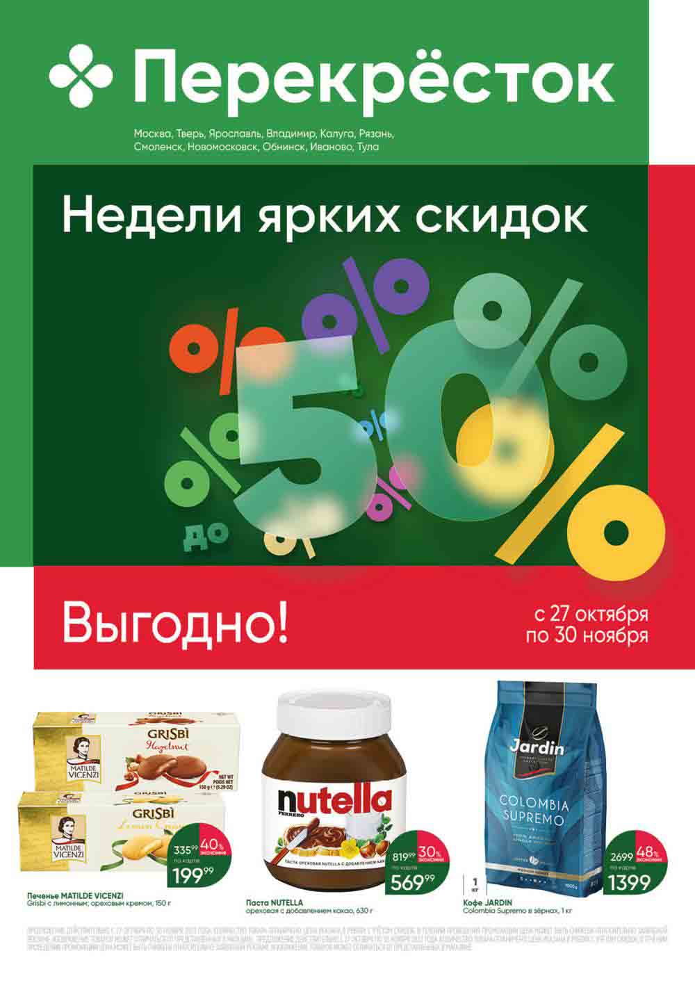 Смотрите еженедельный, новый каталог Перекресток и не переплачивайте. На страницах каталога Перекресток вы найдете все свои любимые товары, которые сейчас предлагаются в супермаркете. Не пропустите последние специальные предложения и сэкономьте на покупках. Изображение товара в каталоге может отличаться от представленных на полках. Количество товара ограничено и есть не во всех супермаркетах. Дополнительная скидка на товар указанный в каталоге не распространяется. Цены по акции Перекресток действуют в городах: Москва, Балашиха, Химки, Подольск, Королев, Мытищи, Люберцы, Электросталь, Коломна, Одинцово, Железнодорожный, Серпухов, Орехово-Зуево, Красногорск, Щелково, Сергиев Посад, Пушкино, Жуковский, Ногинск, Раменское и многих других населенных пунктах Московского региона.