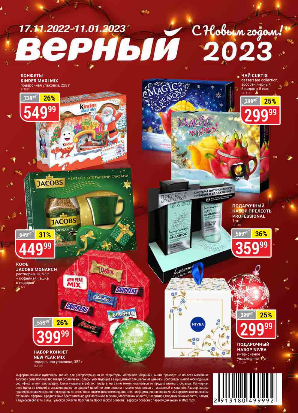 Акции по Новогоднему каталогу магазина Верный с 17 ноября — 11 января 2023