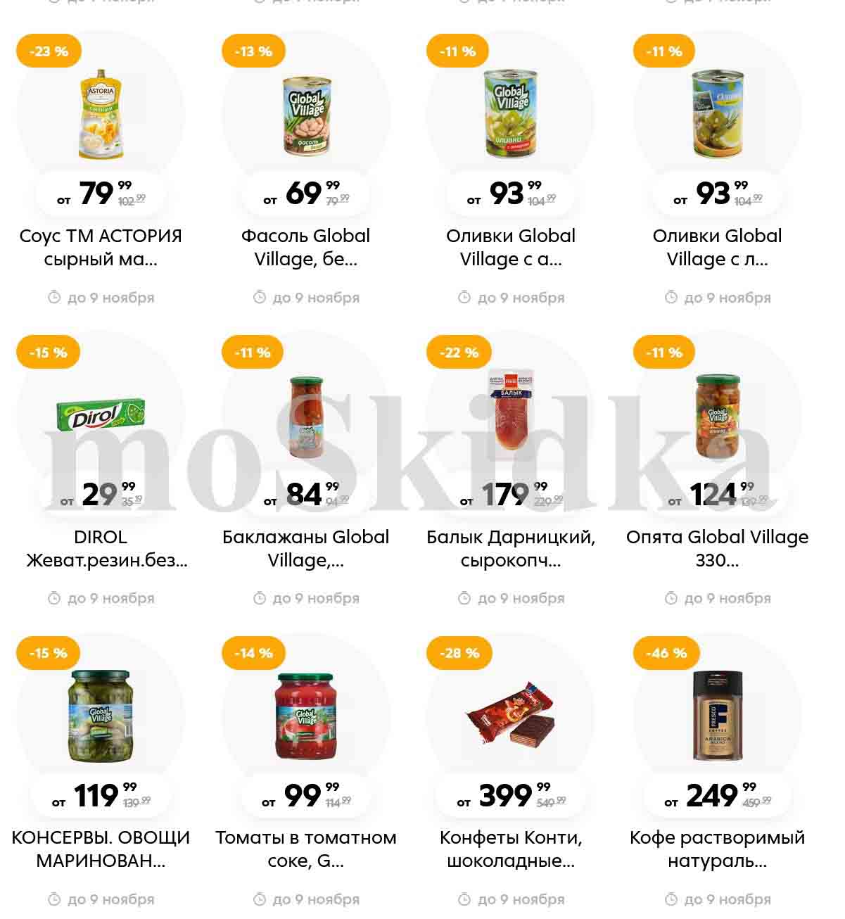 Каталог акций «Пятерочка» — это не просто скидки, это возможность сэкономить, не потеряв при этом качества продуктов. Цены по акции Пятерочка действуют в городах: Москва, Балашиха, Химки, Подольск, Королев, Мытищи, Люберцы, Электросталь, Коломна, Одинцово, Железнодорожный, Серпухов, Орехово-Зуево, Красногорск, Щелково, Сергиев Посад, Пушкино, Жуковский, Ногинск, Раменское, Клин, Воскресенск, Домодедово и многих других населенных пунктах Московского региона. Изображение акционных товаров может отличаться от представленных на полках. В течение проведения промо цена из буклета может быть дополнительно снижена.
