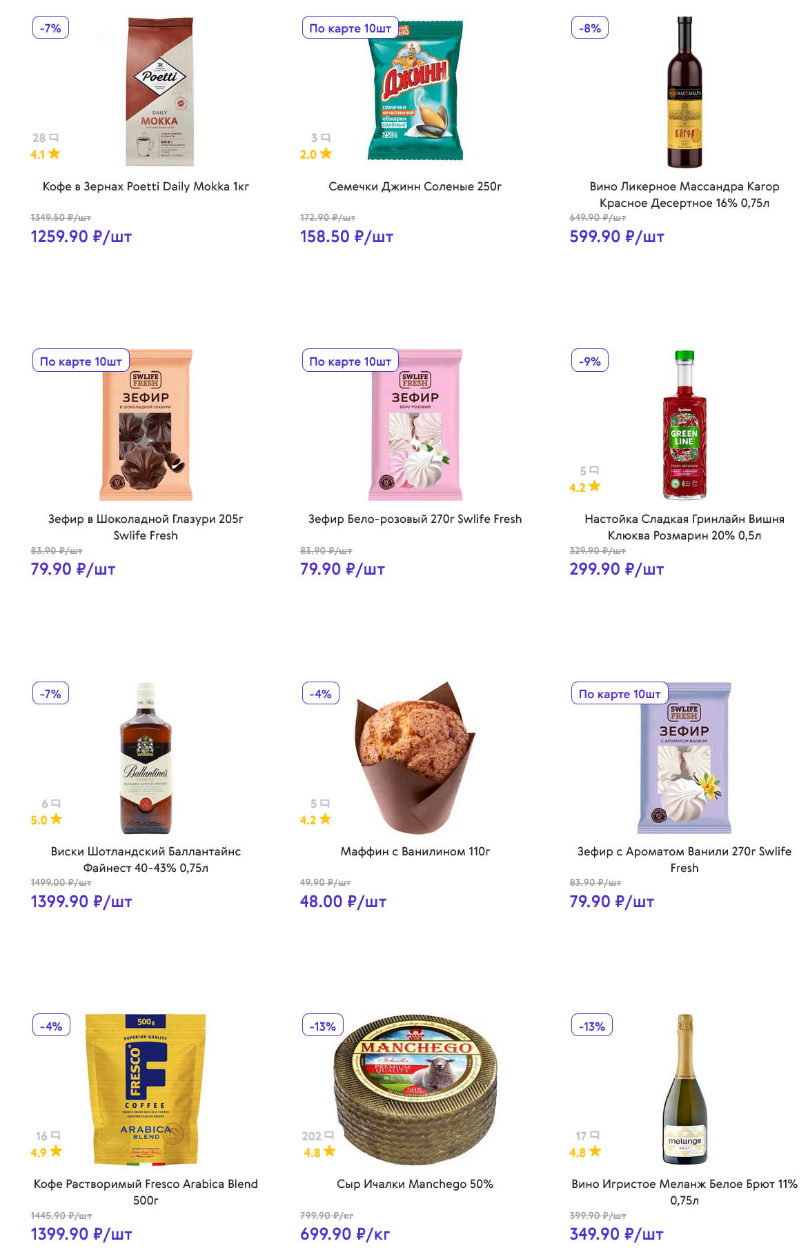 Ограничения: • Количество товаров по акции ограничено • Популярные позиции быстро заканчиваются • Некоторые товары — по карте (указано в каталоге)