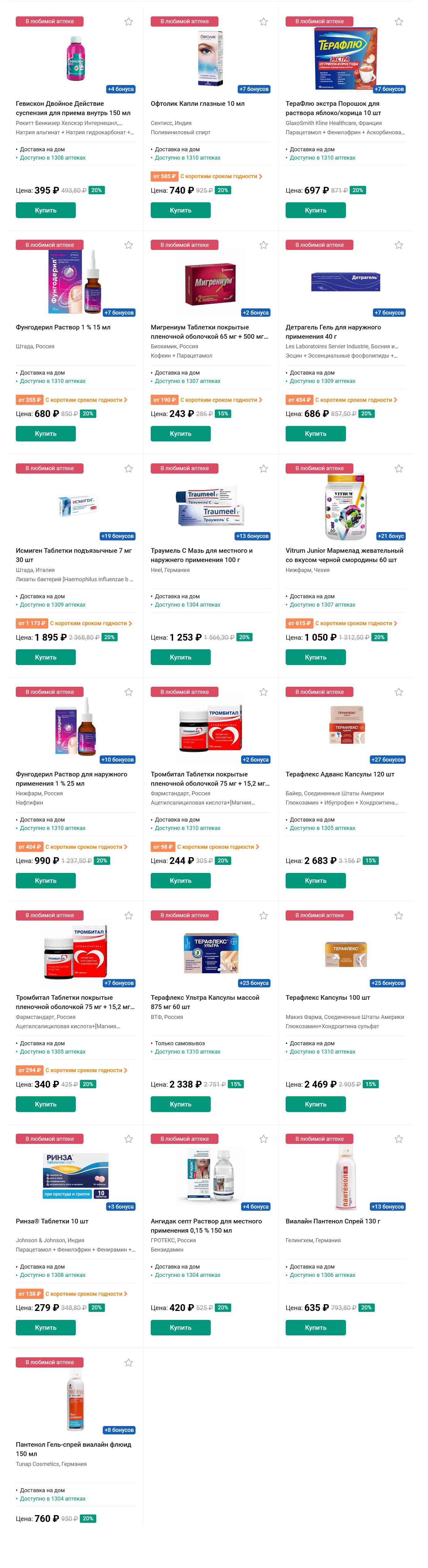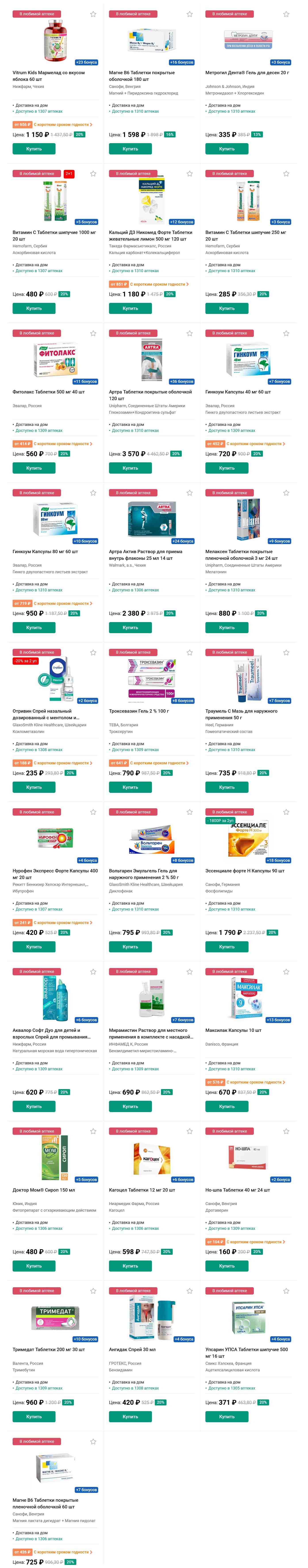 В акционном буклете предложены выгодные цены на различные товары, такие как витамины, продукты стоматологической помощи, лекарства для обезболивания, добавки для здоровья суставов, сиропы от кашля и многое другое.