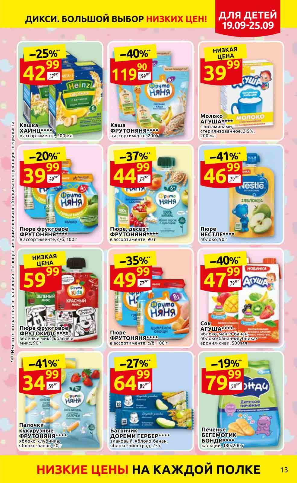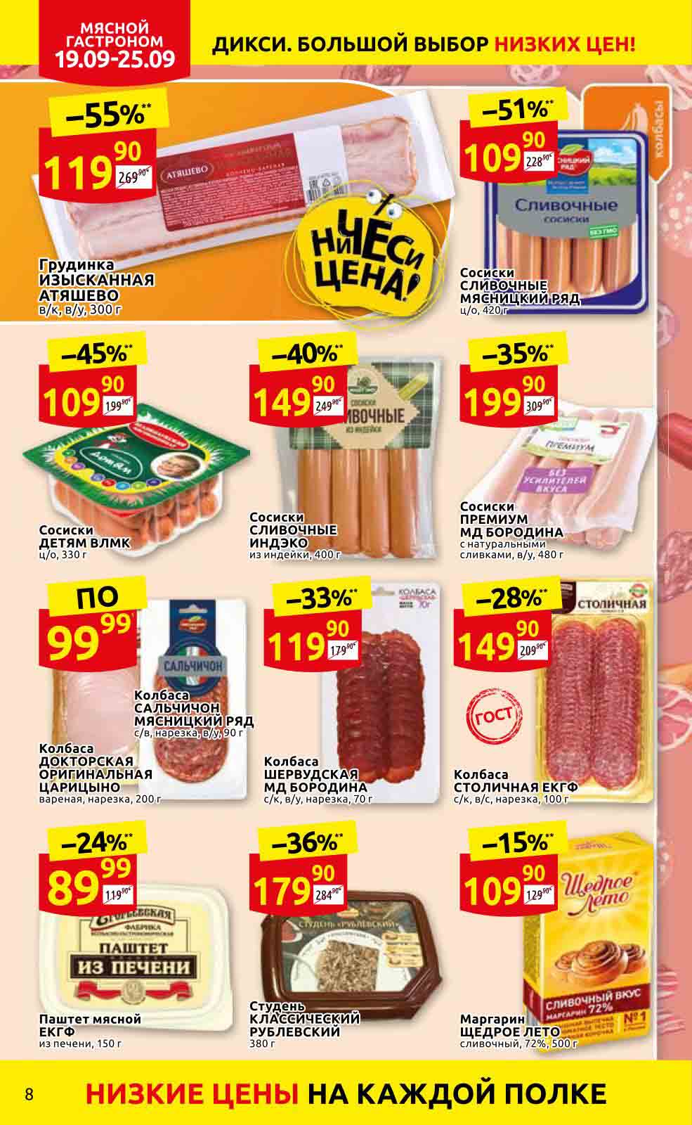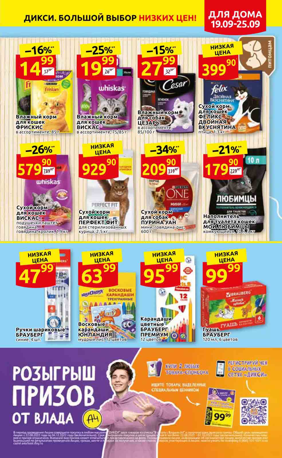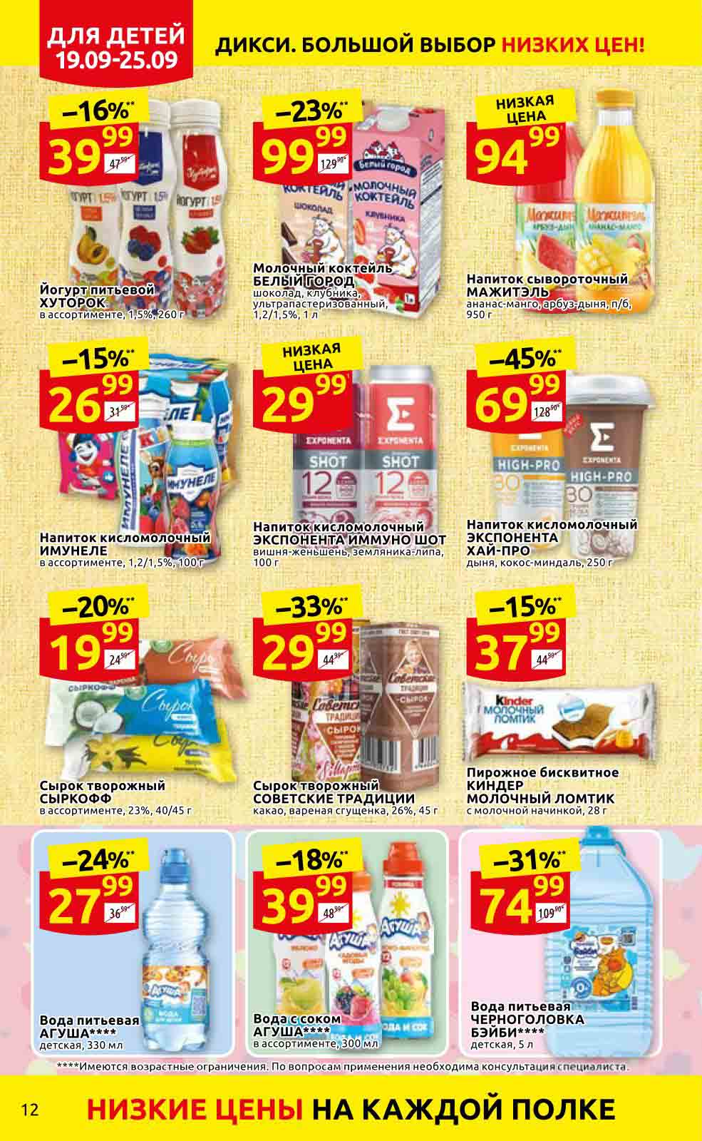 Смотрите еженедельный, новый каталог Дикси и не переплачивайте уже сегодня вас ждут ряд интересных акций и привлекательных скидок. Обо всем этом вы сможете узнать посмотрев новый каталог Дикси на нашем сайте. На страницах каталога Дикси вы найдете все свои любимые продукты, которые сейчас предлагаются в супермаркете. Предложения, представленные в настоящем буклете, действительны в указанный срок проведения. Стоимость указана за единицу товара (за исключением весового, цена которого определена за конкретный вес, указанный в настоящем буклете). В акции участвуют позиции, изображение которых размещено в каталоге. Цены в супермаркетах могут быть дополнительно снижены по решению руководства сети. Цены помеченные «*», обозначают среднюю цену данной позиции по сети. Количество товара ограничено и может не везде присутствовать. Цены по акции Дикси действуют в городах: Москва, Балашиха, Химки, Подольск, Королев, Мытищи, Люберцы, Электросталь, Коломна, Одинцово, Железнодорожный, Серпухов, Орехово-Зуево, Красногорск, Щелково, Сергиев Посад, Пушкино, Жуковский, Ногинск, Раменское, Клин, Воскресенск, Домодедово и многих других населенных пунктах Московского региона.