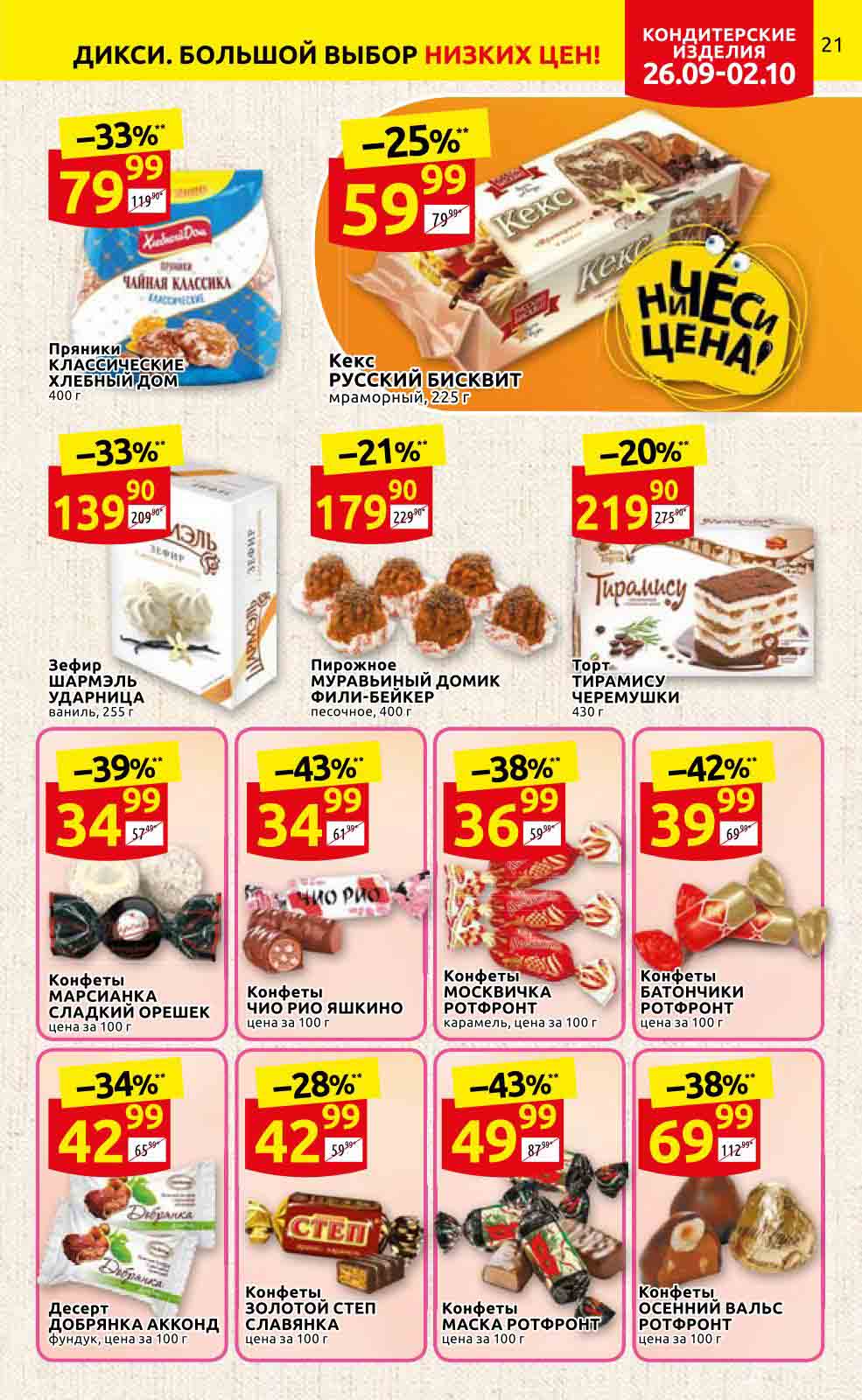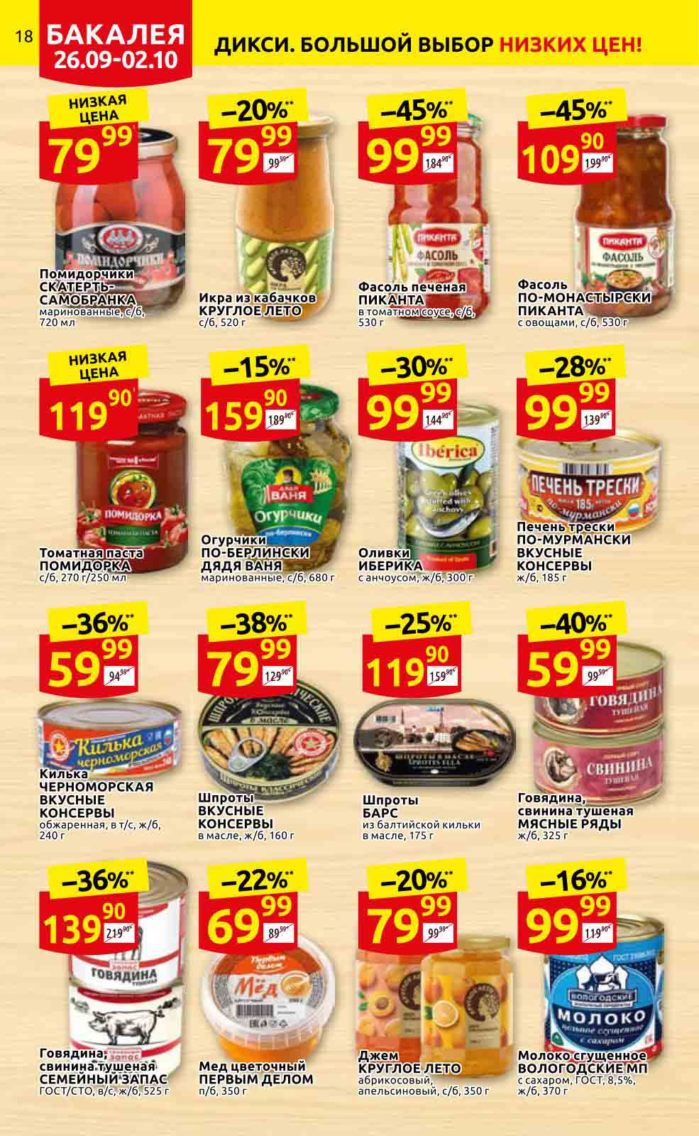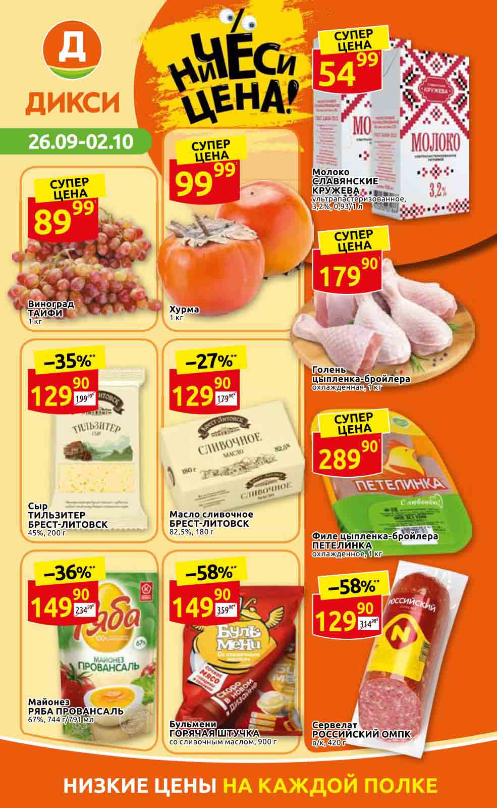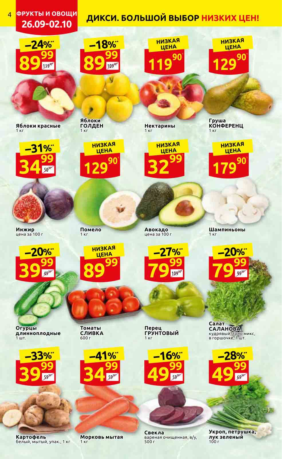 Смотрите еженедельный, новый каталог Дикси и не переплачивайте уже сегодня вас ждут ряд интересных акций и привлекательных скидок. Обо всем этом вы сможете узнать посмотрев новый каталог Дикси на нашем сайте. На страницах каталога Дикси вы найдете все свои любимые продукты, которые сейчас предлагаются в супермаркете. Предложения, представленные в настоящем буклете, действительны в указанный срок проведения. Стоимость указана за единицу товара (за исключением весового, цена которого определена за конкретный вес, указанный в настоящем буклете). В акции участвуют позиции, изображение которых размещено в каталоге. Цены в супермаркетах могут быть дополнительно снижены по решению руководства сети. Цены помеченные «*», обозначают среднюю цену данной позиции по сети. Количество товара ограничено и может не везде присутствовать. Цены по акции Дикси действуют в городах: Москва, Балашиха, Химки, Подольск, Королев, Мытищи, Люберцы, Электросталь, Коломна, Одинцово, Железнодорожный, Серпухов, Орехово-Зуево, Красногорск, Щелково, Сергиев Посад, Пушкино, Жуковский, Ногинск, Раменское, Клин, Воскресенск, Домодедово и многих других населенных пунктах Московского региона.