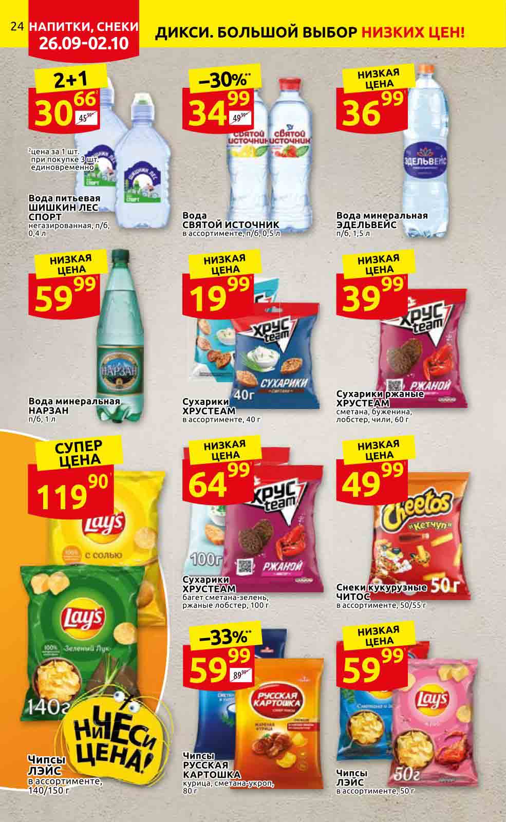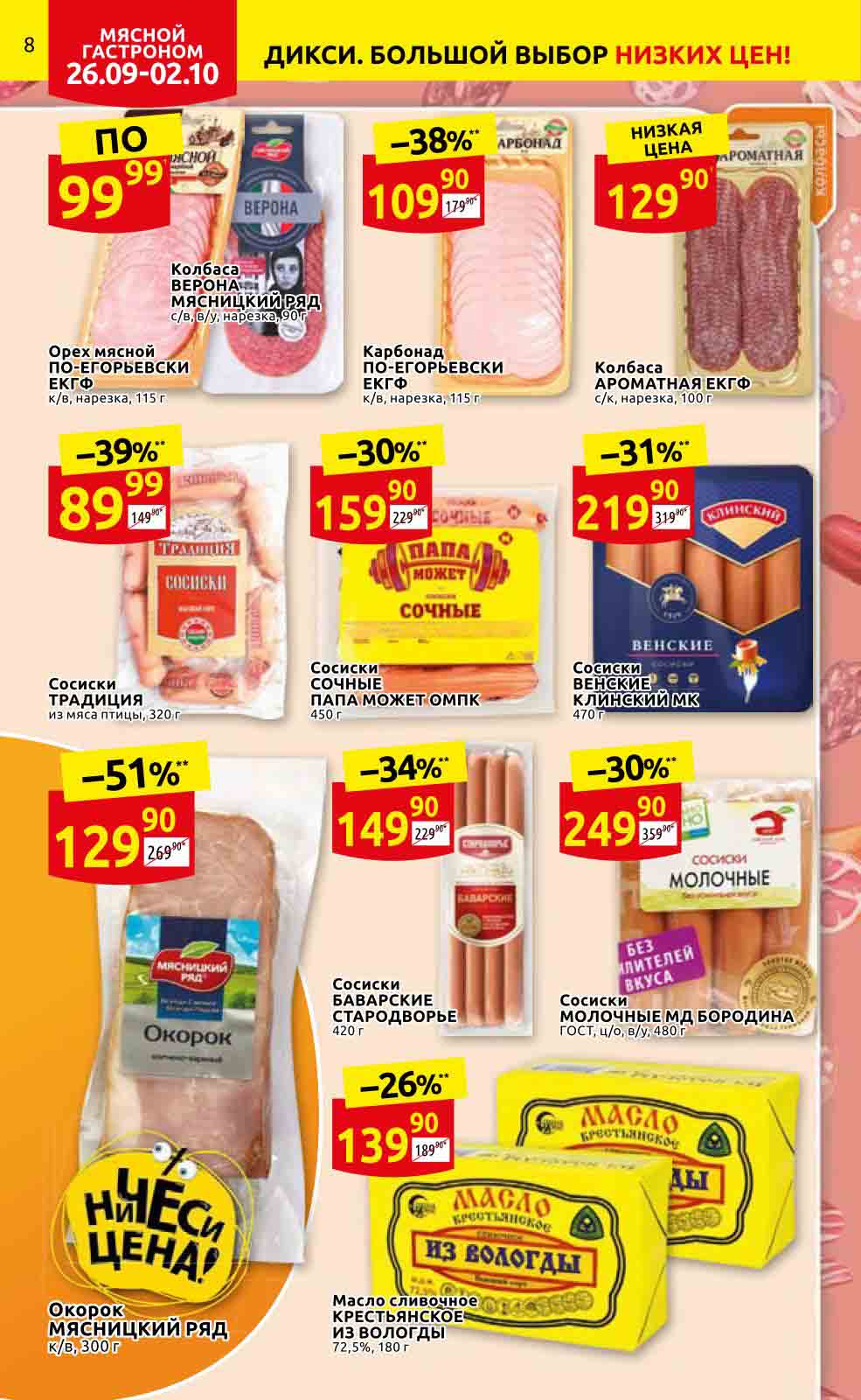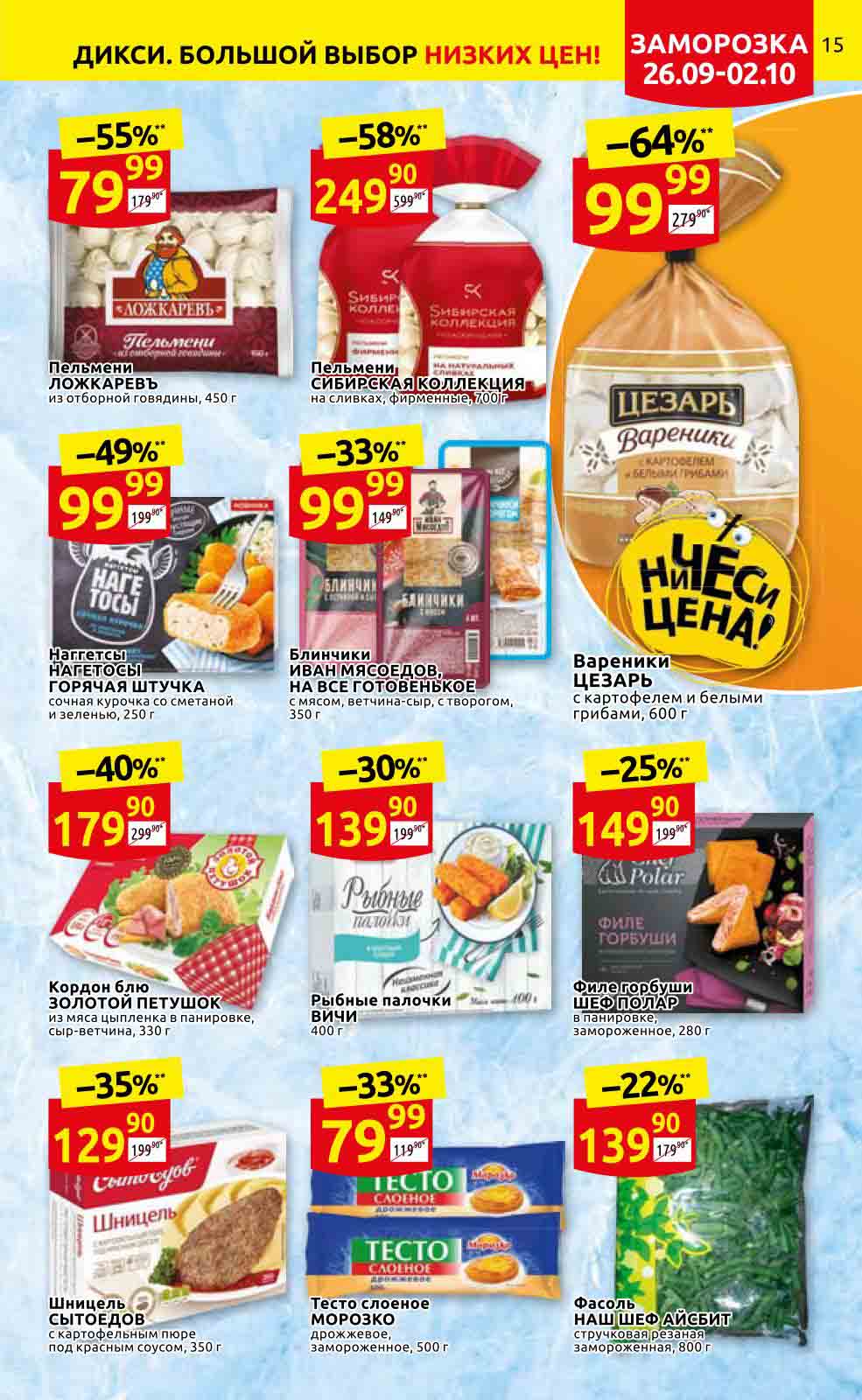 Смотрите еженедельный, новый каталог Дикси и не переплачивайте уже сегодня вас ждут ряд интересных акций и привлекательных скидок. Обо всем этом вы сможете узнать посмотрев новый каталог Дикси на нашем сайте. На страницах каталога Дикси вы найдете все свои любимые продукты, которые сейчас предлагаются в супермаркете. Предложения, представленные в настоящем буклете, действительны в указанный срок проведения. Стоимость указана за единицу товара (за исключением весового, цена которого определена за конкретный вес, указанный в настоящем буклете). В акции участвуют позиции, изображение которых размещено в каталоге. Цены в супермаркетах могут быть дополнительно снижены по решению руководства сети. Цены помеченные «*», обозначают среднюю цену данной позиции по сети. Количество товара ограничено и может не везде присутствовать. Цены по акции Дикси действуют в городах: Москва, Балашиха, Химки, Подольск, Королев, Мытищи, Люберцы, Электросталь, Коломна, Одинцово, Железнодорожный, Серпухов, Орехово-Зуево, Красногорск, Щелково, Сергиев Посад, Пушкино, Жуковский, Ногинск, Раменское, Клин, Воскресенск, Домодедово и многих других населенных пунктах Московского региона.