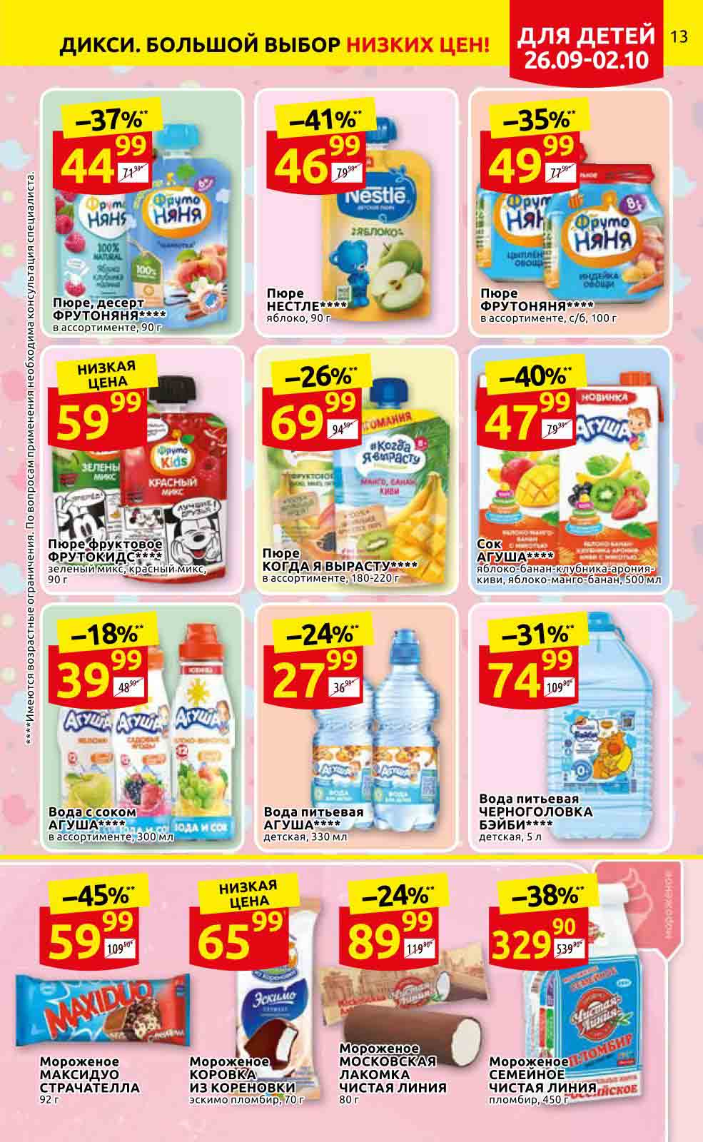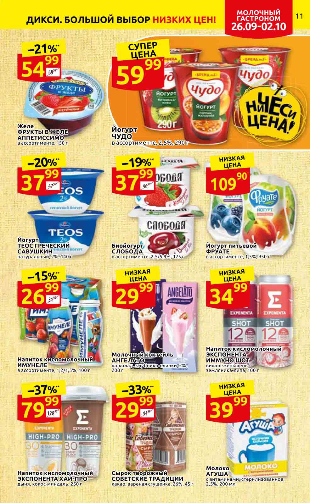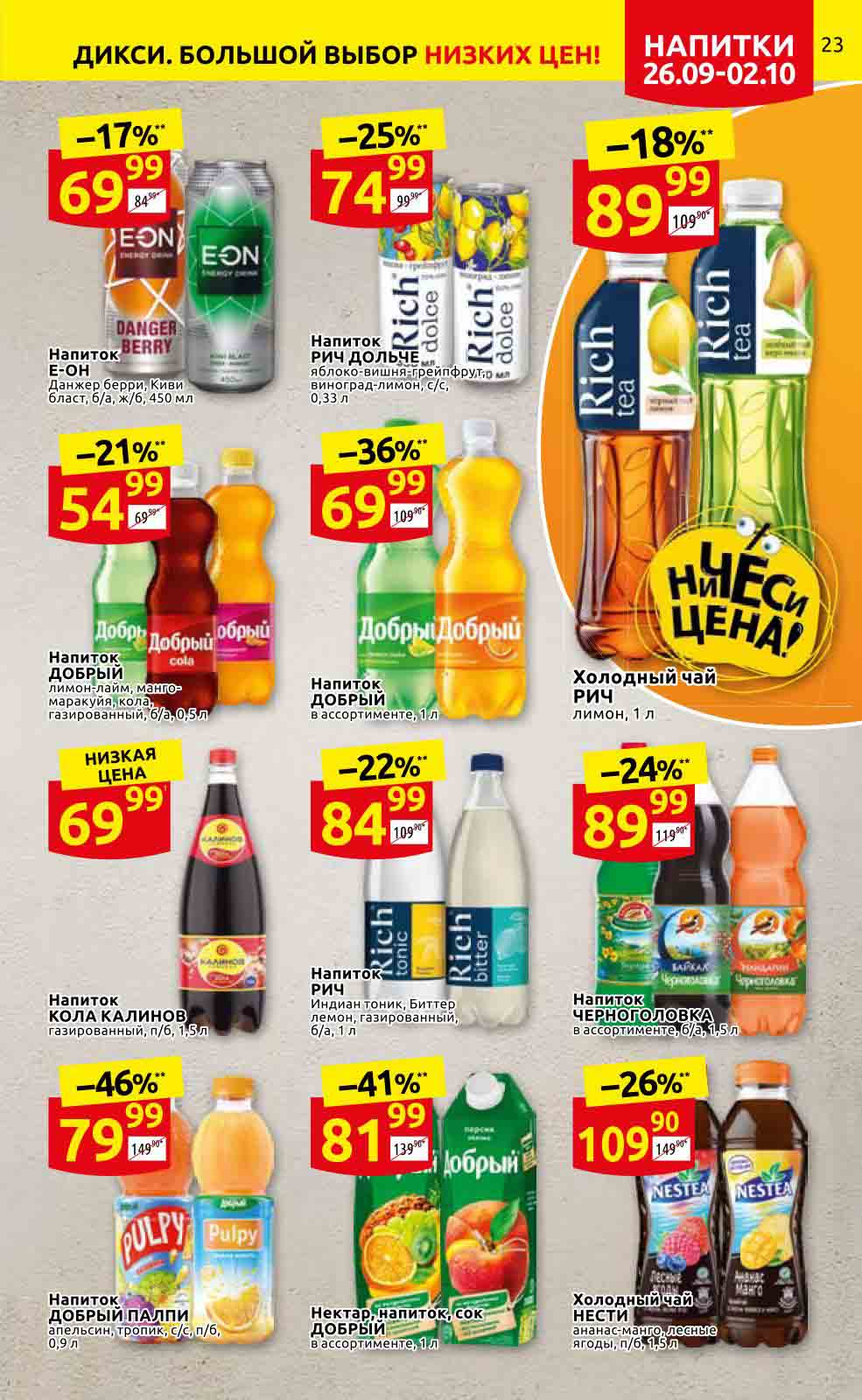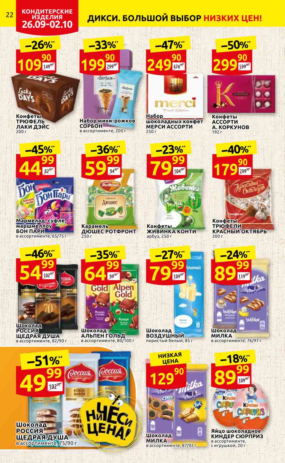 Смотрите еженедельный, новый каталог Дикси и не переплачивайте уже сегодня вас ждут ряд интересных акций и привлекательных скидок. Обо всем этом вы сможете узнать посмотрев новый каталог Дикси на нашем сайте. На страницах каталога Дикси вы найдете все свои любимые продукты, которые сейчас предлагаются в супермаркете. Предложения, представленные в настоящем буклете, действительны в указанный срок проведения. Стоимость указана за единицу товара (за исключением весового, цена которого определена за конкретный вес, указанный в настоящем буклете). В акции участвуют позиции, изображение которых размещено в каталоге. Цены в супермаркетах могут быть дополнительно снижены по решению руководства сети. Цены помеченные «*», обозначают среднюю цену данной позиции по сети. Количество товара ограничено и может не везде присутствовать. Цены по акции Дикси действуют в городах: Москва, Балашиха, Химки, Подольск, Королев, Мытищи, Люберцы, Электросталь, Коломна, Одинцово, Железнодорожный, Серпухов, Орехово-Зуево, Красногорск, Щелково, Сергиев Посад, Пушкино, Жуковский, Ногинск, Раменское, Клин, Воскресенск, Домодедово и многих других населенных пунктах Московского региона.