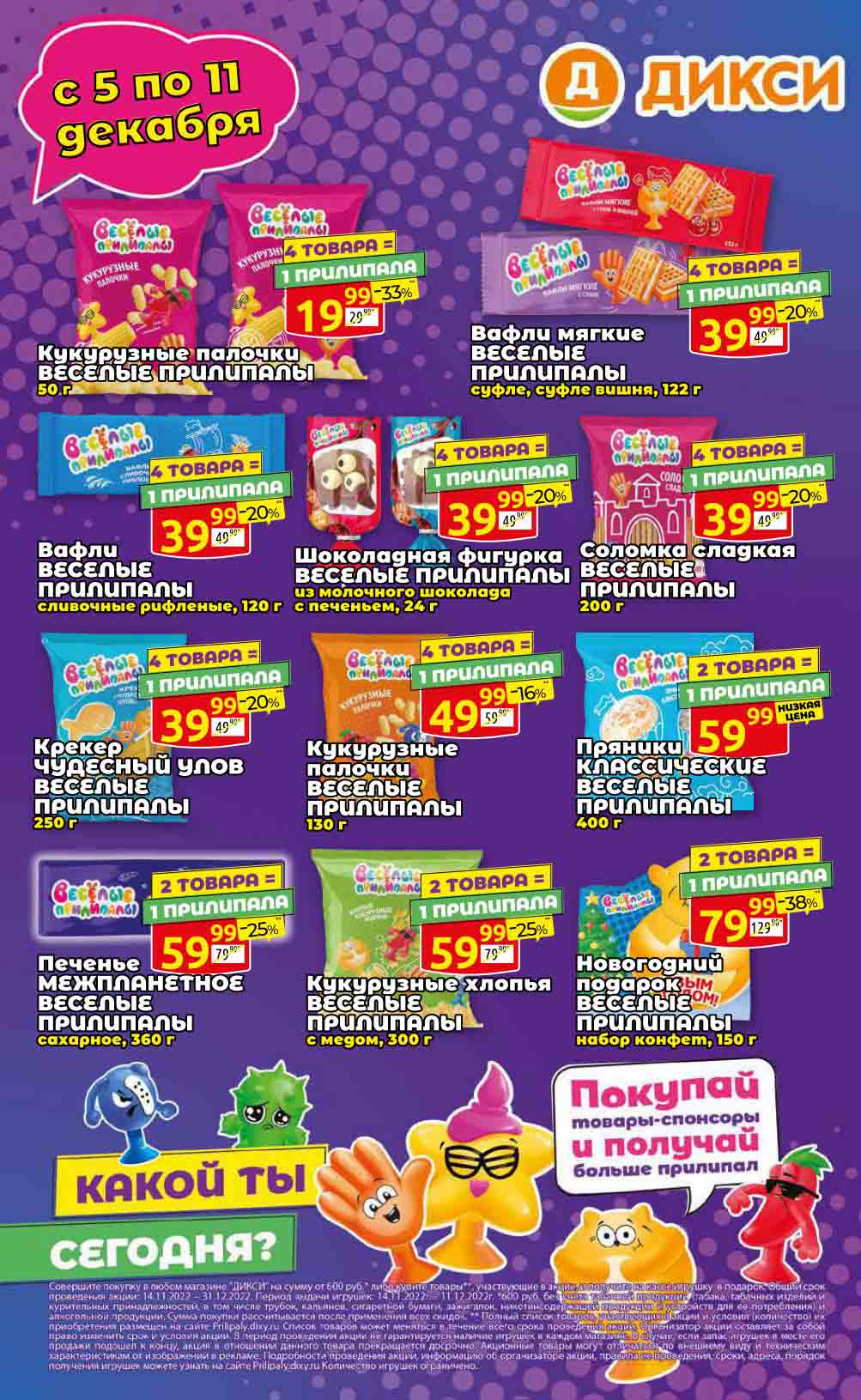 Акции в Дикси с 5 декабря — 11 декабря 2022. Каталог Веселые прилипалы возвращаются