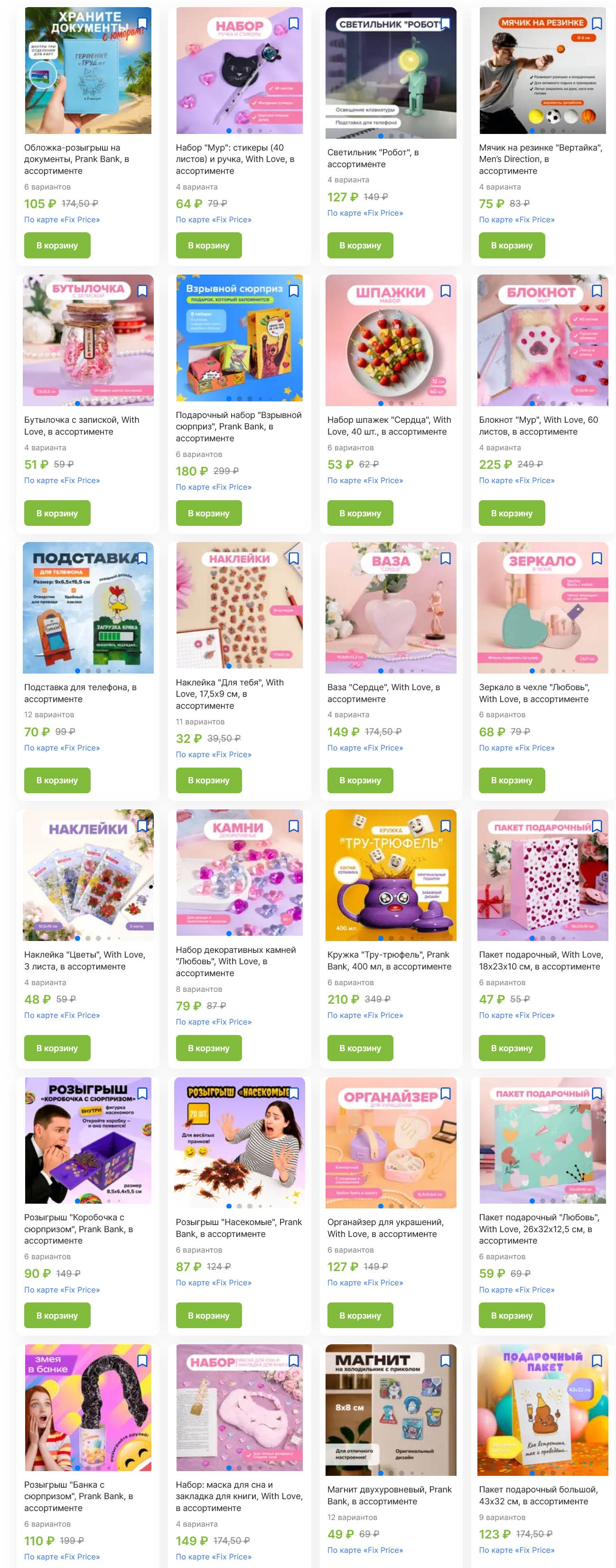 Смотрите еженедельный, новый каталог Fix Price и не переплачивайте. Fix Price — сеть супермаркетов товаров для дома реализует продукцию по сниженным фиксированным ценам. На полках магазина «Фикс Прайс» предлагаются продукты и напитки, косметика и бытовая химия, посуда, домашняя одежда, игрушки, подарки и сувениры, товары для праздников, декор и многое другое. А так же дополнительную выгоду предоставляет специальная карта лояльности.