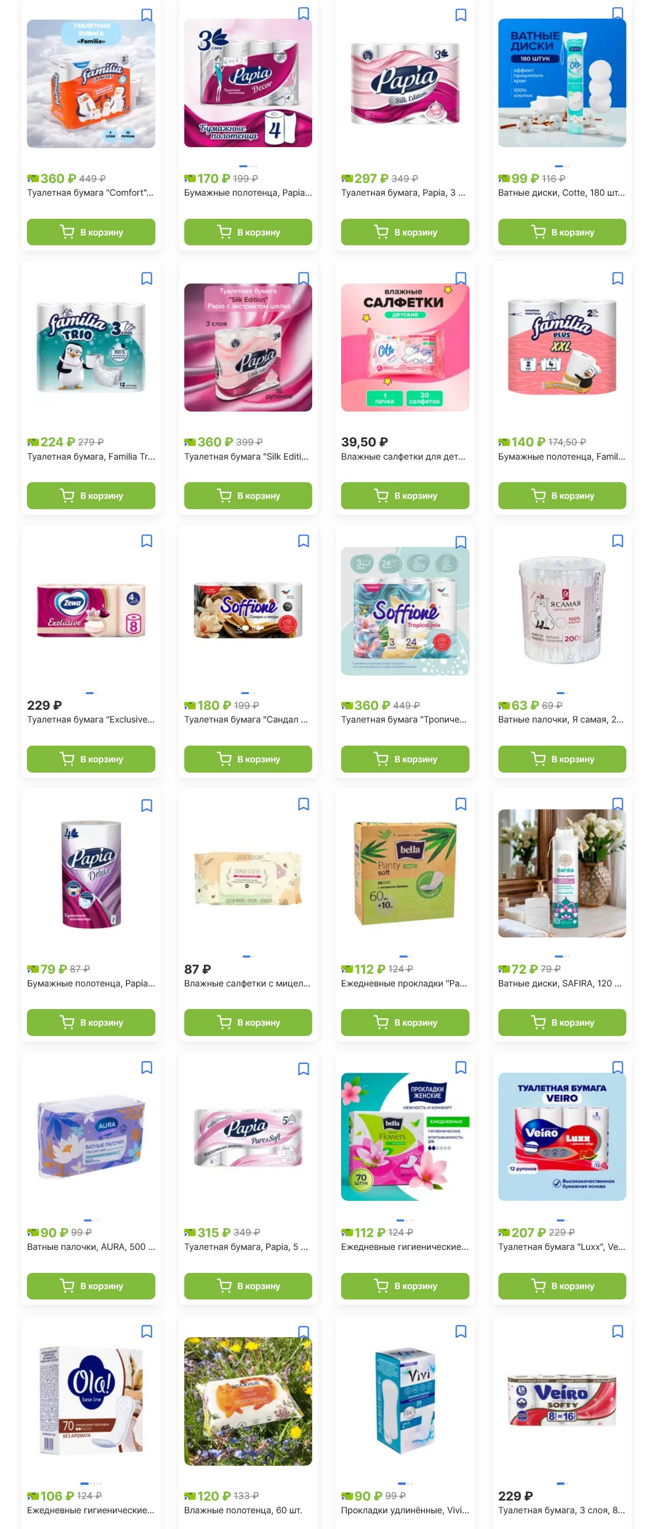 Зубная паста «Total 12» Colgate (135 ₽) и «Бережное отбеливание» (170 ₽) — цены ниже, чем в супермаркетах. Прокладки «Molped» (18 шт., 149 ₽) и ночные (149 ₽) — экономьте на женской гигиене.